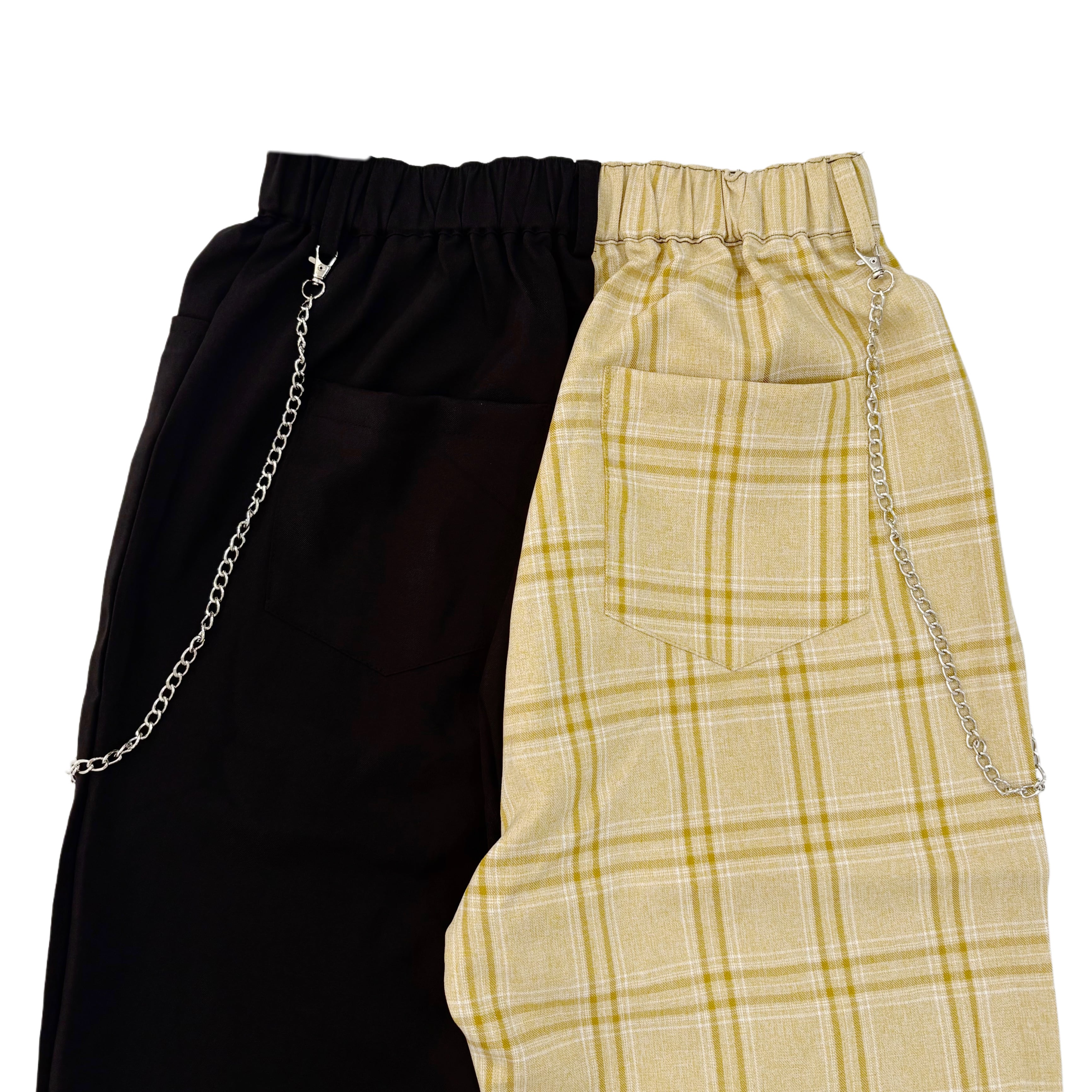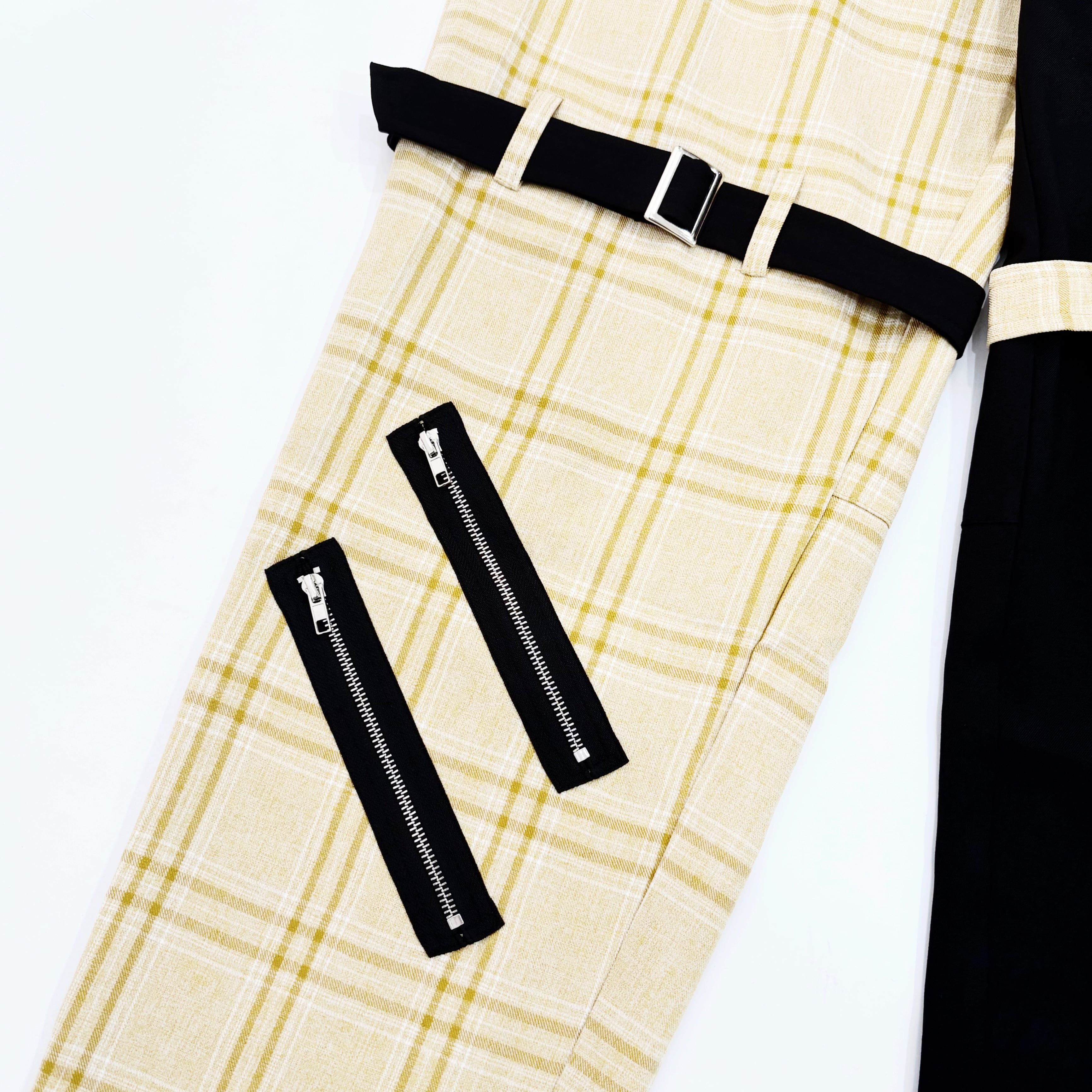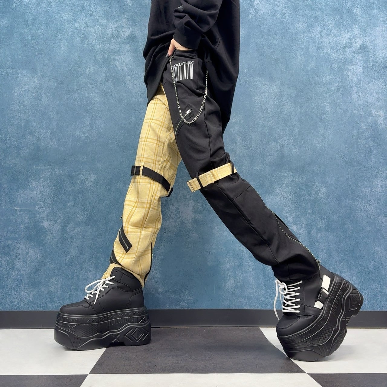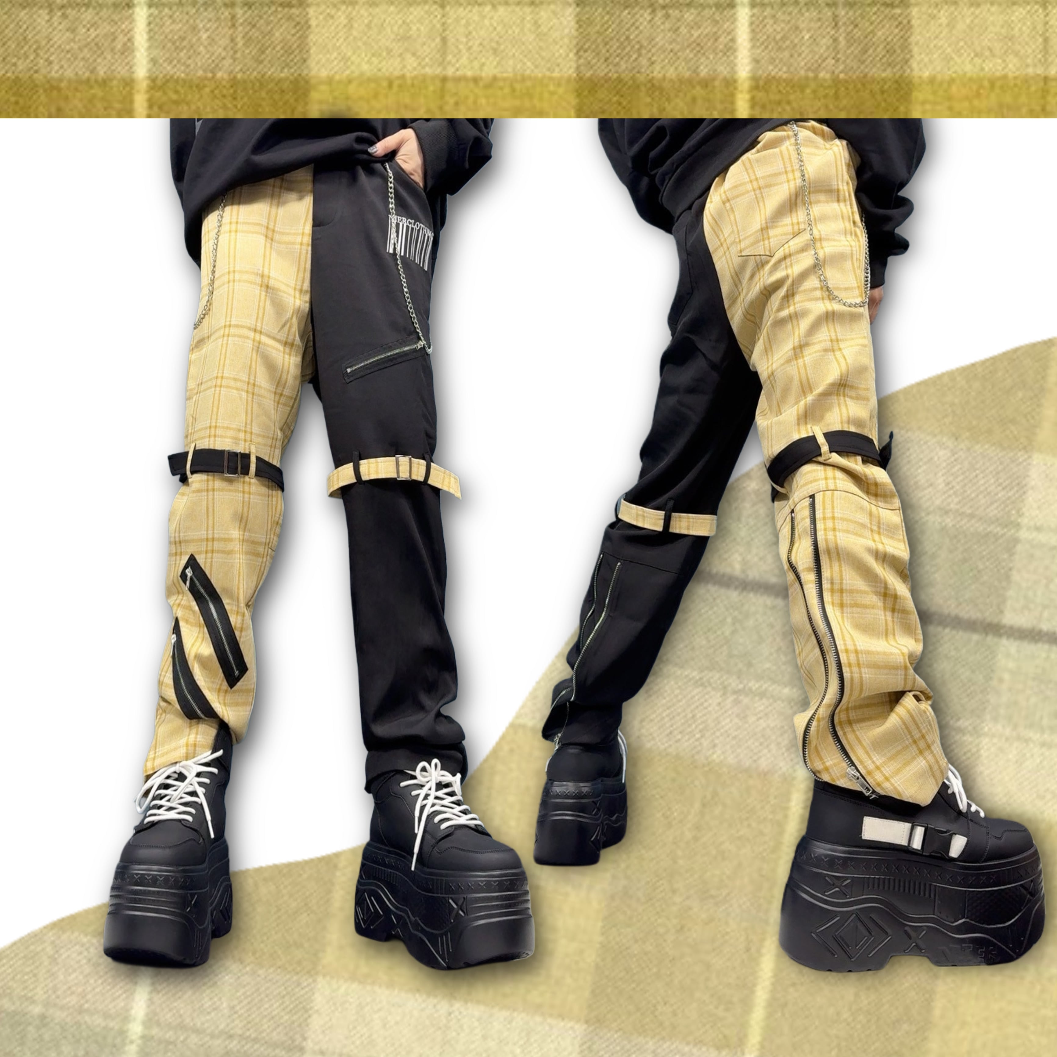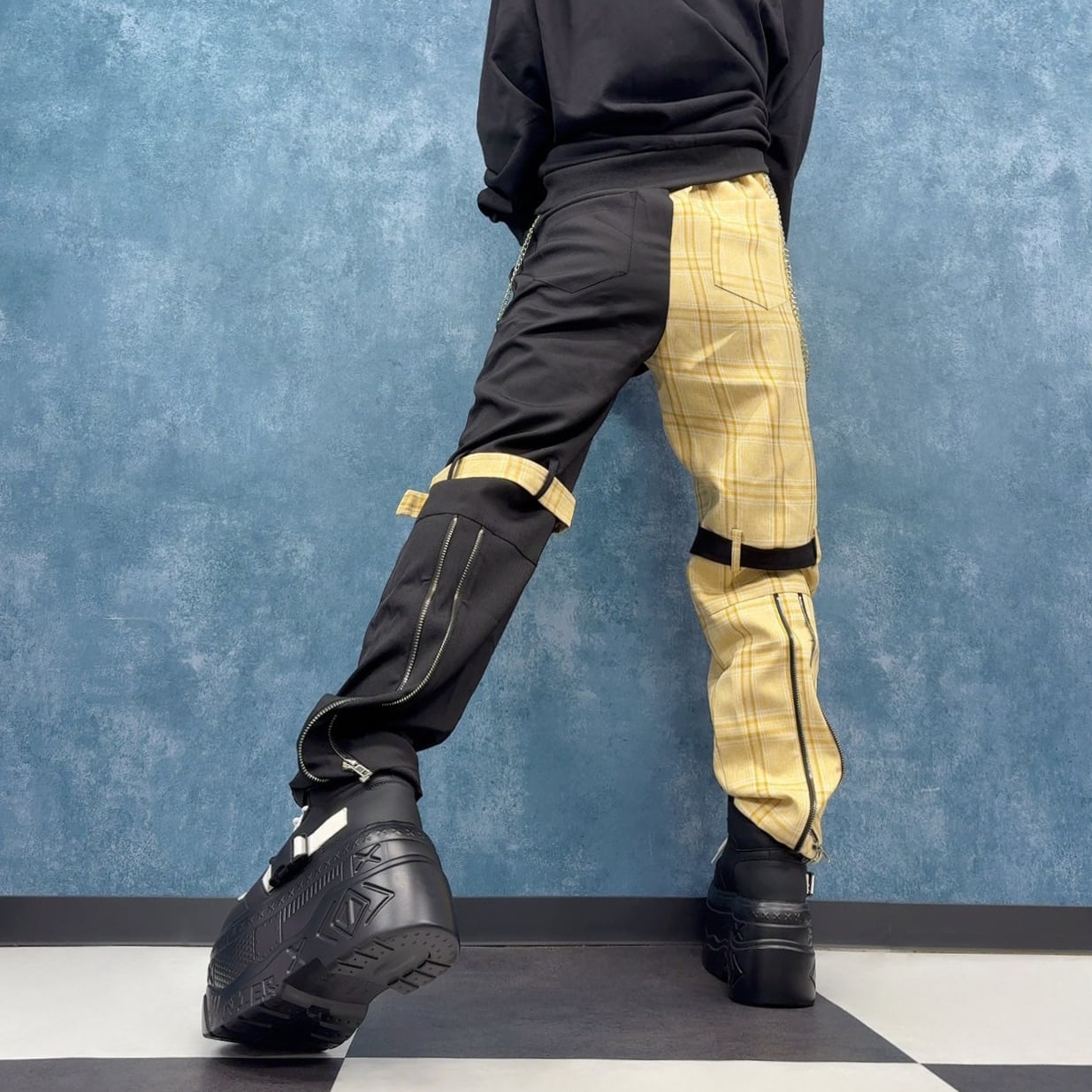 TWO-TONE CHECK ZIP DESIGN PANTS【BLACK&YELLOW】