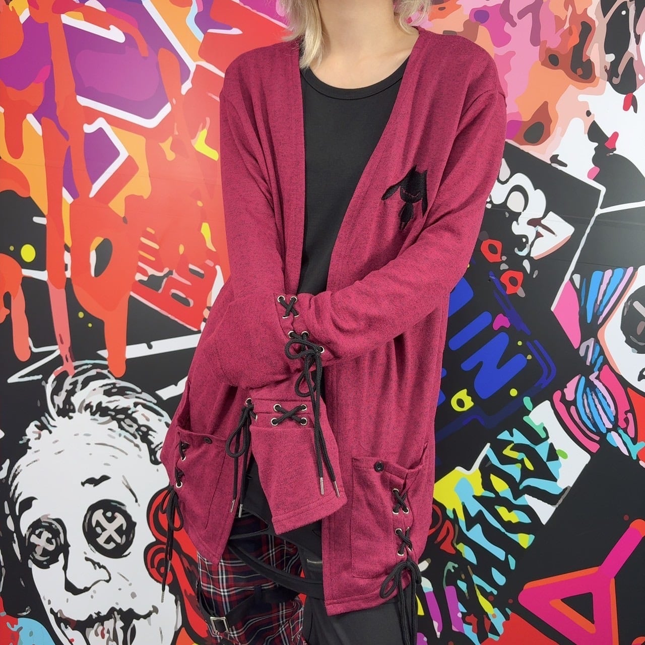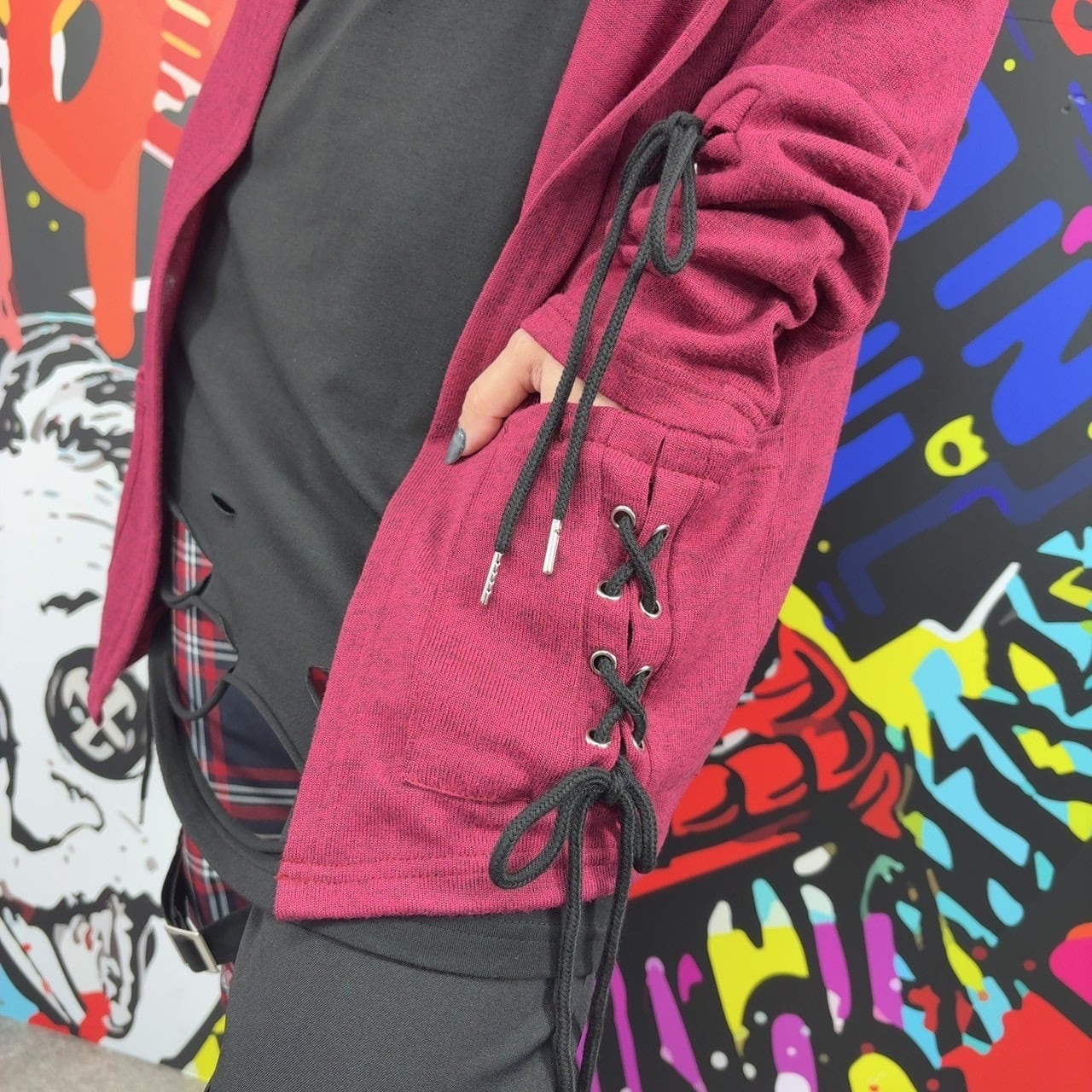 RED COLOR LACE-UP CARDIGAN
