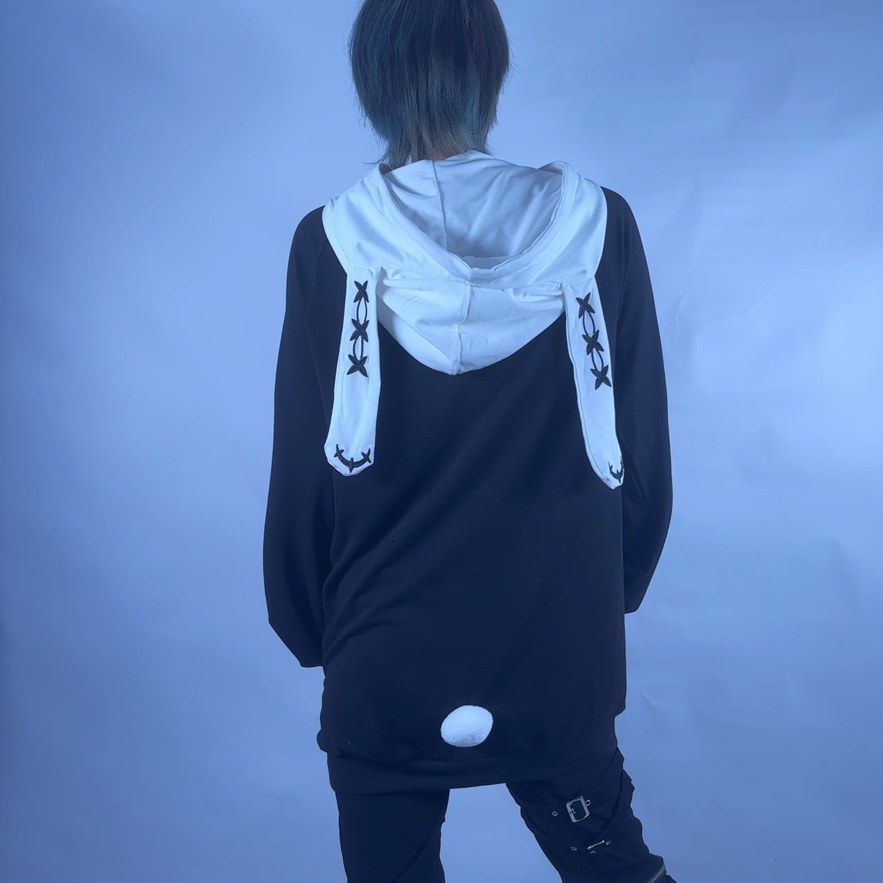 フードには長めのうさ耳デザインが付いており、NIERちゃんとおそろいの刺繍がアクセントに。