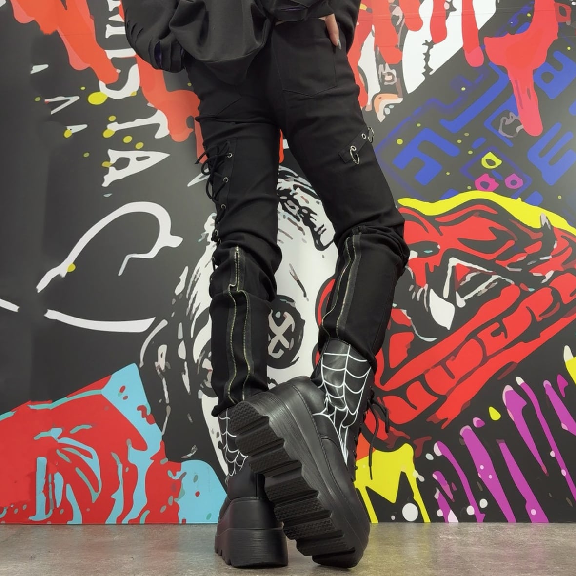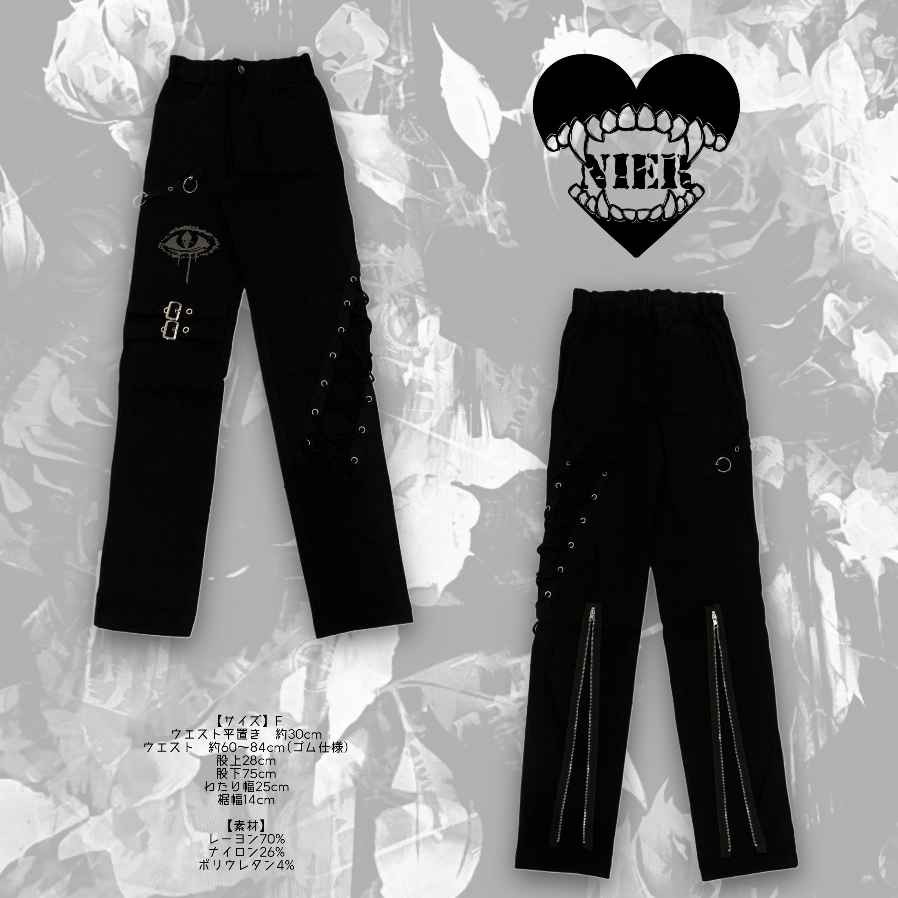 《10月22日目玉大特価》EYE刺繍脚長レースアップスタイリッシュパンツ【DARK MODE】