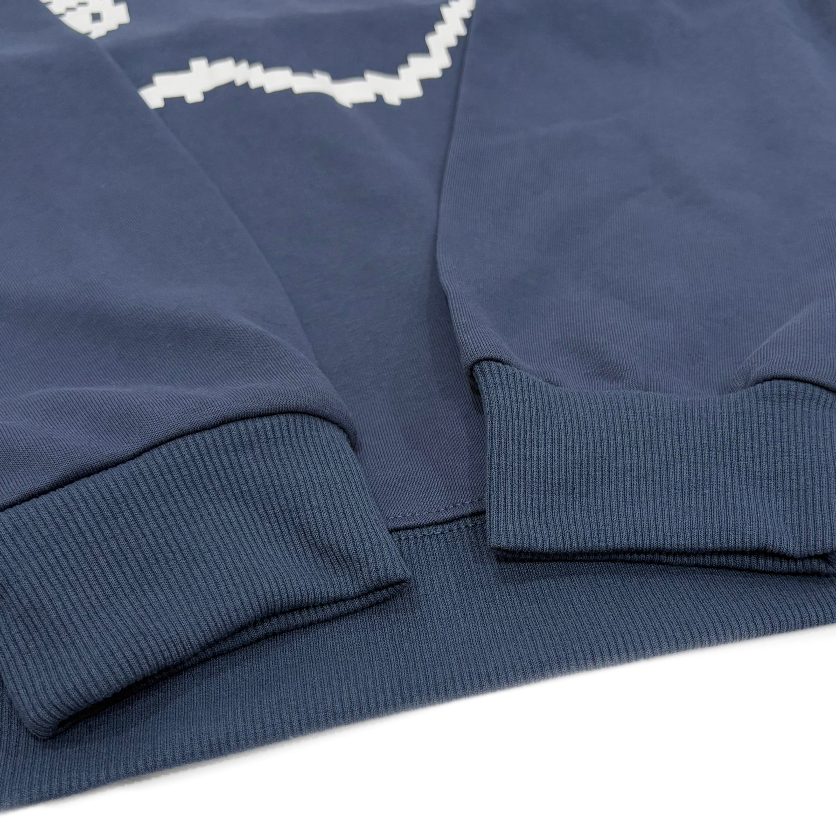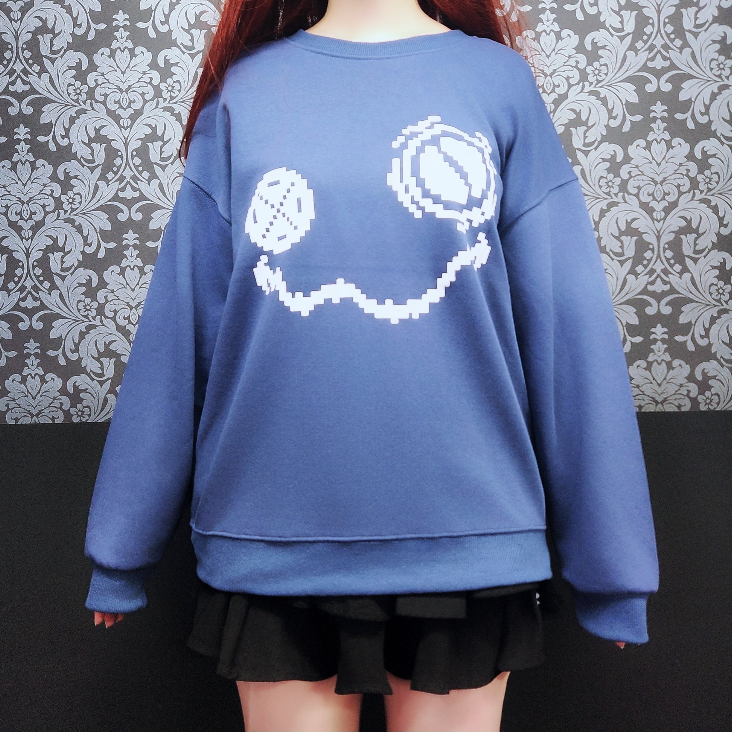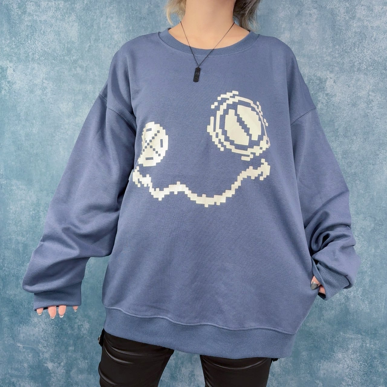 フロントに大きく配置されたピクセルアートフェイスが目を惹くスウェットトップス。