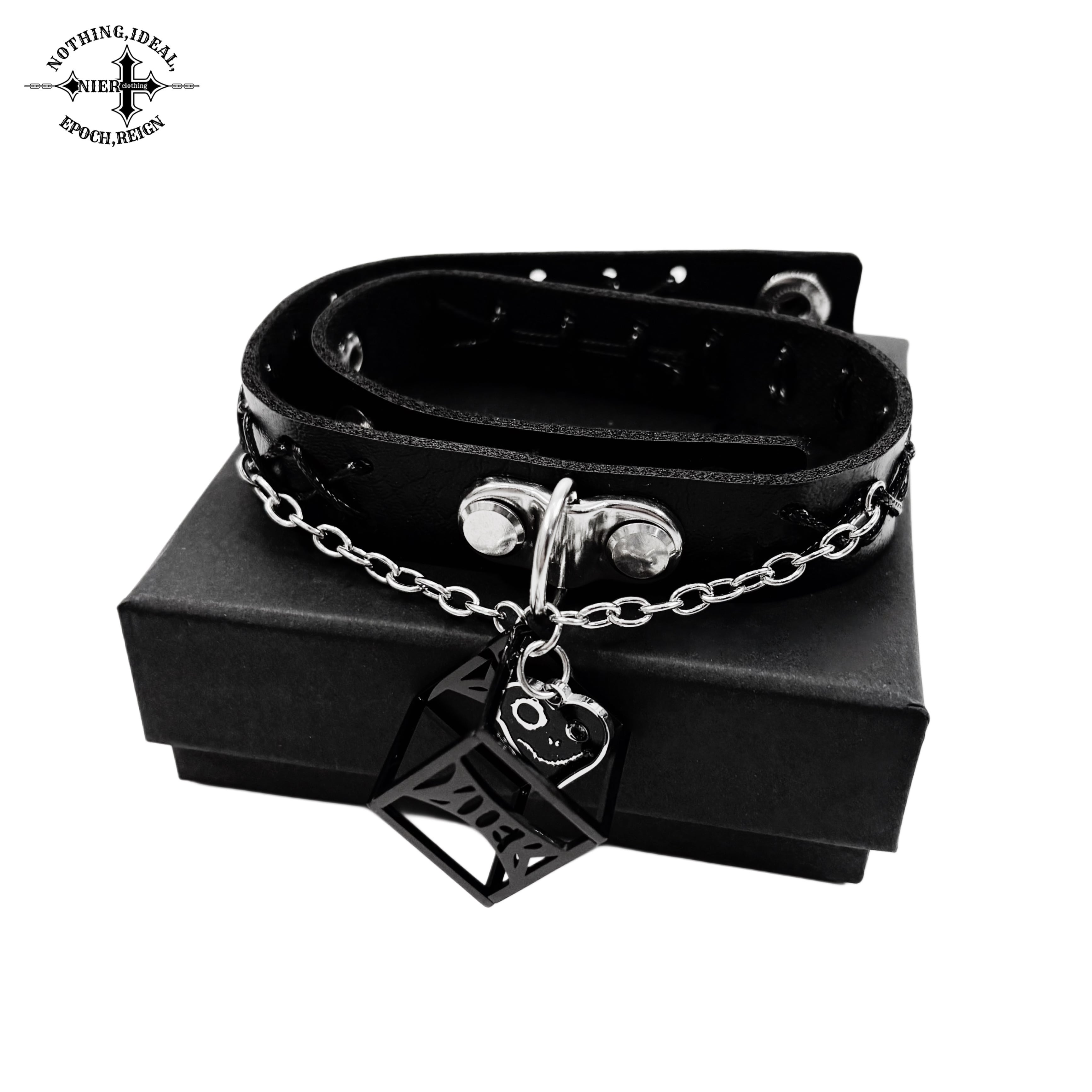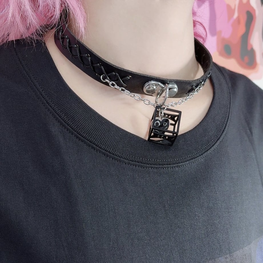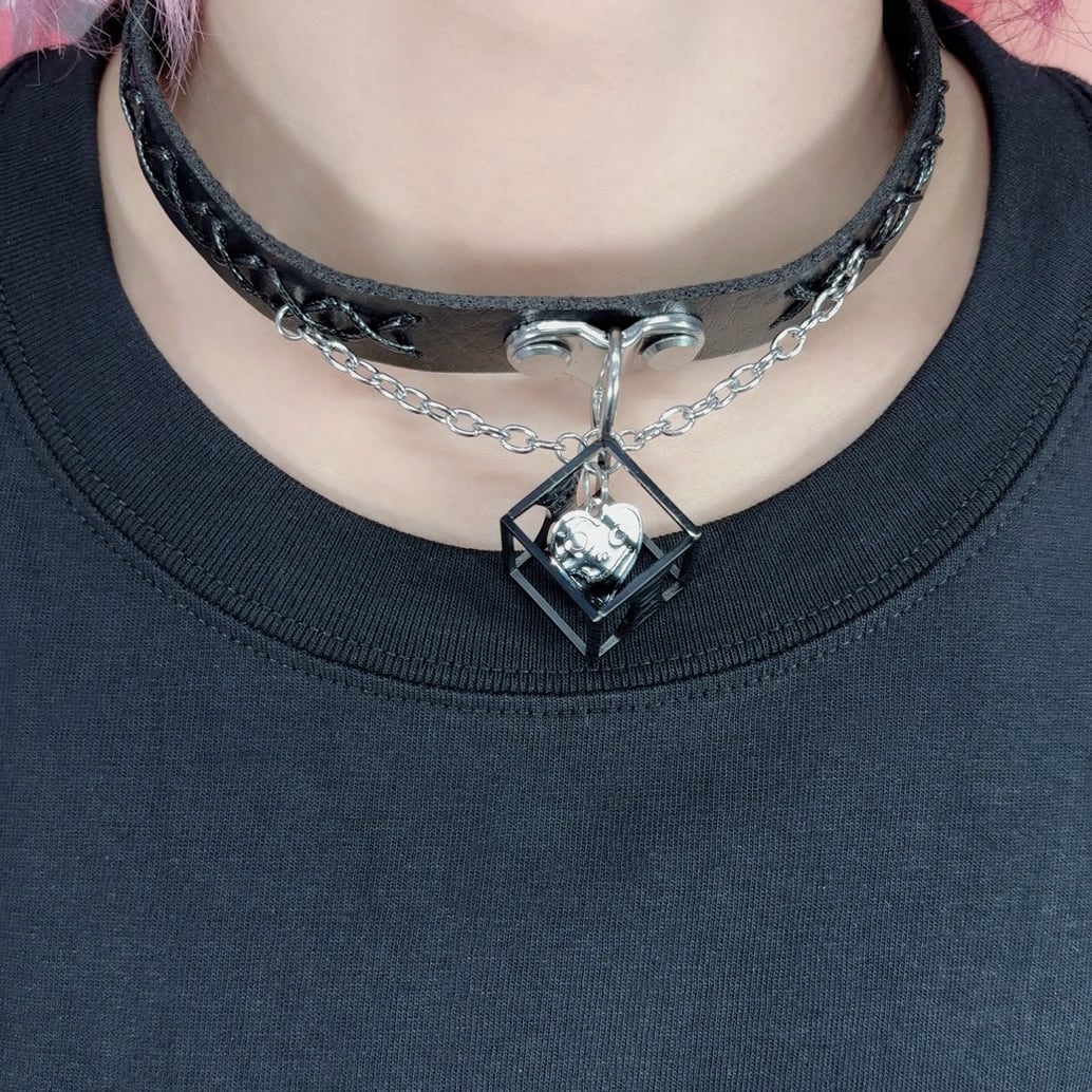 【バレンタイン前特別半額SALE】高品質GOTHIC BLACK CUBE HEART CHOKER