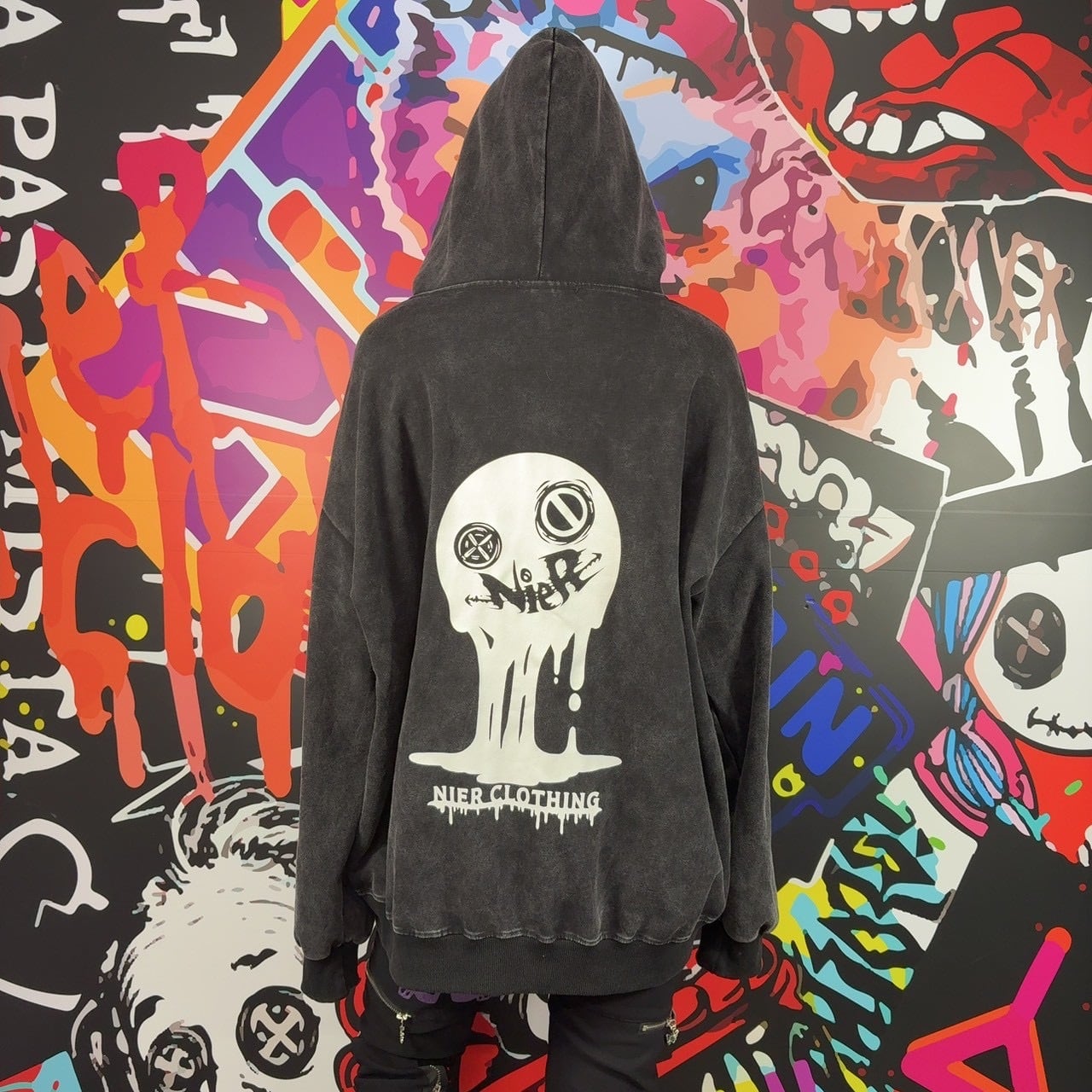 背面には存在感抜群の溶け落ちるフェイスロゴアートプリントを大胆に配置し、ブランドらしい個性を放ちます。