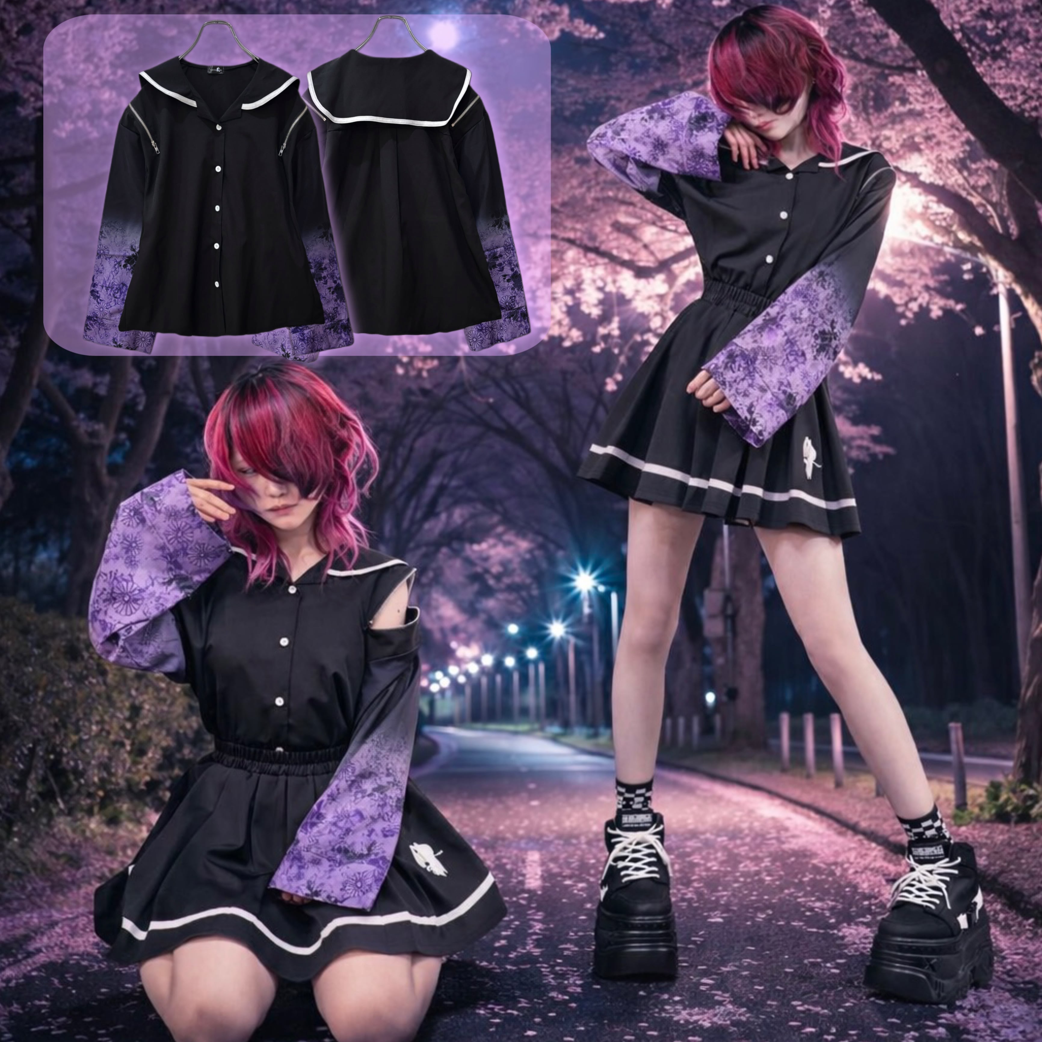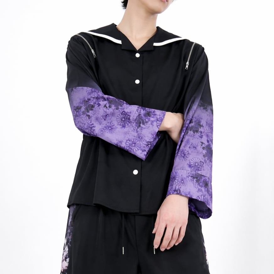 紫の和柄グラデーションが魅せる2WAYセーラーシャツです。
