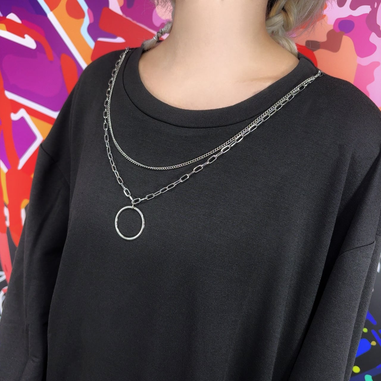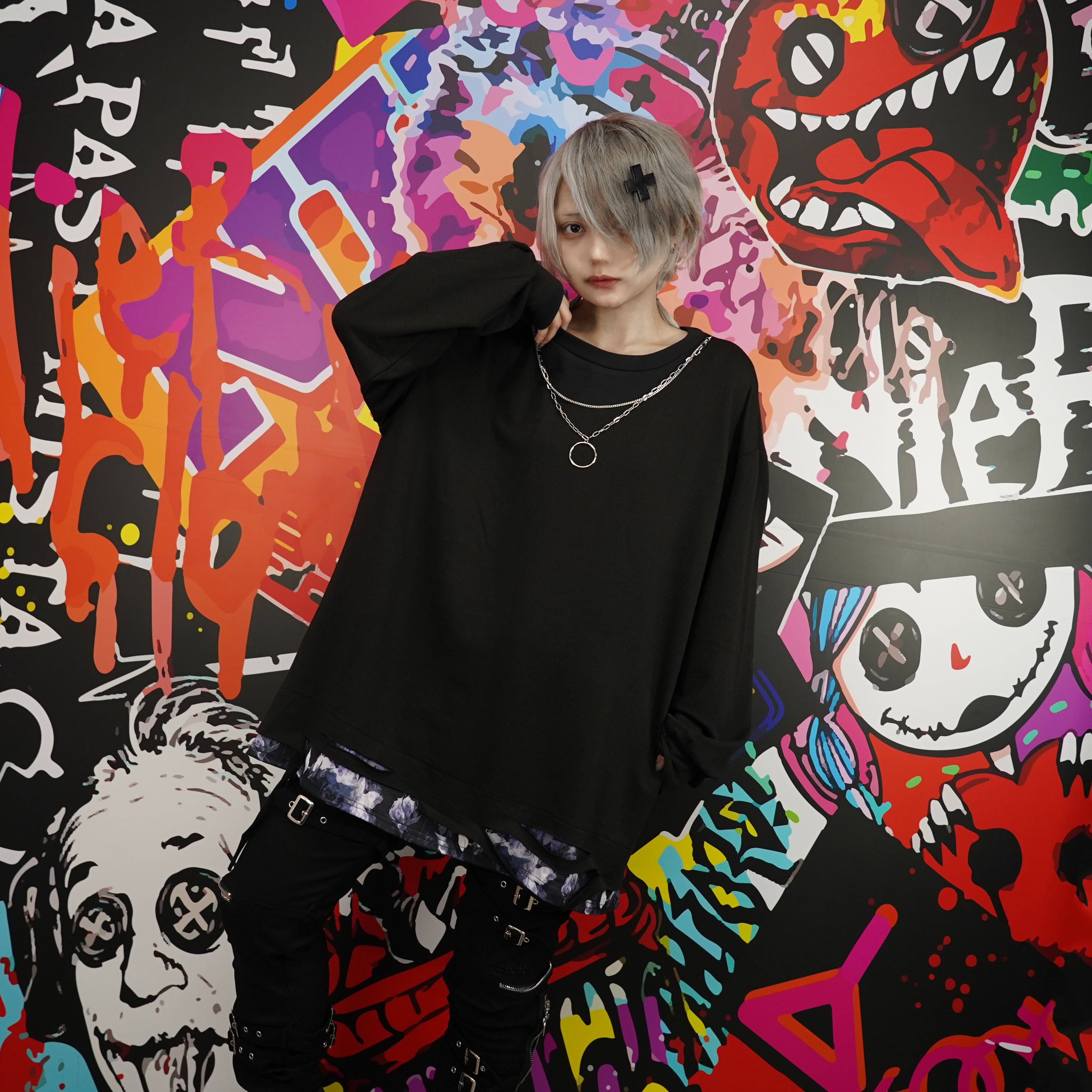 《10月6日限定目玉大特価》FLOWER DAMAGE LAYERED TOPS【チェーンアクセサリー付き】