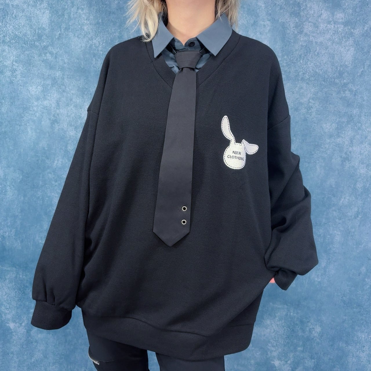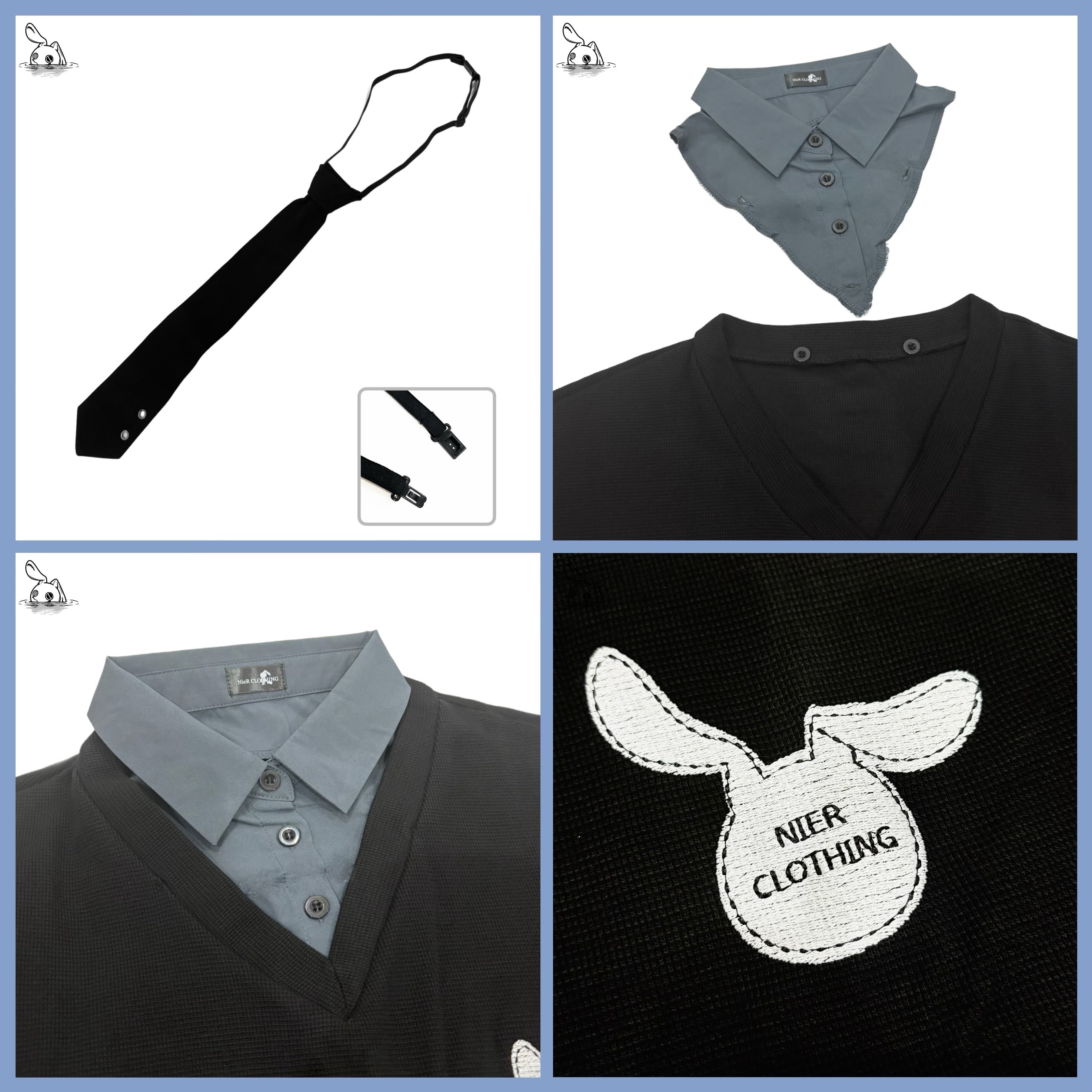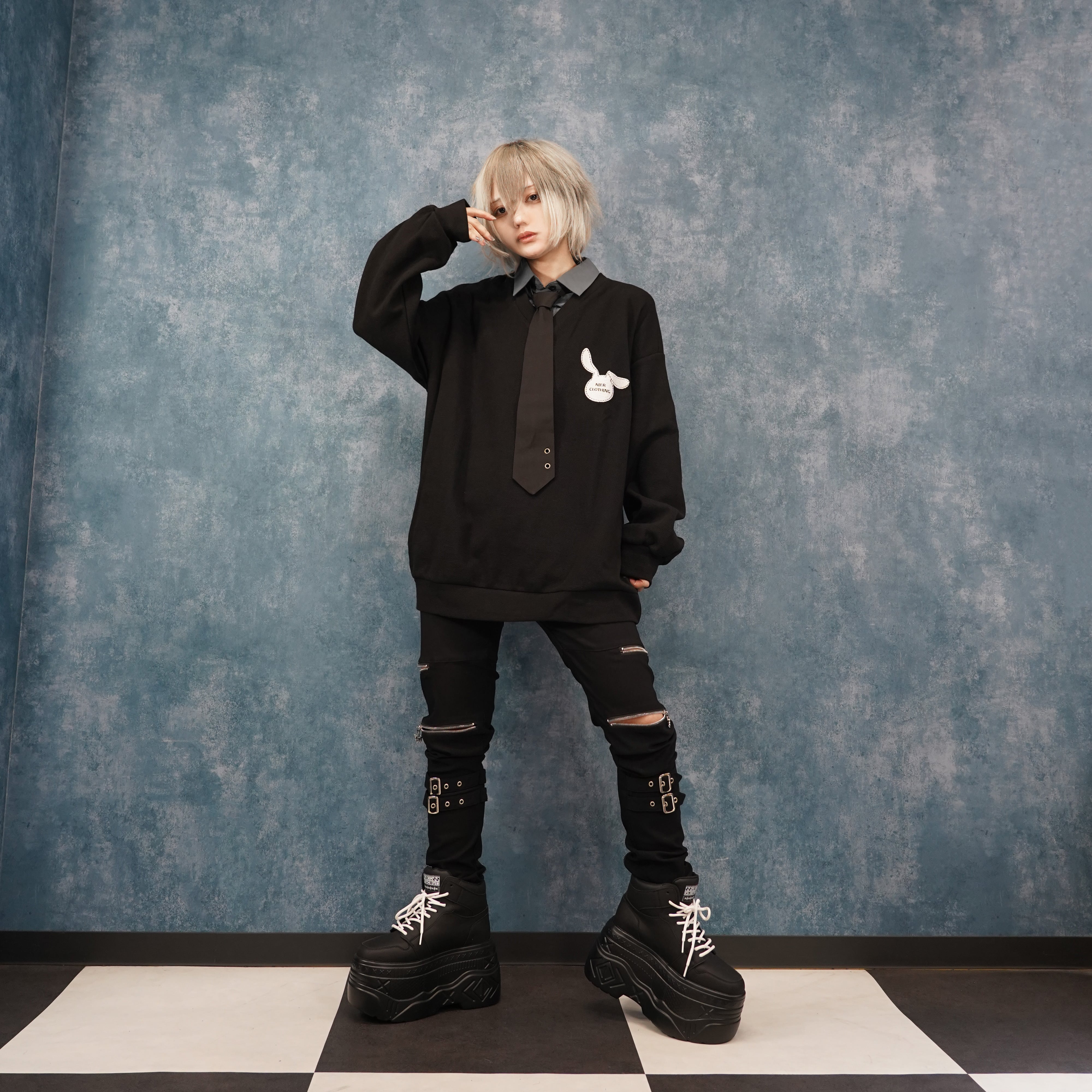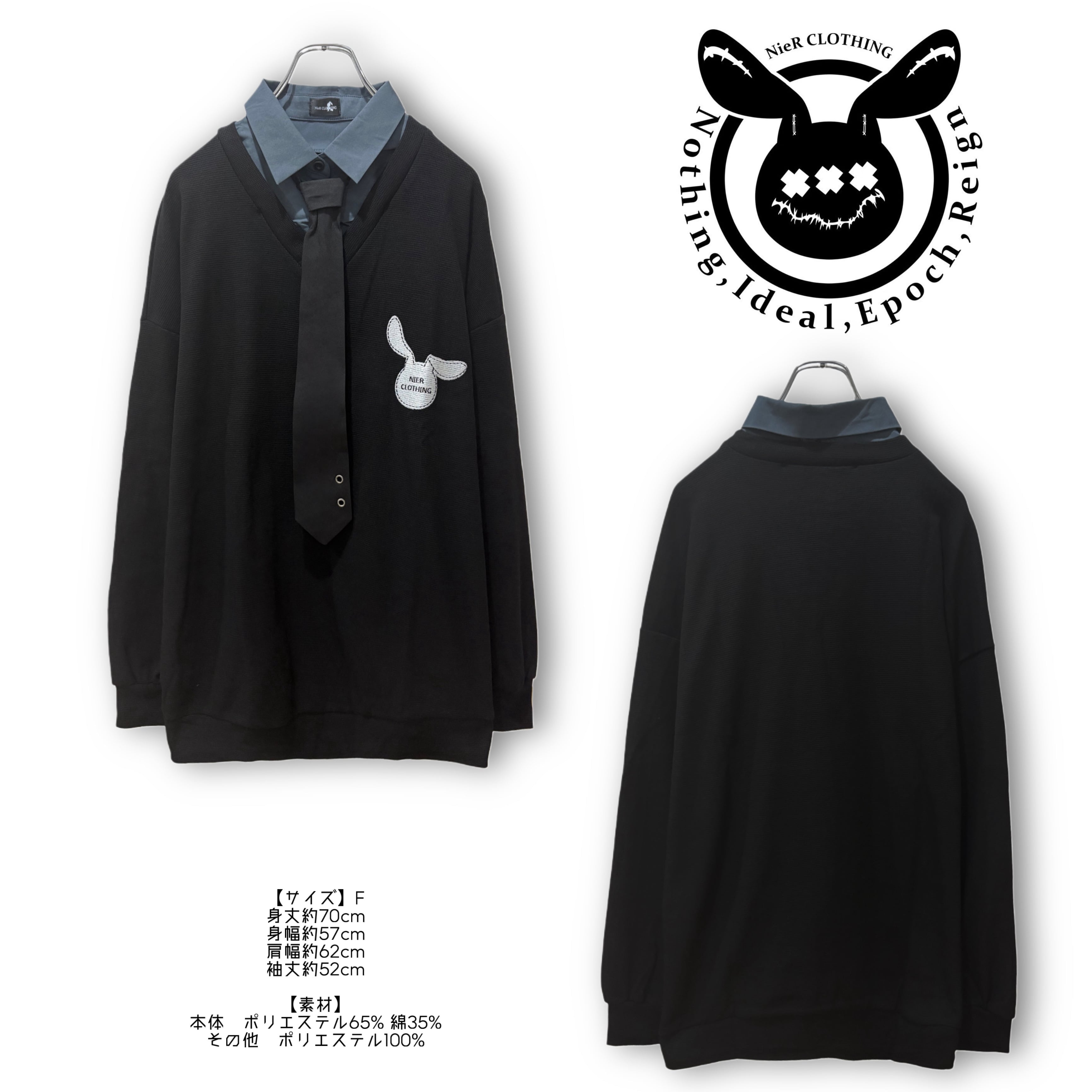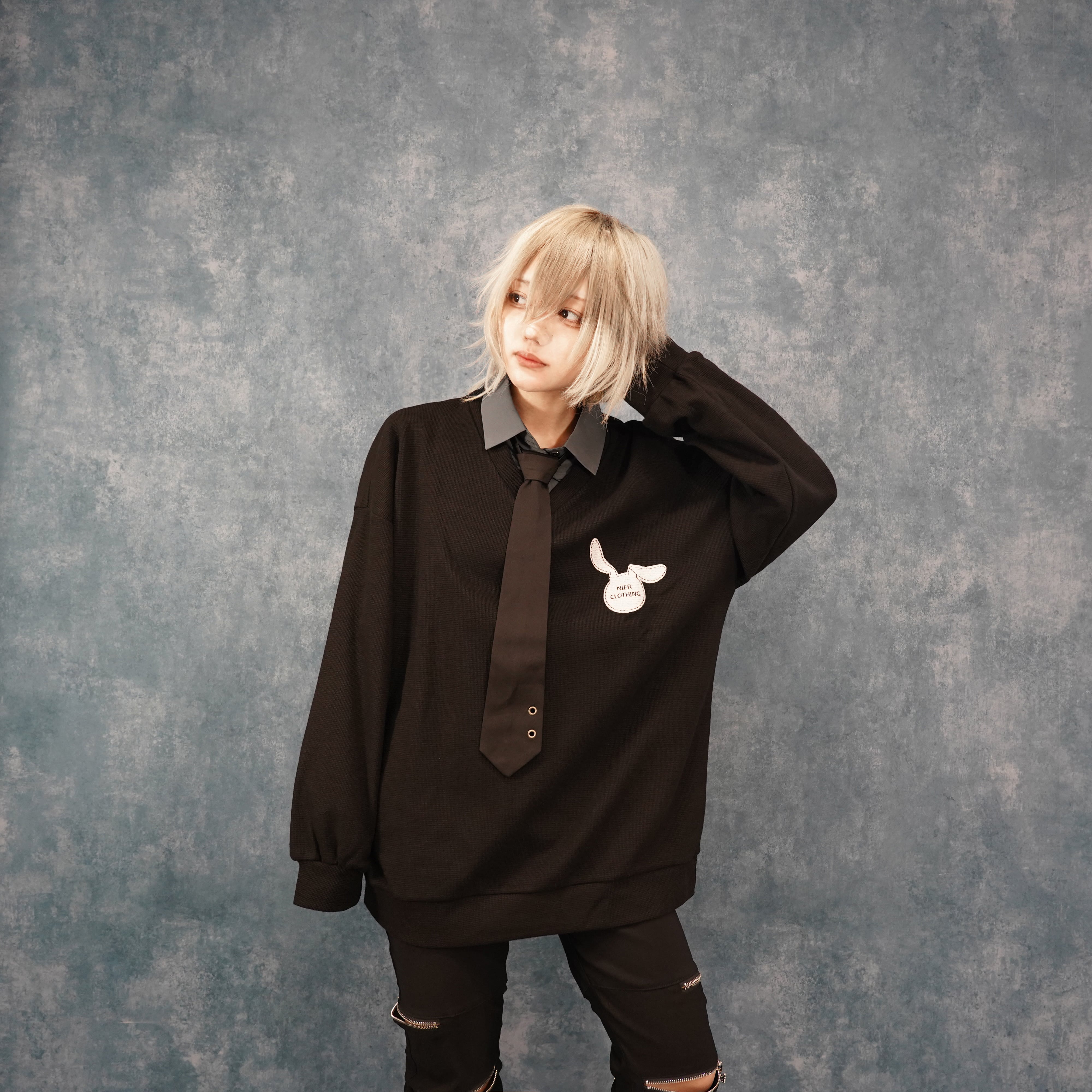 グレーシャツ風の襟パーツとネクタイは取り外し可能で、その日の気分やコーディネートに合わせてアレンジ自由自在◎