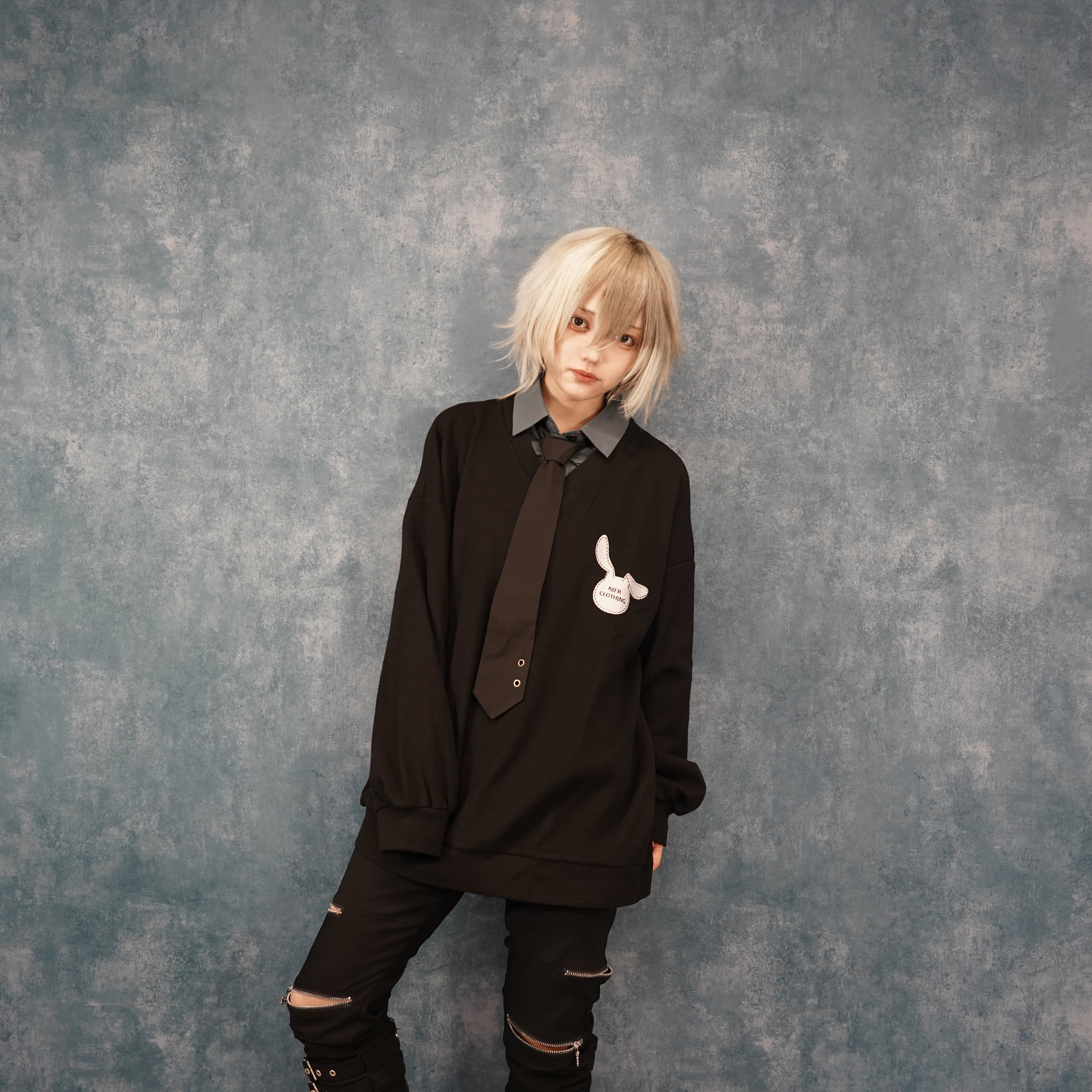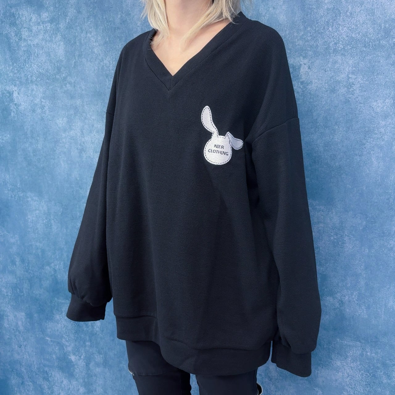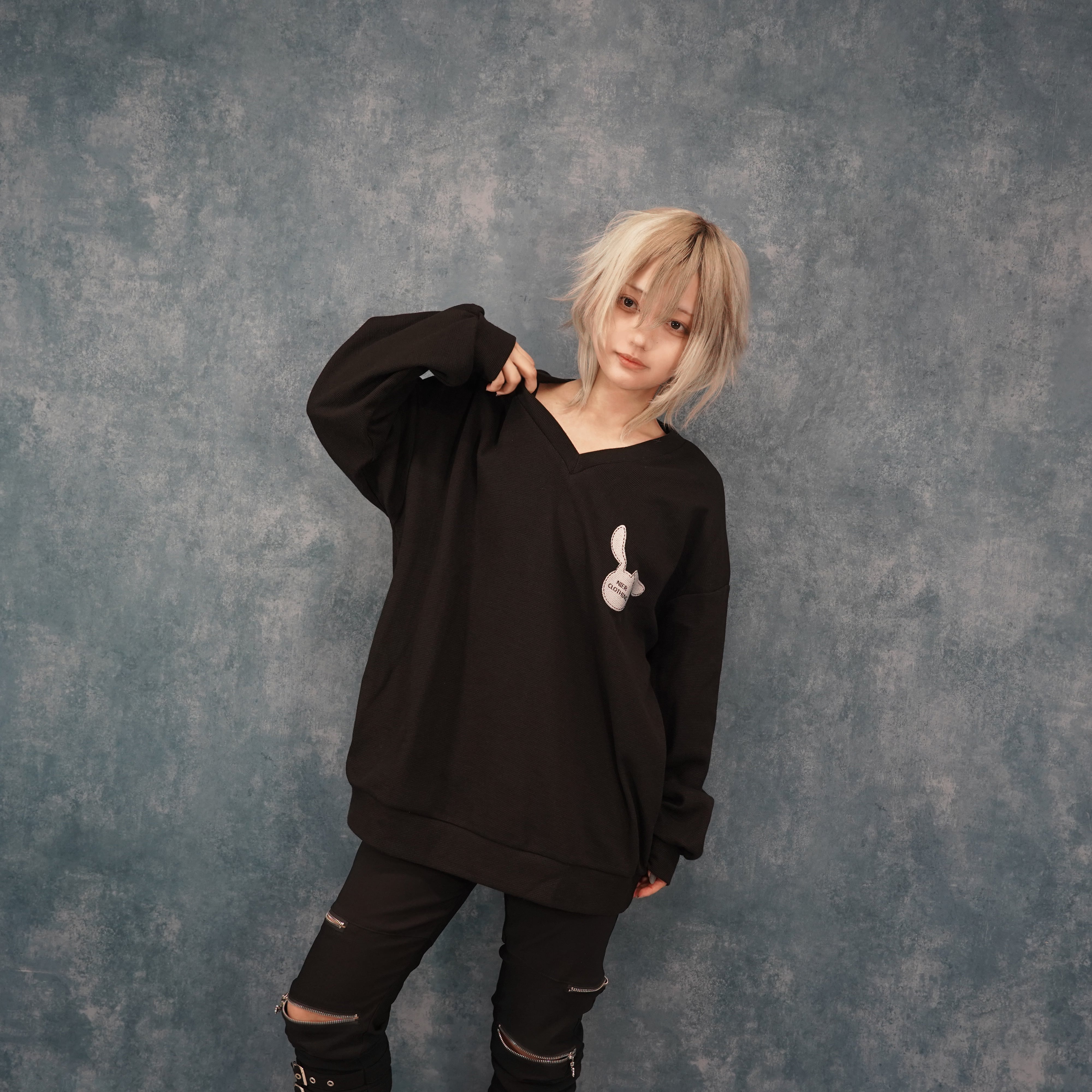 ベースはゆったりとしたシルエットのVネックトップスとなっております。