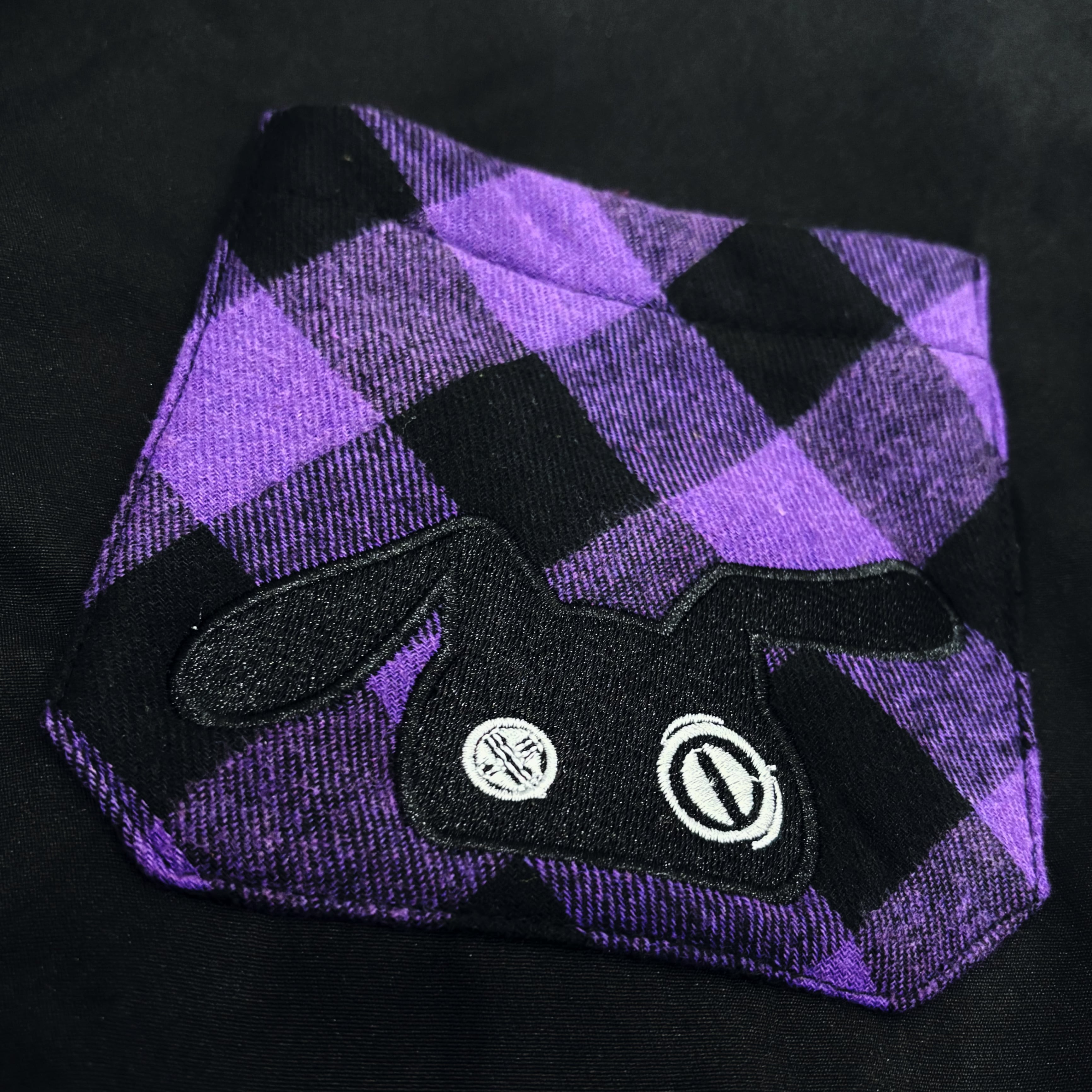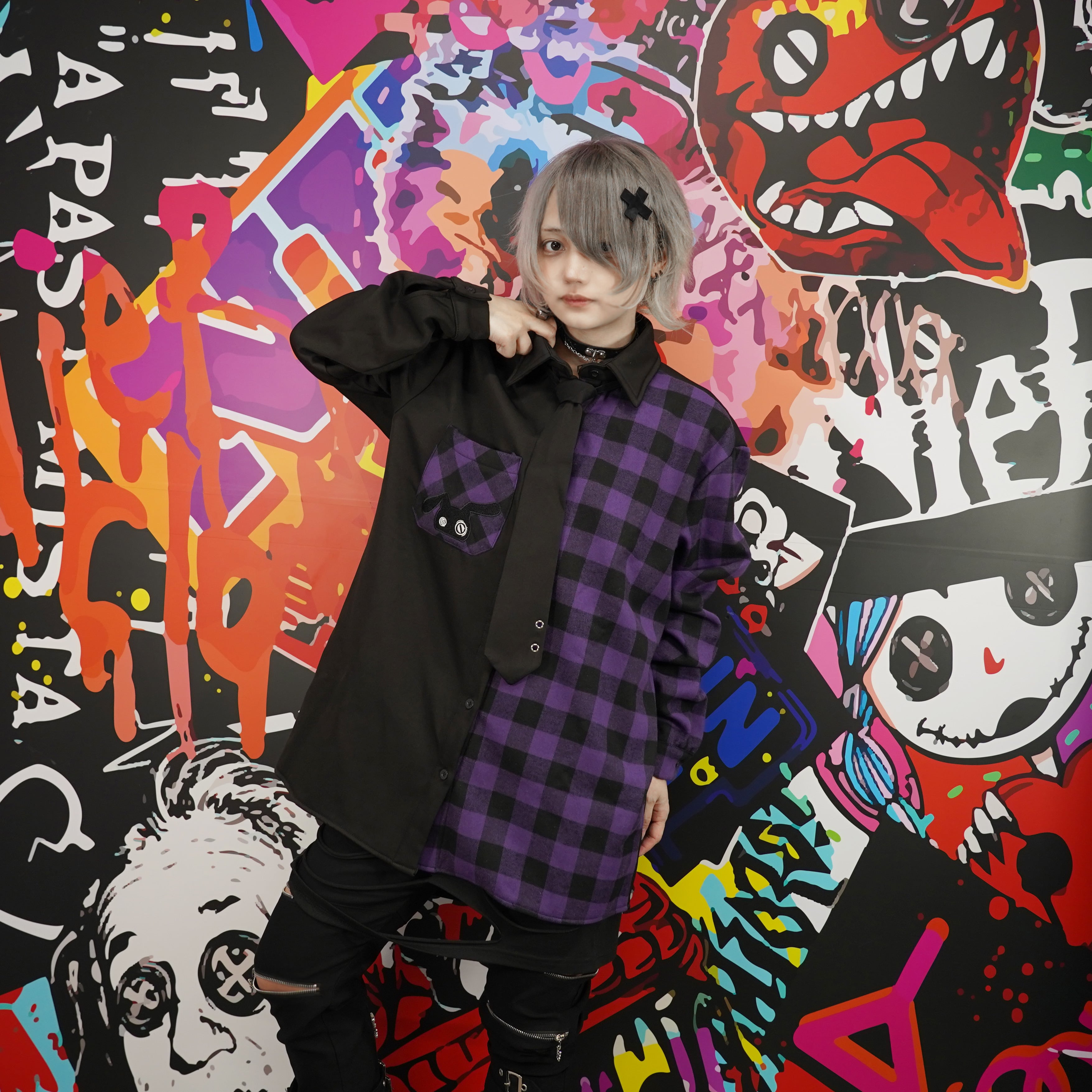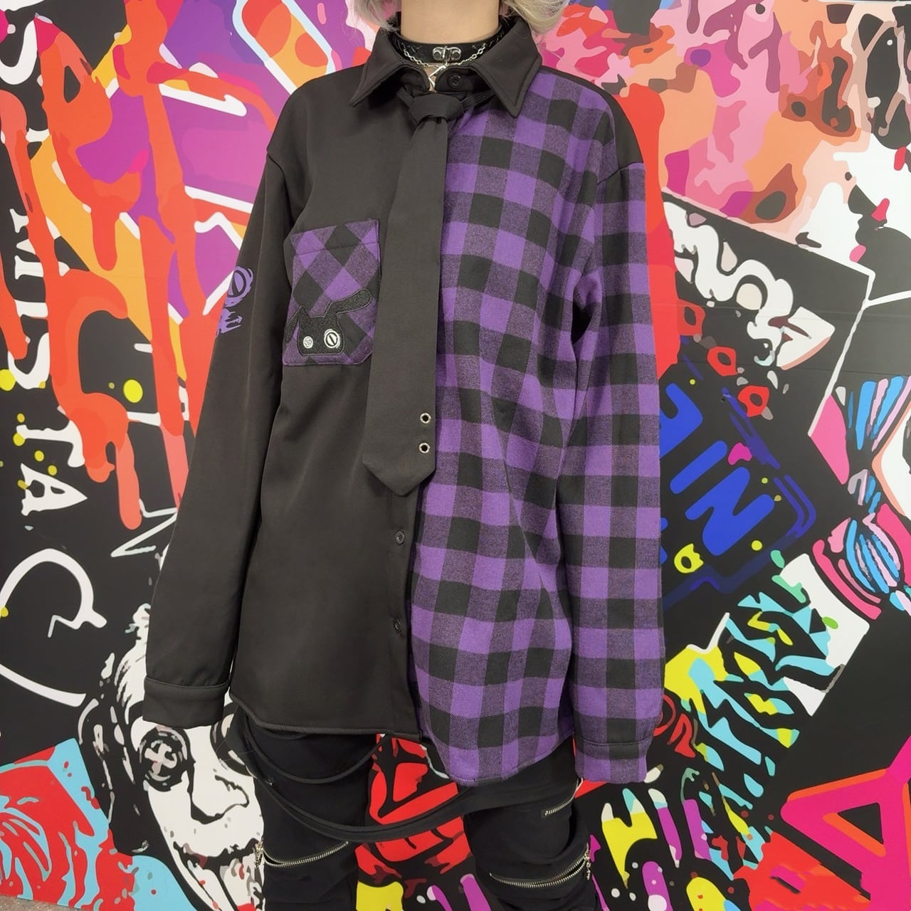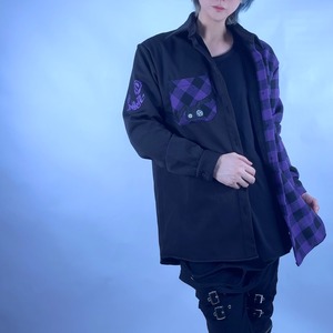 ブラックを基調に、鮮やかなパープルのチェック柄を切り替えた存在感抜群のデザインです。