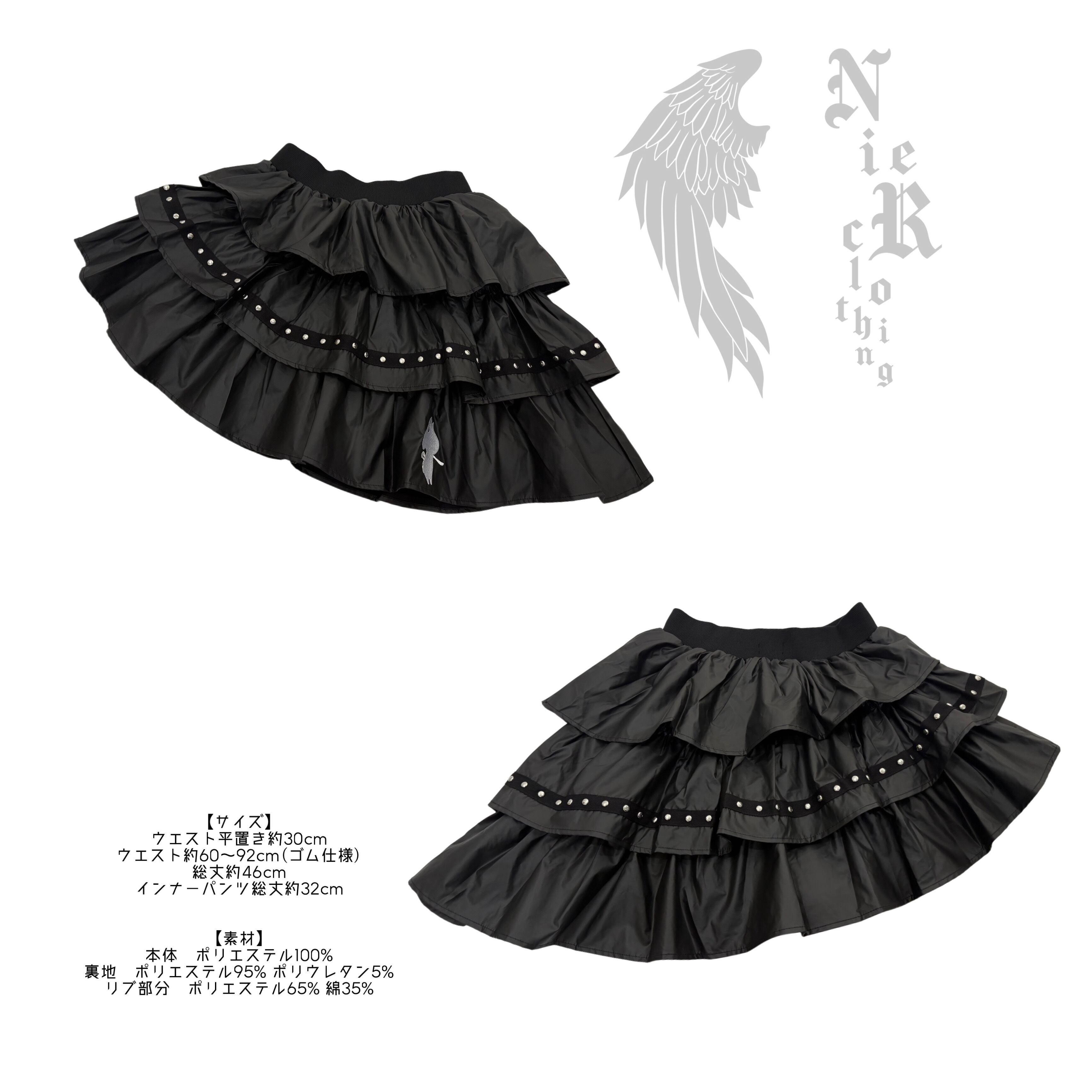 ・ASYMMETRIC BLACK FRILL TIERED SKIRT