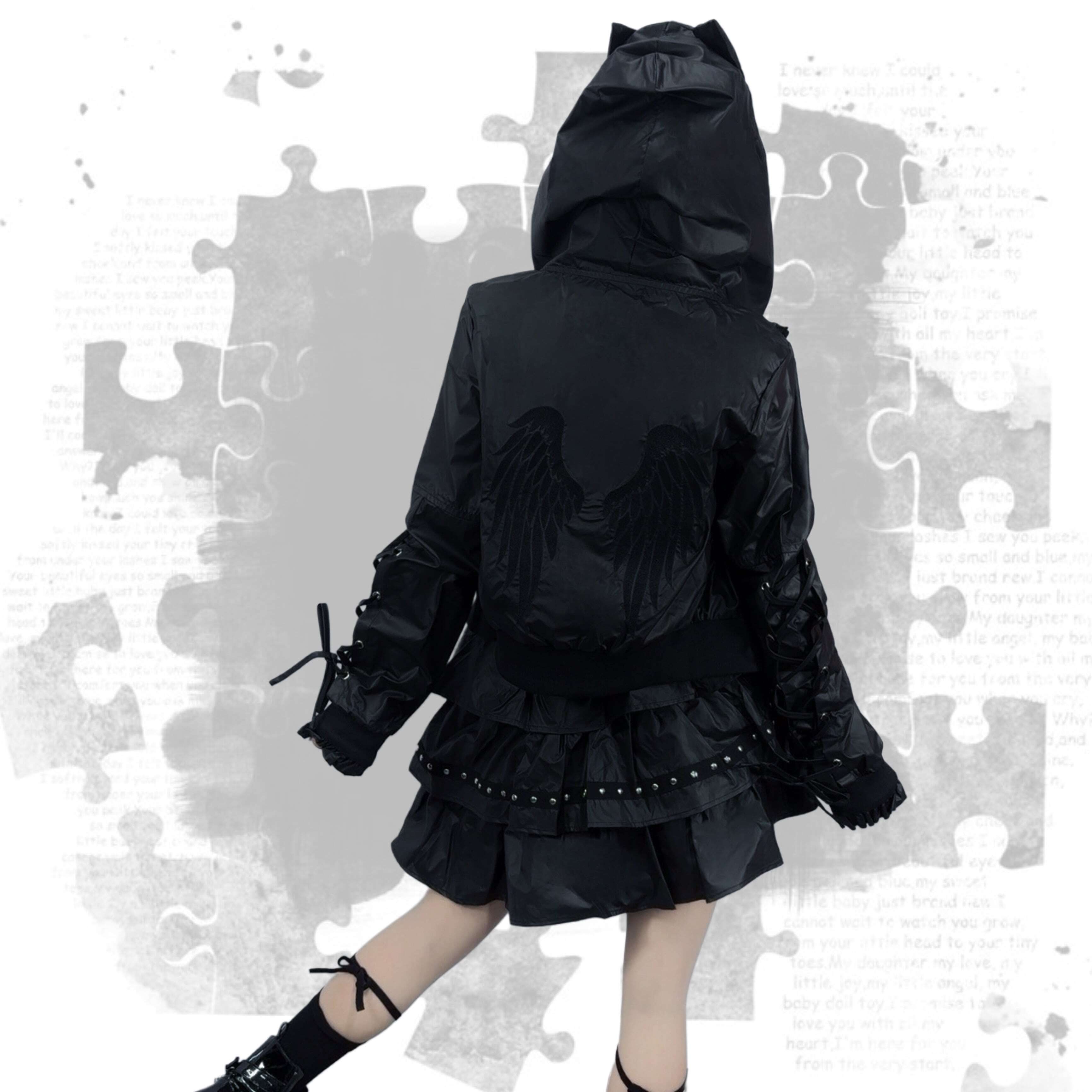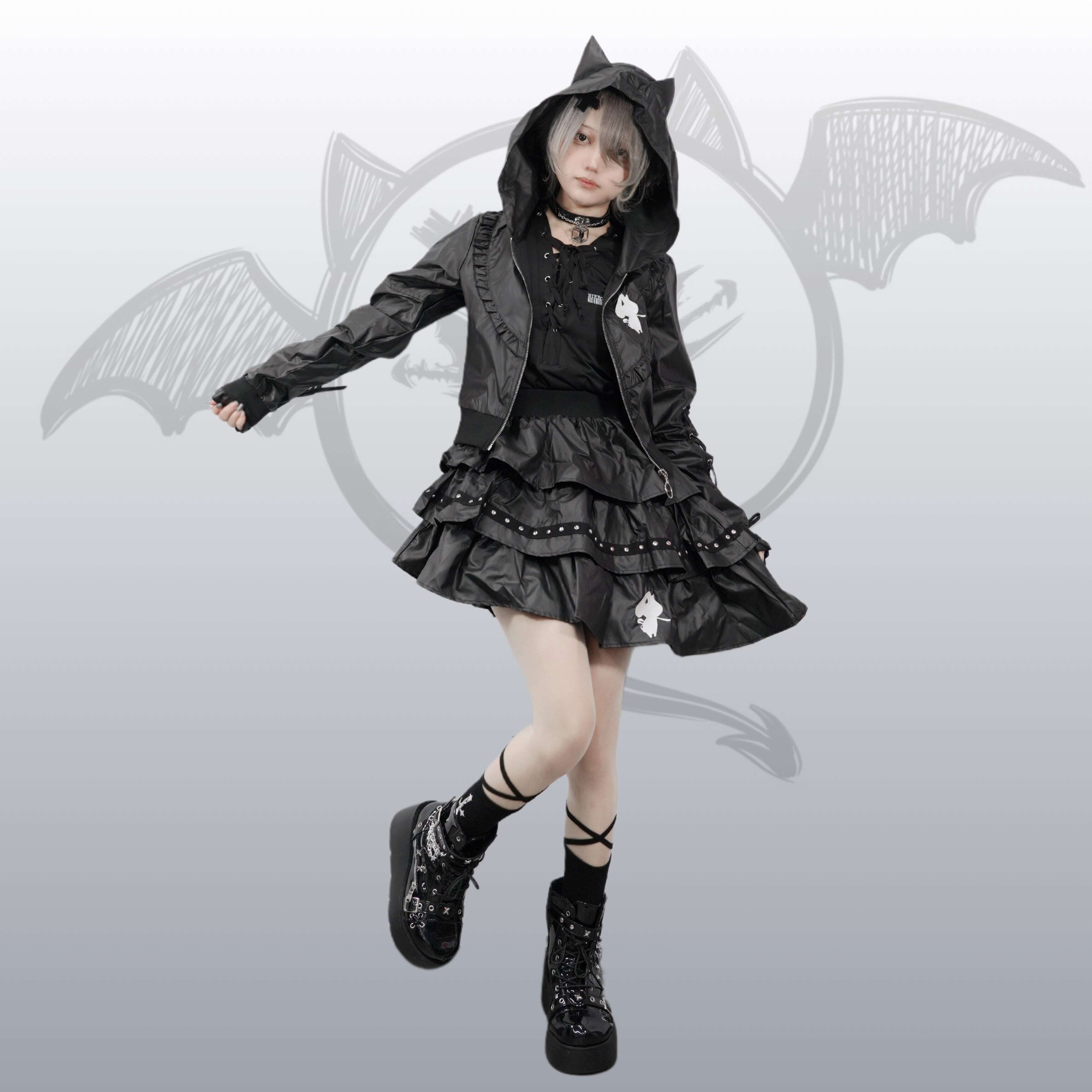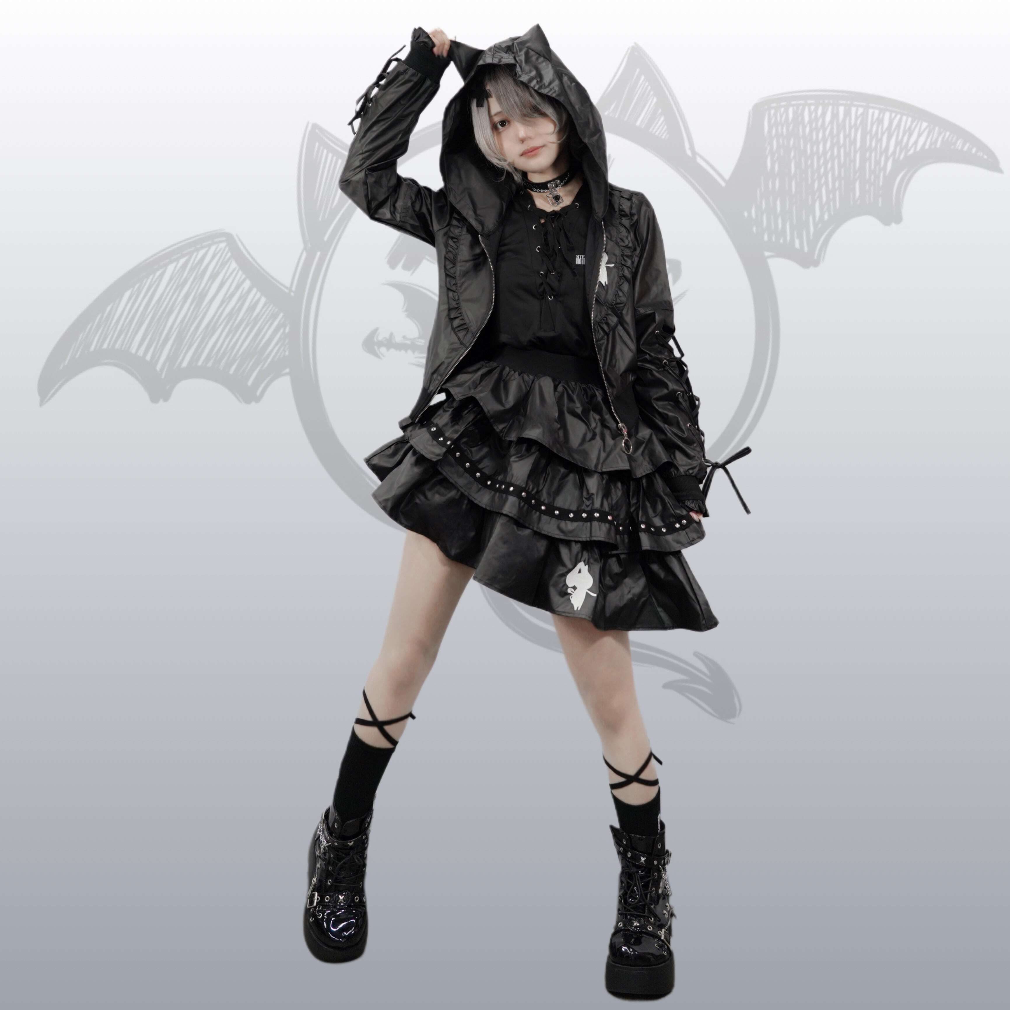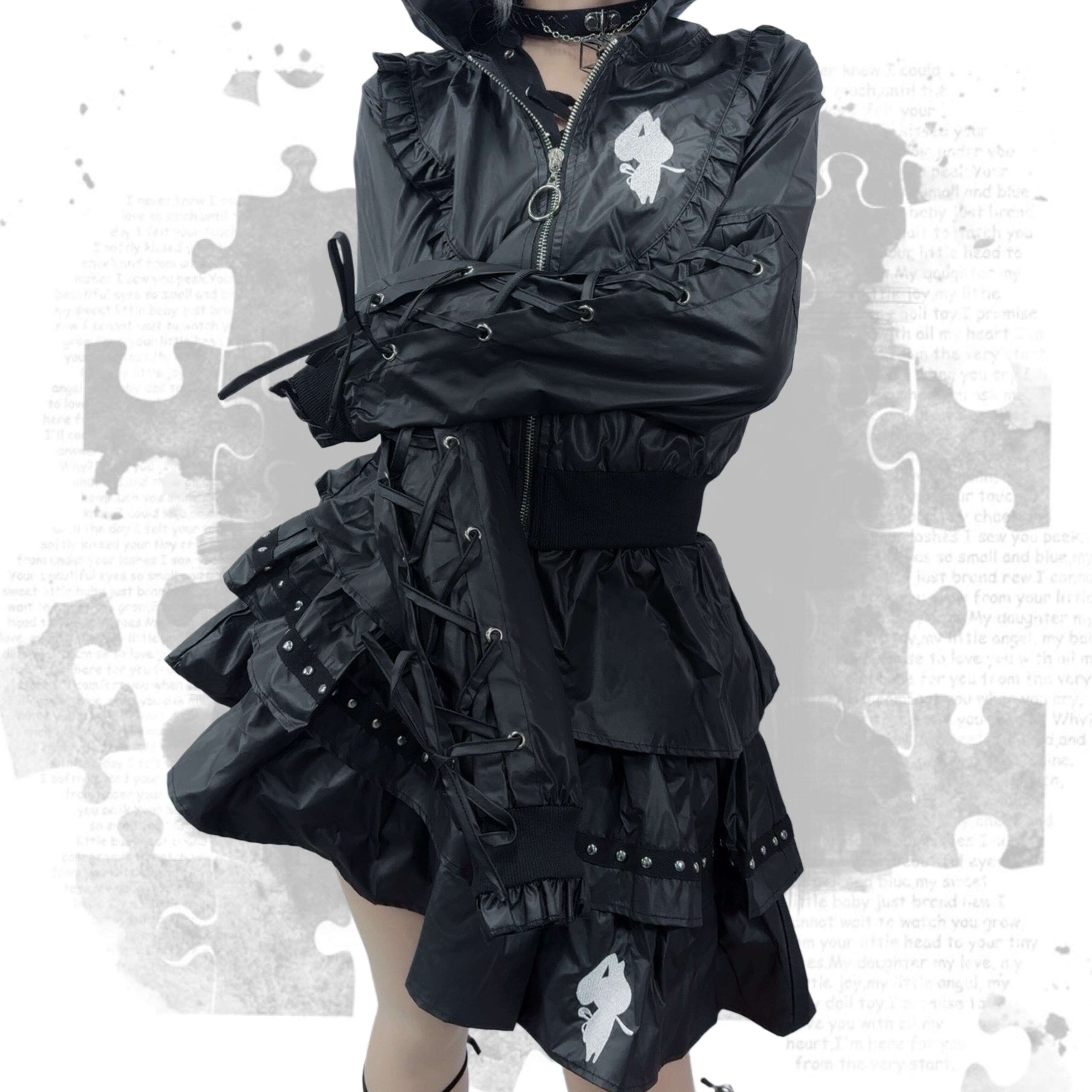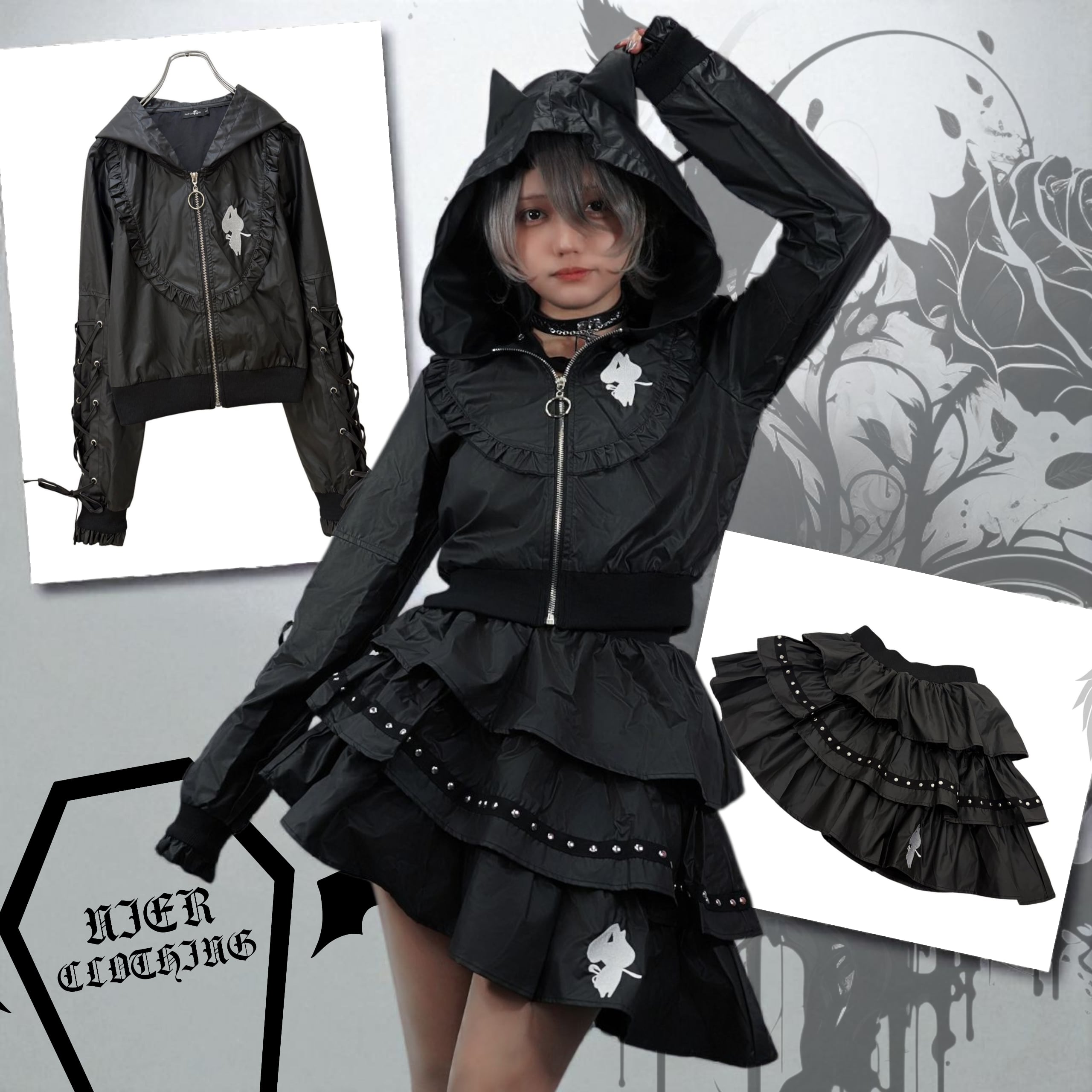 ・猫耳付きレースアップゴシックフリルアウター【BLACK】