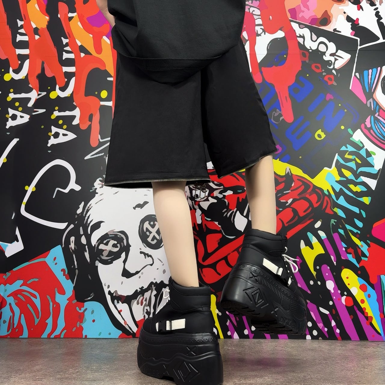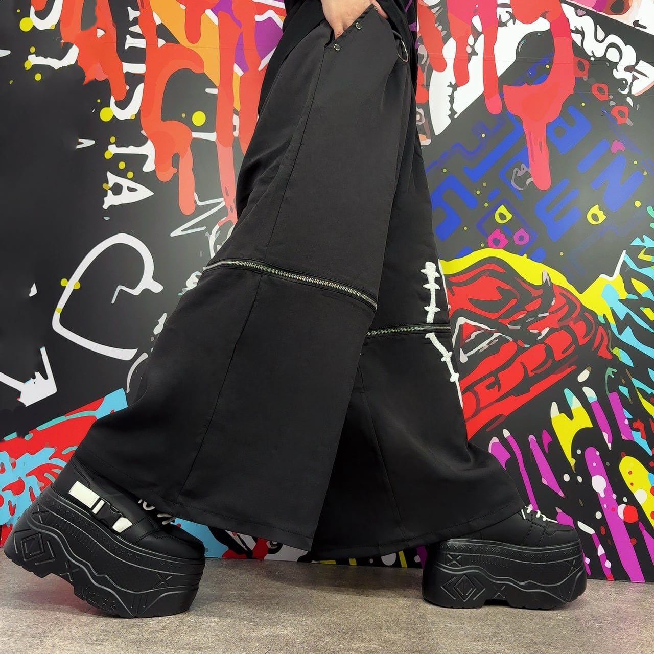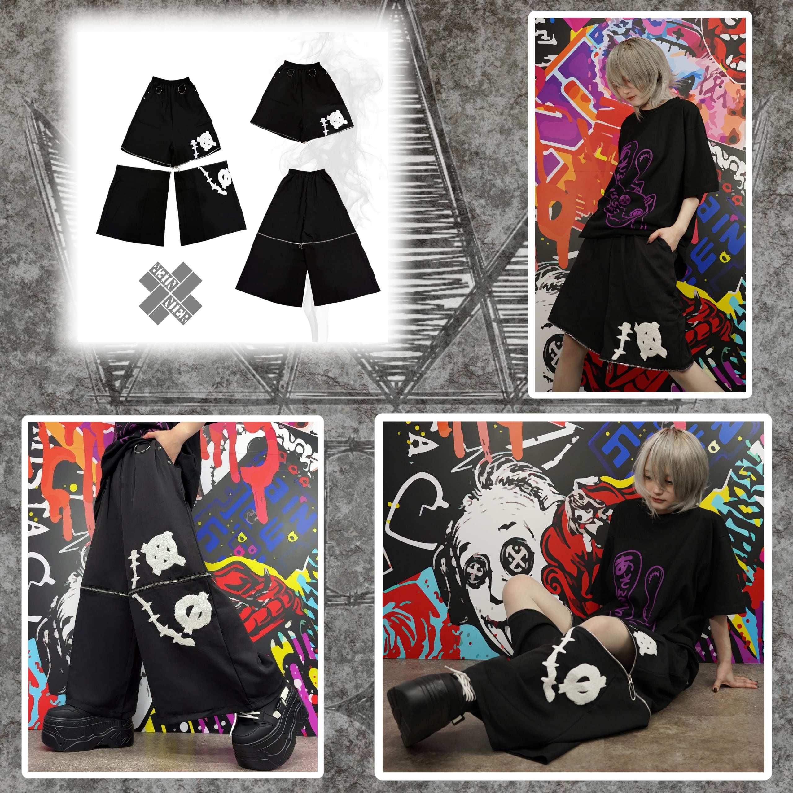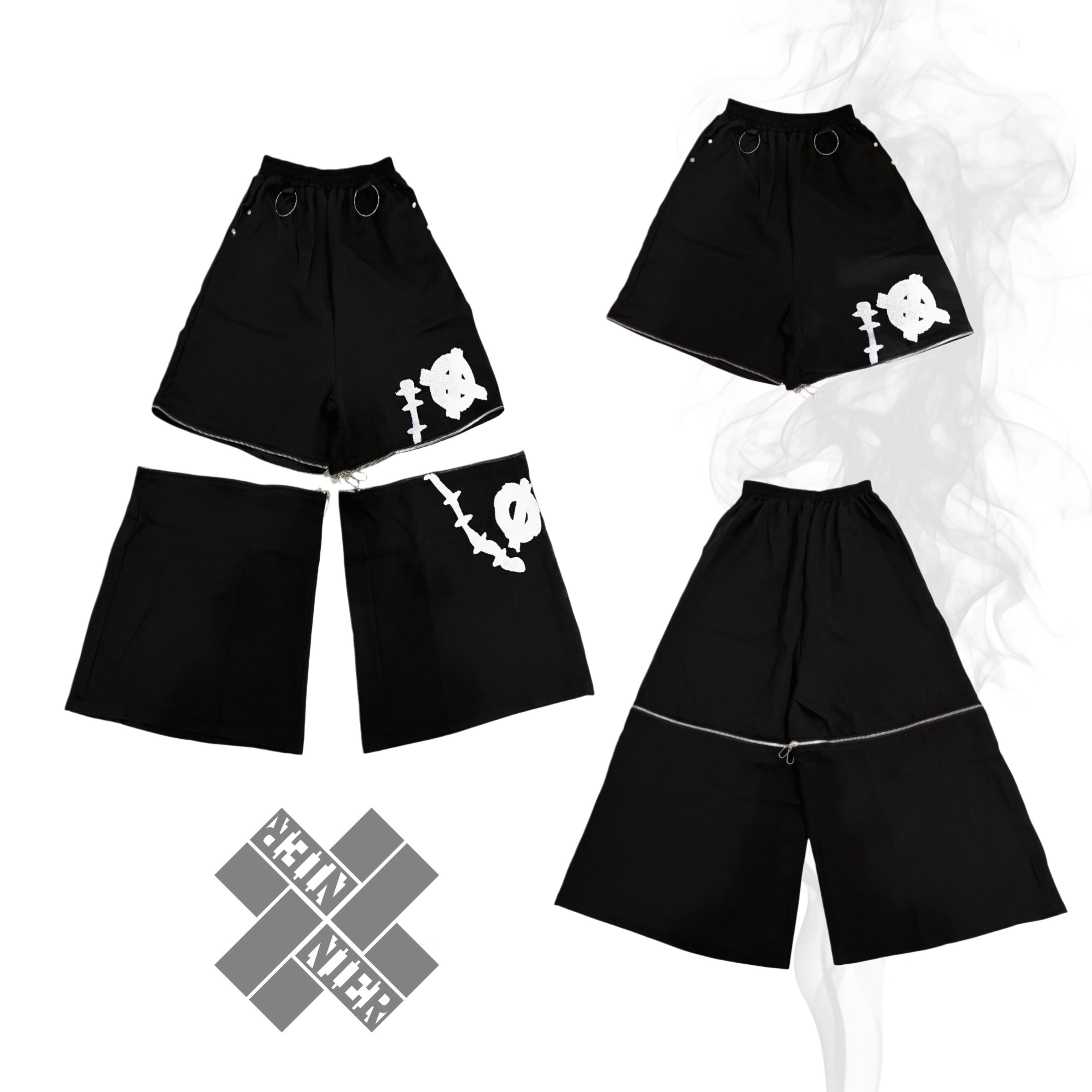 ハーフパンツ⇔ワイドパンツへ変形可能なデザイン。