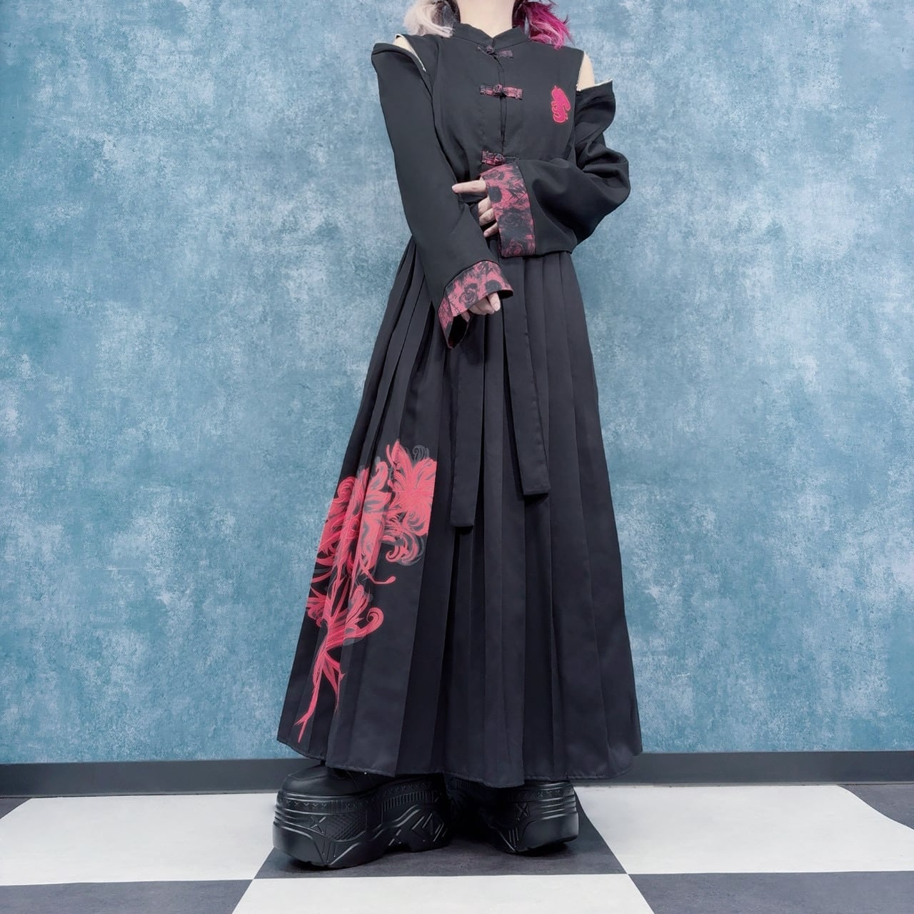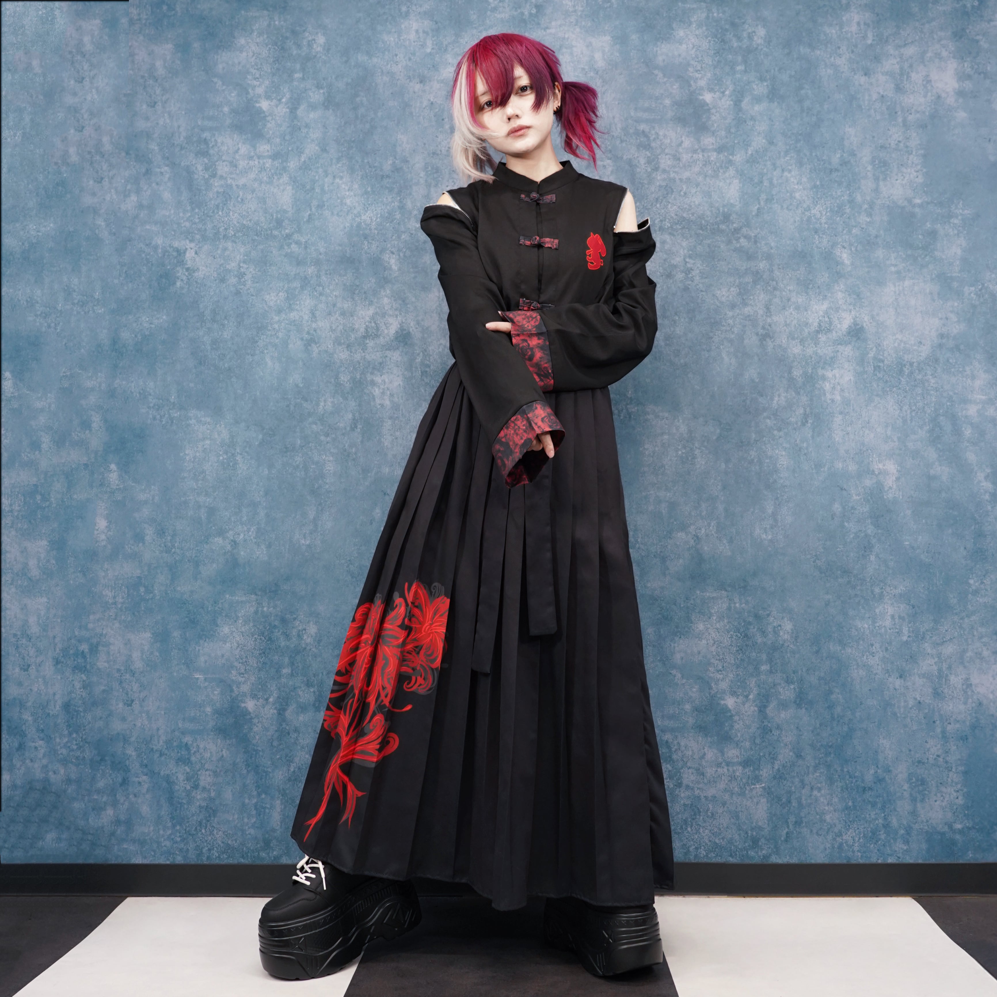 UNISEX 2WAY CHINA LONG SHIRT【RED】