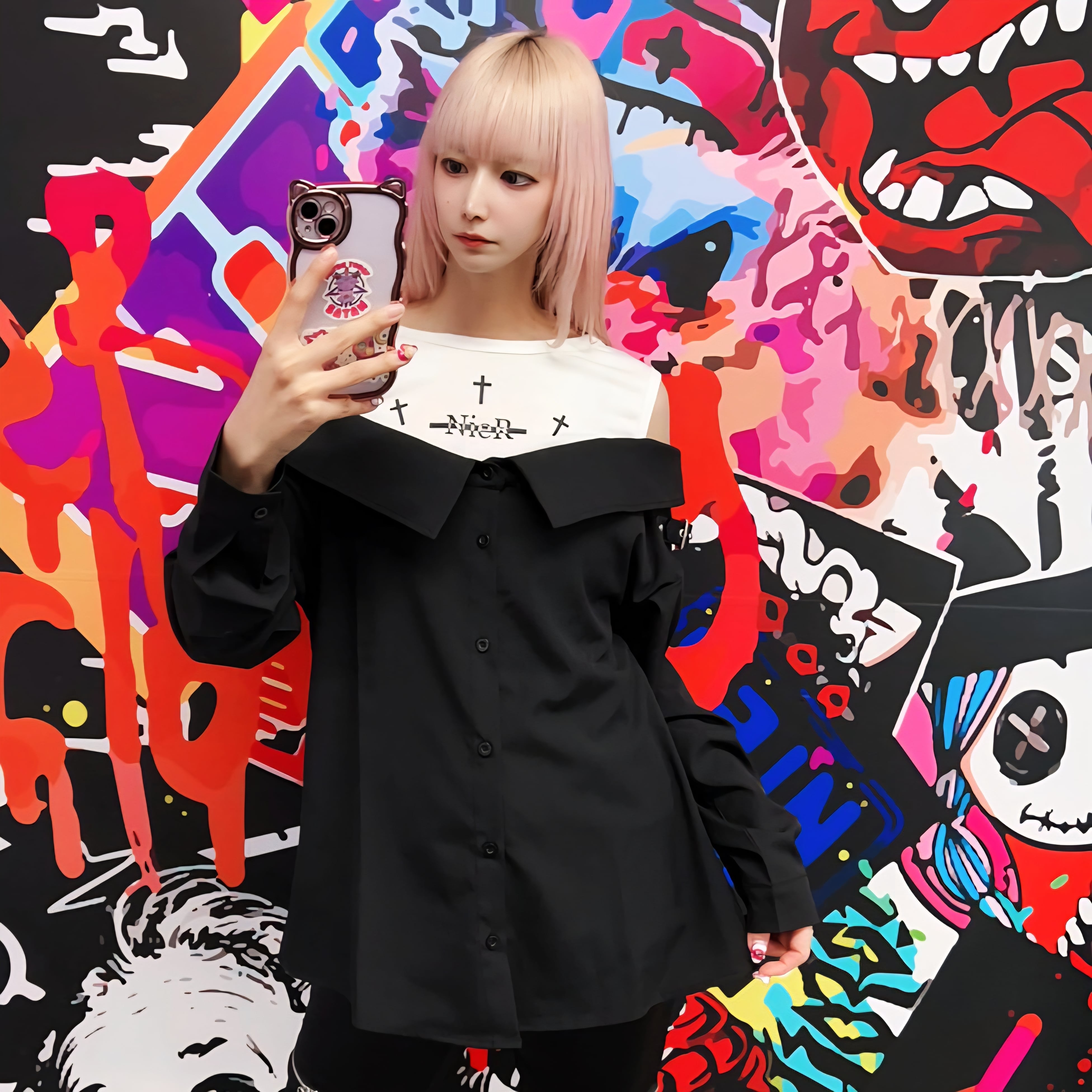 肩をさりげなく覗かせるオフショル仕様×インナー風ヨークで、