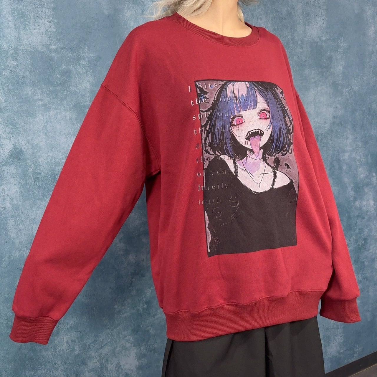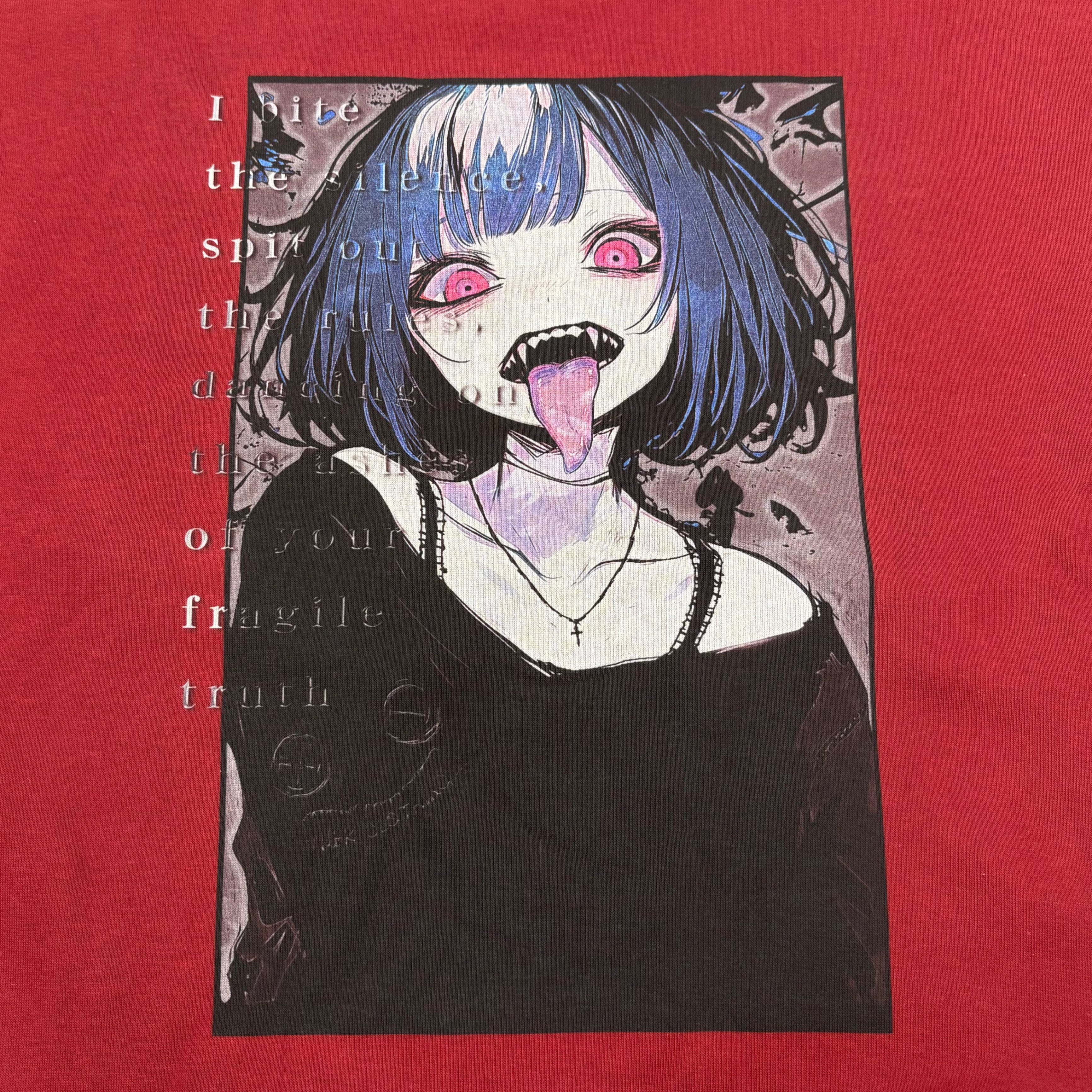 フロントには、鋭い牙と赤く光る瞳が印象的なヴァンパイアガールのイラストを大胆にプリント。