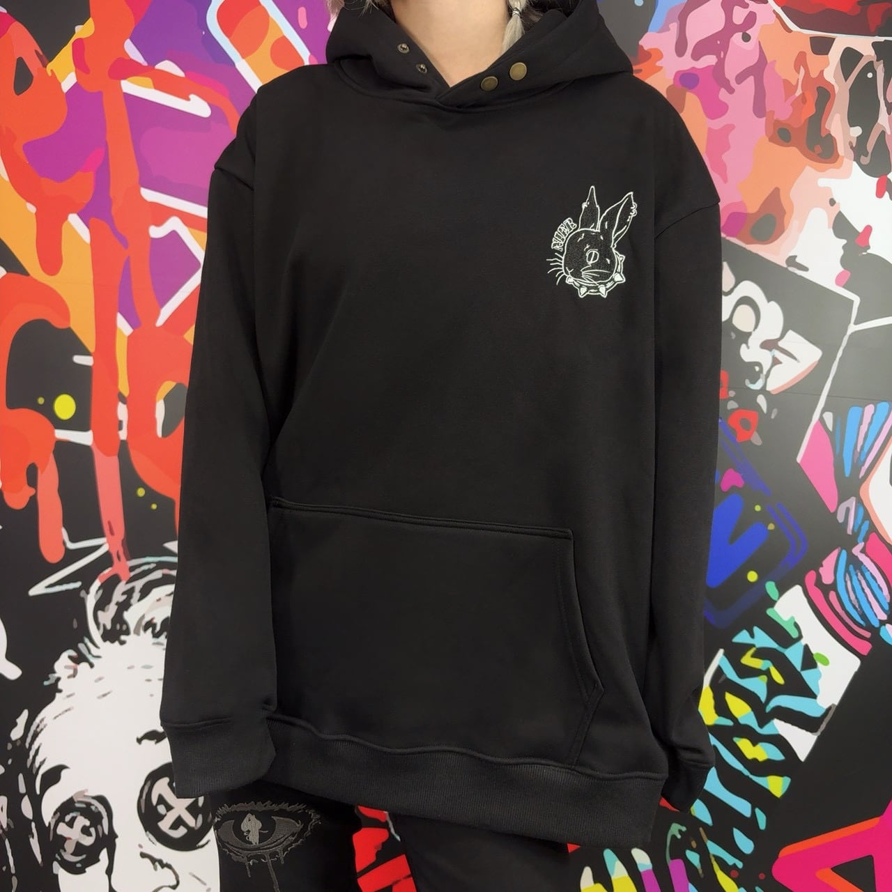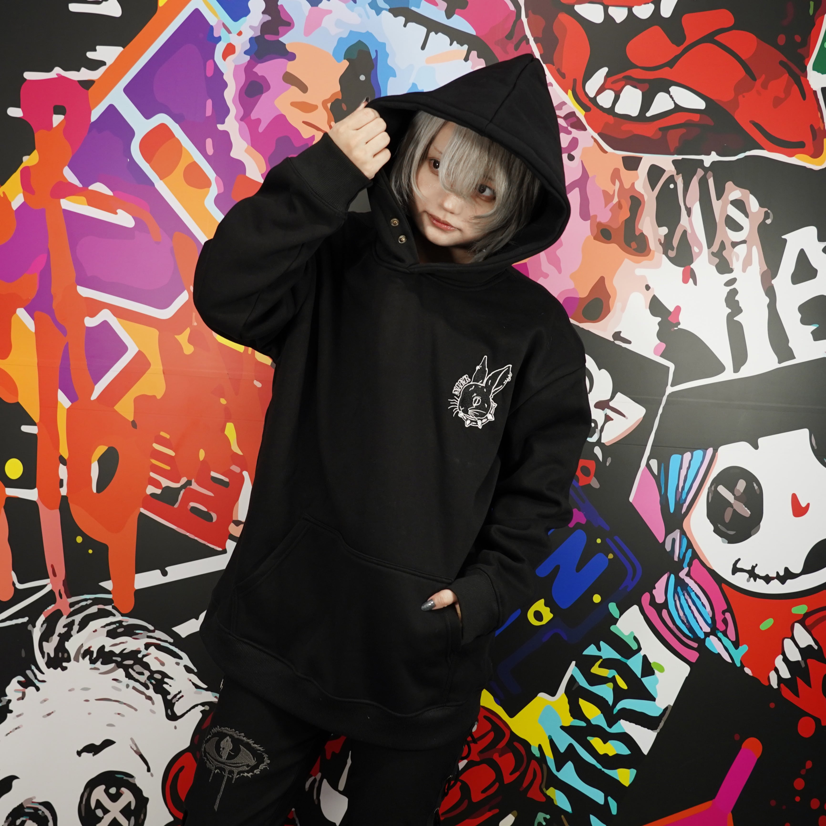 《10月限定大特価》RABBIT刺繍入りBACK GRAPHIC BLACK PARKA
