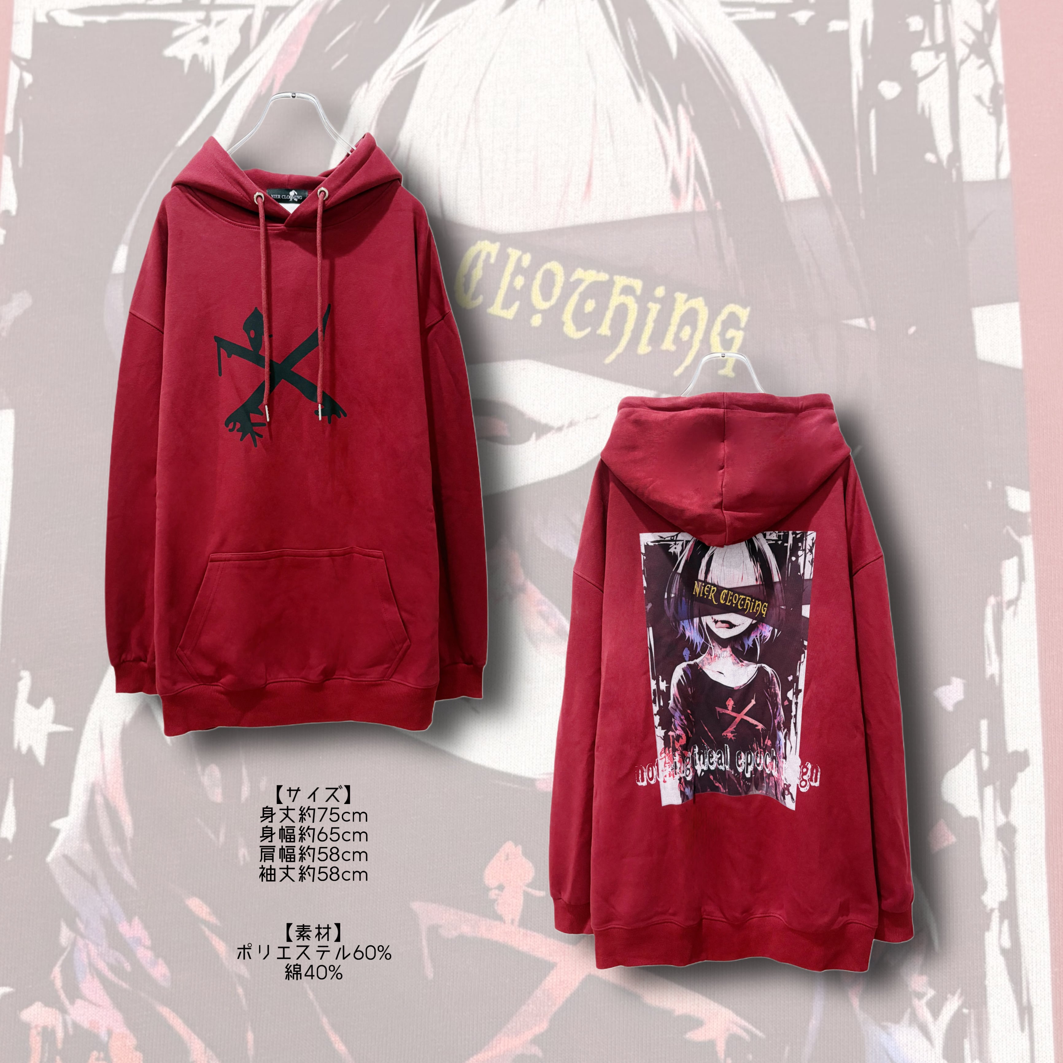 フロントにはNIER定番のクロスモチーフが大胆にプリントされ、
