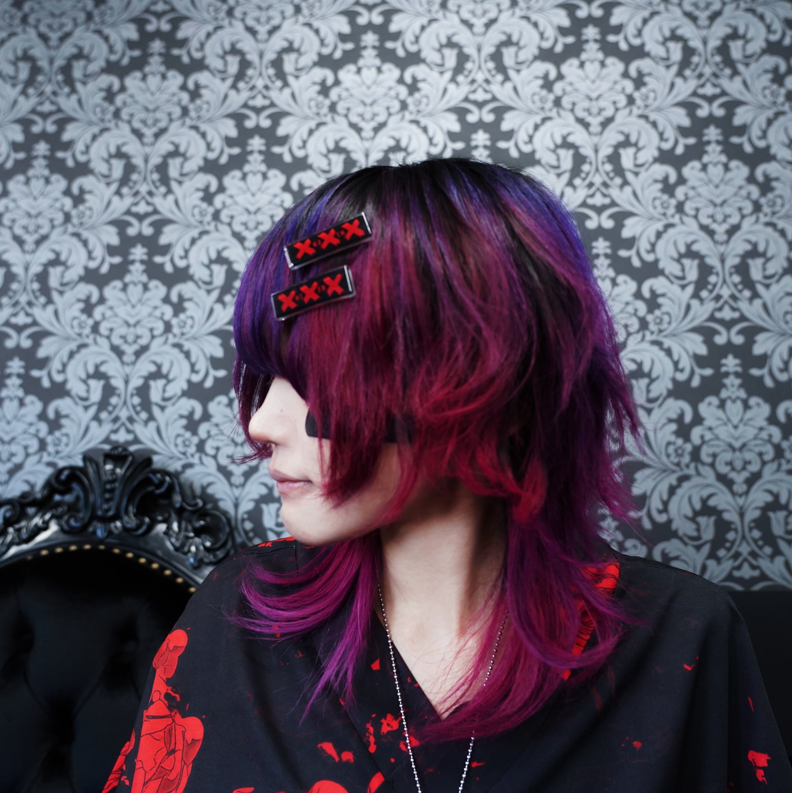 ブラックボディにレッドのクロスモチーフを落とし込み、ダークな世界観を演出。