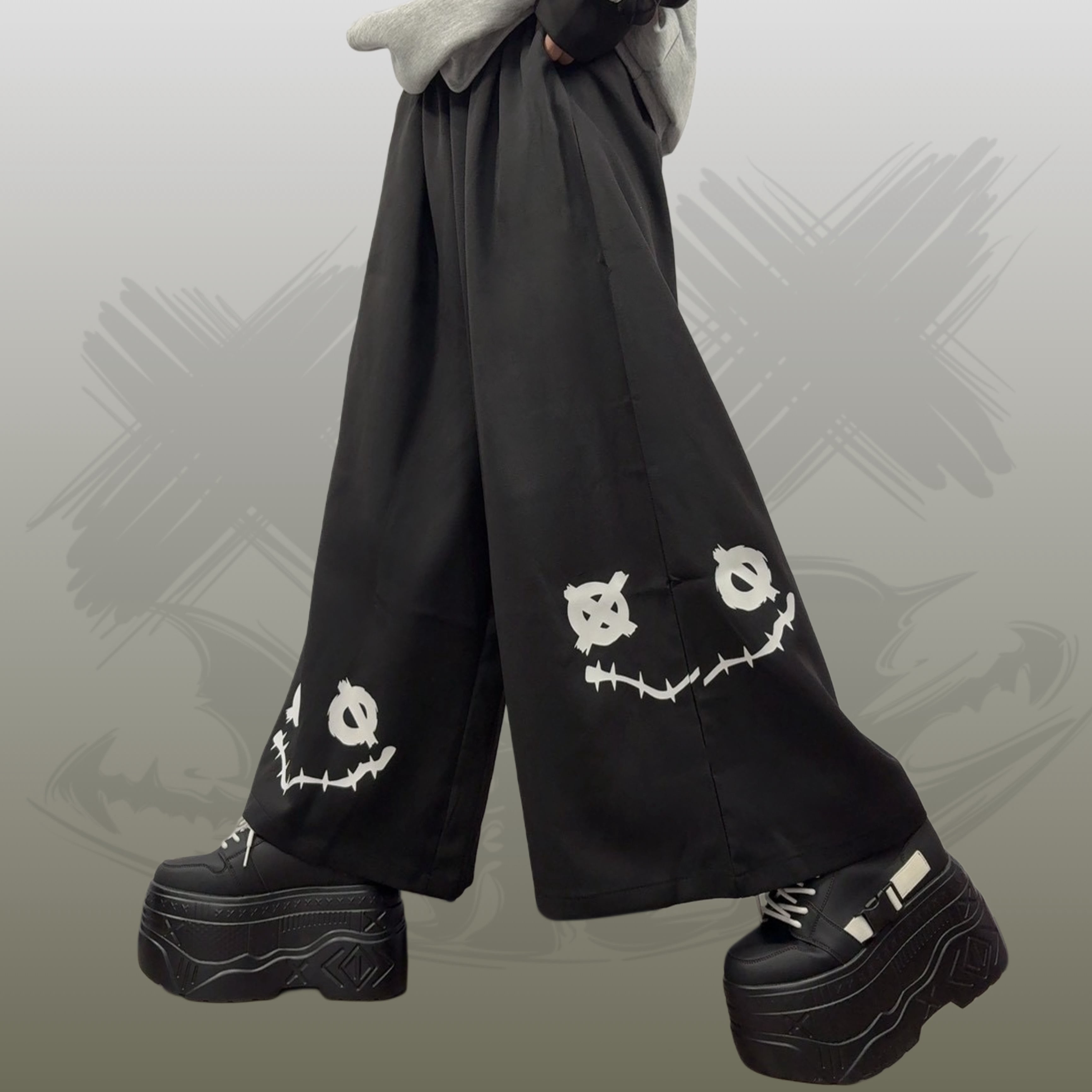 《10月7日限定目玉大特価》SMILE FACE BLACK WIDE PANTS