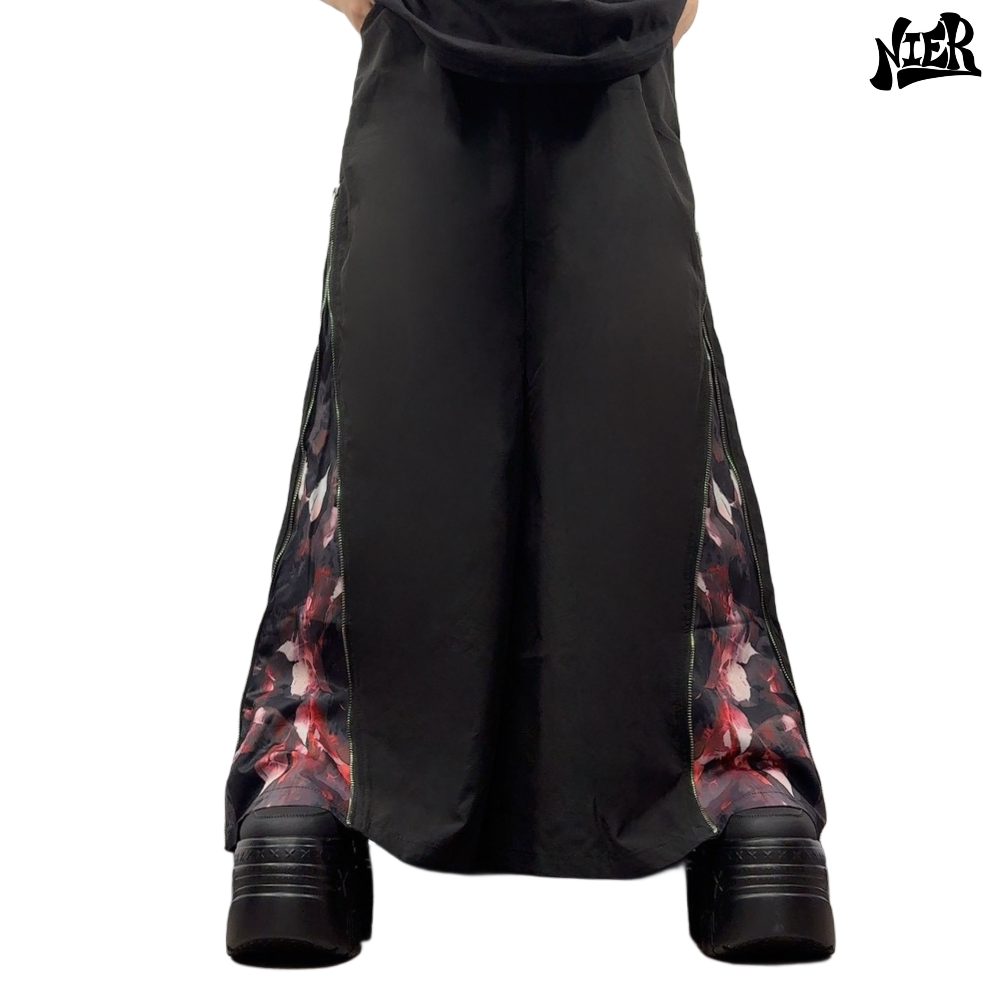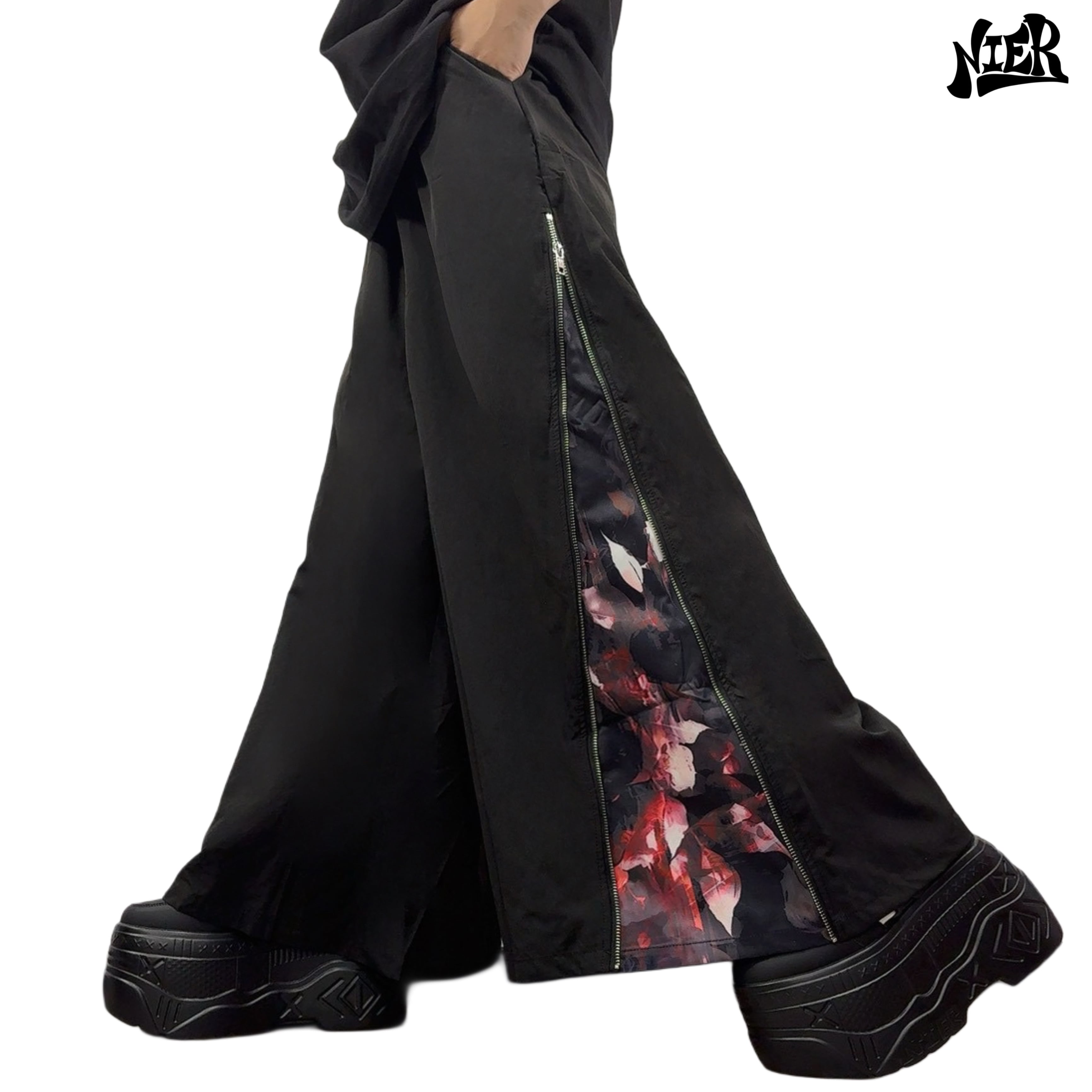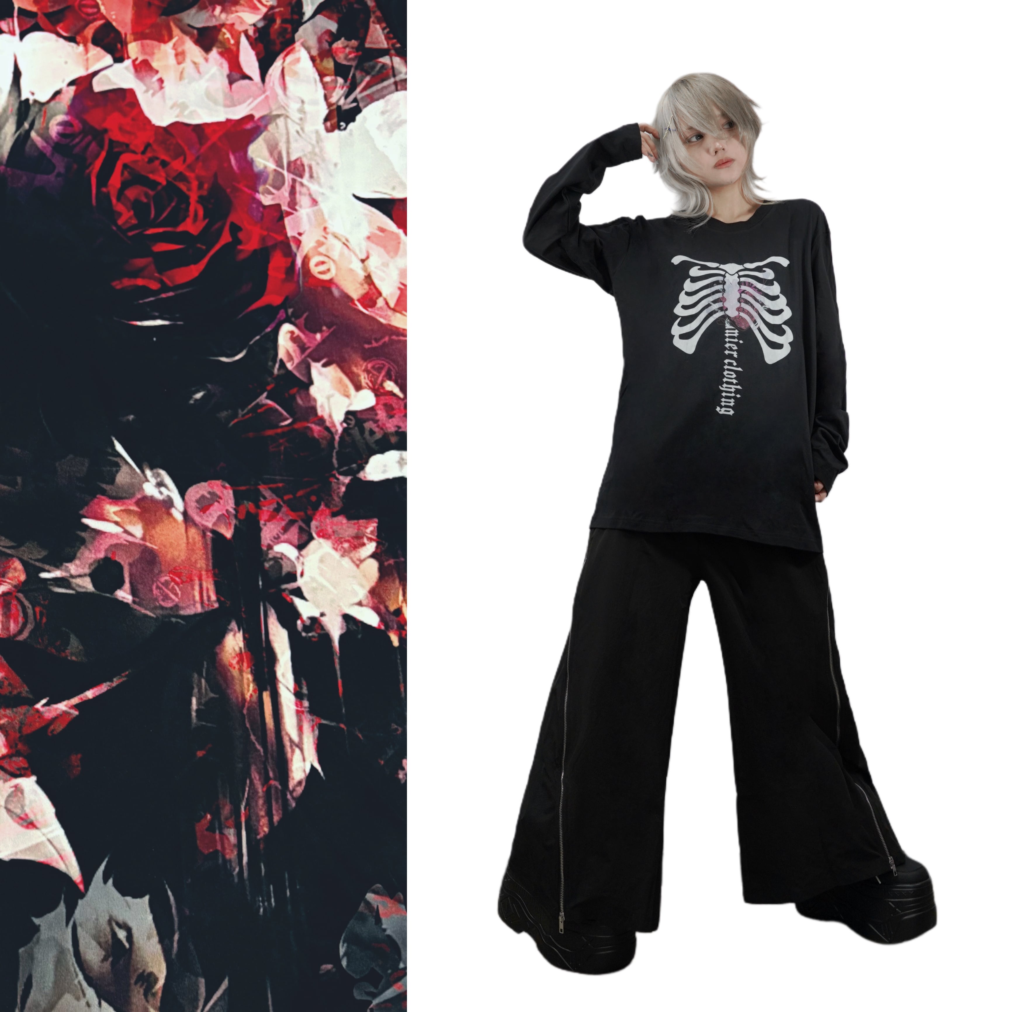 ZIPを開けば闇の中に咲くような赤薔薇が覗く、華やかさと退廃美を併せ持つワイドパンツが登場☆