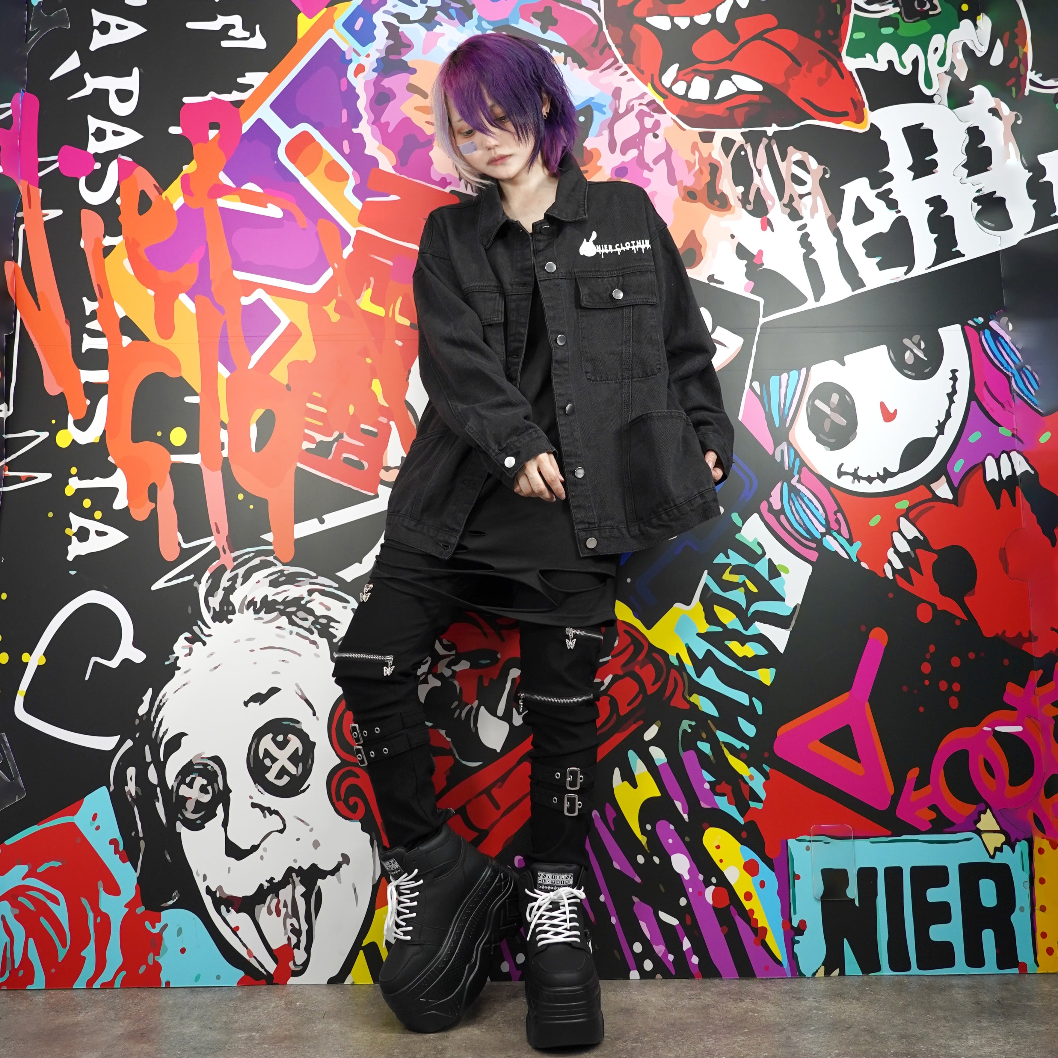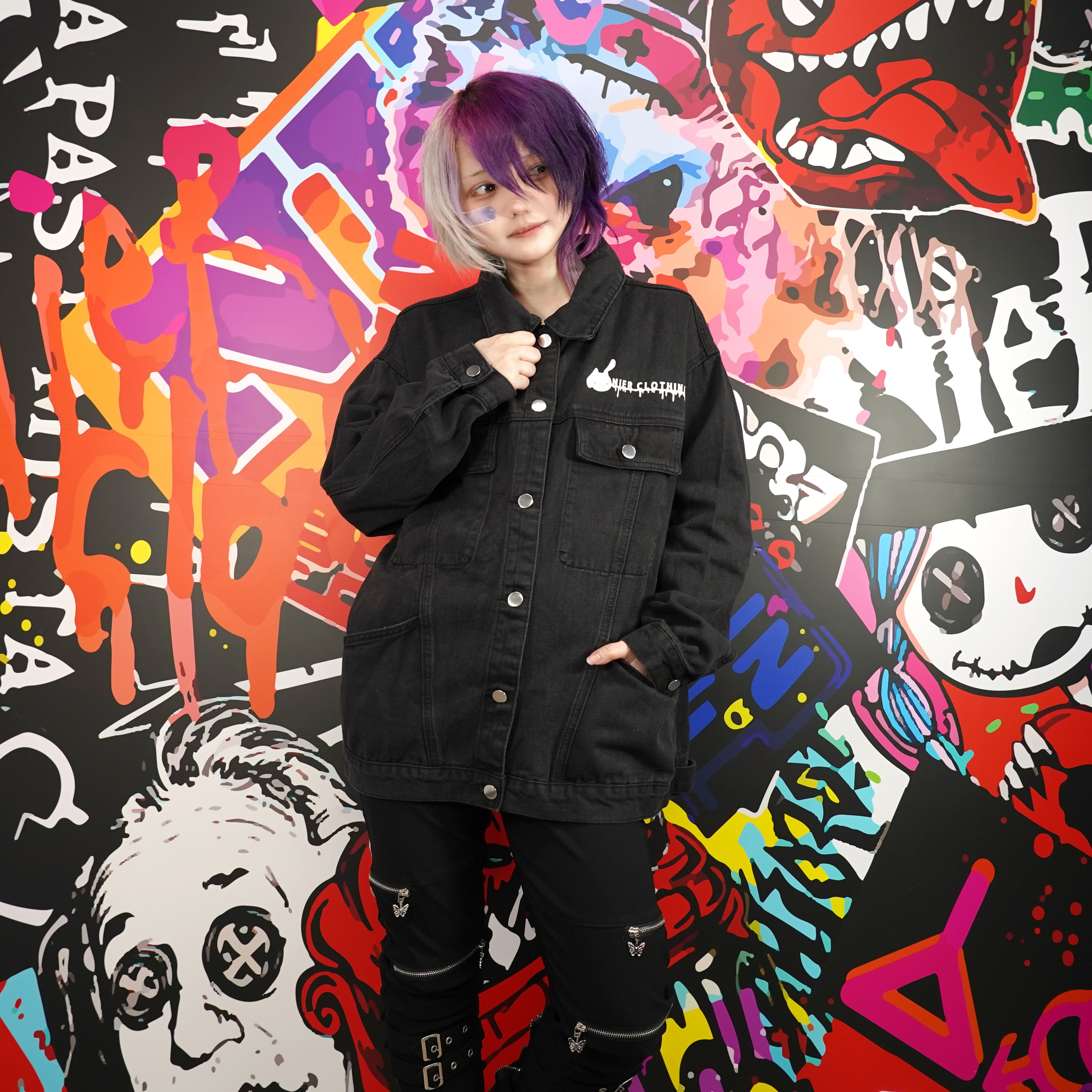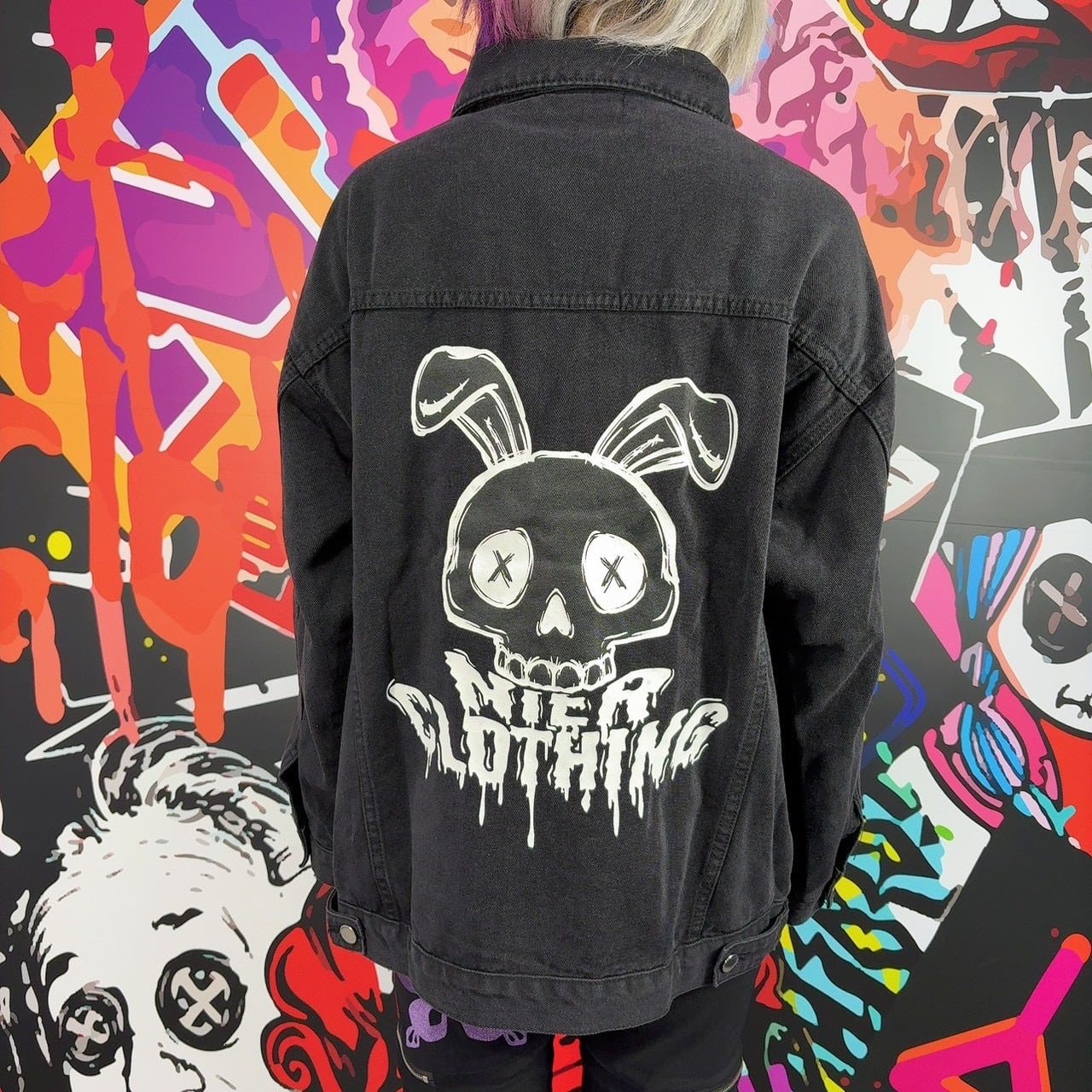 《11月25日限定目玉大特価》SKULL BUNNY BACKPAINT BLACK DENIM JACKET