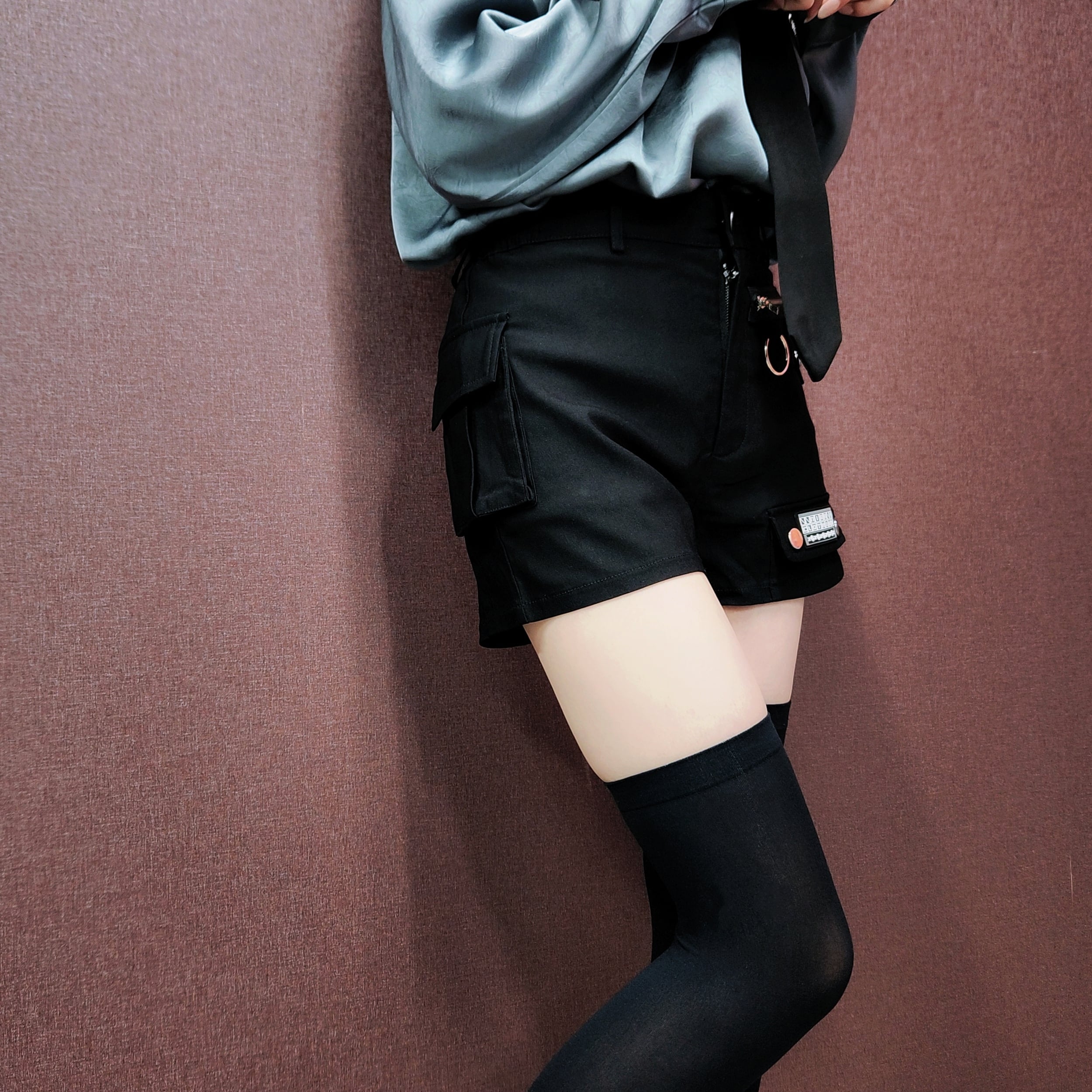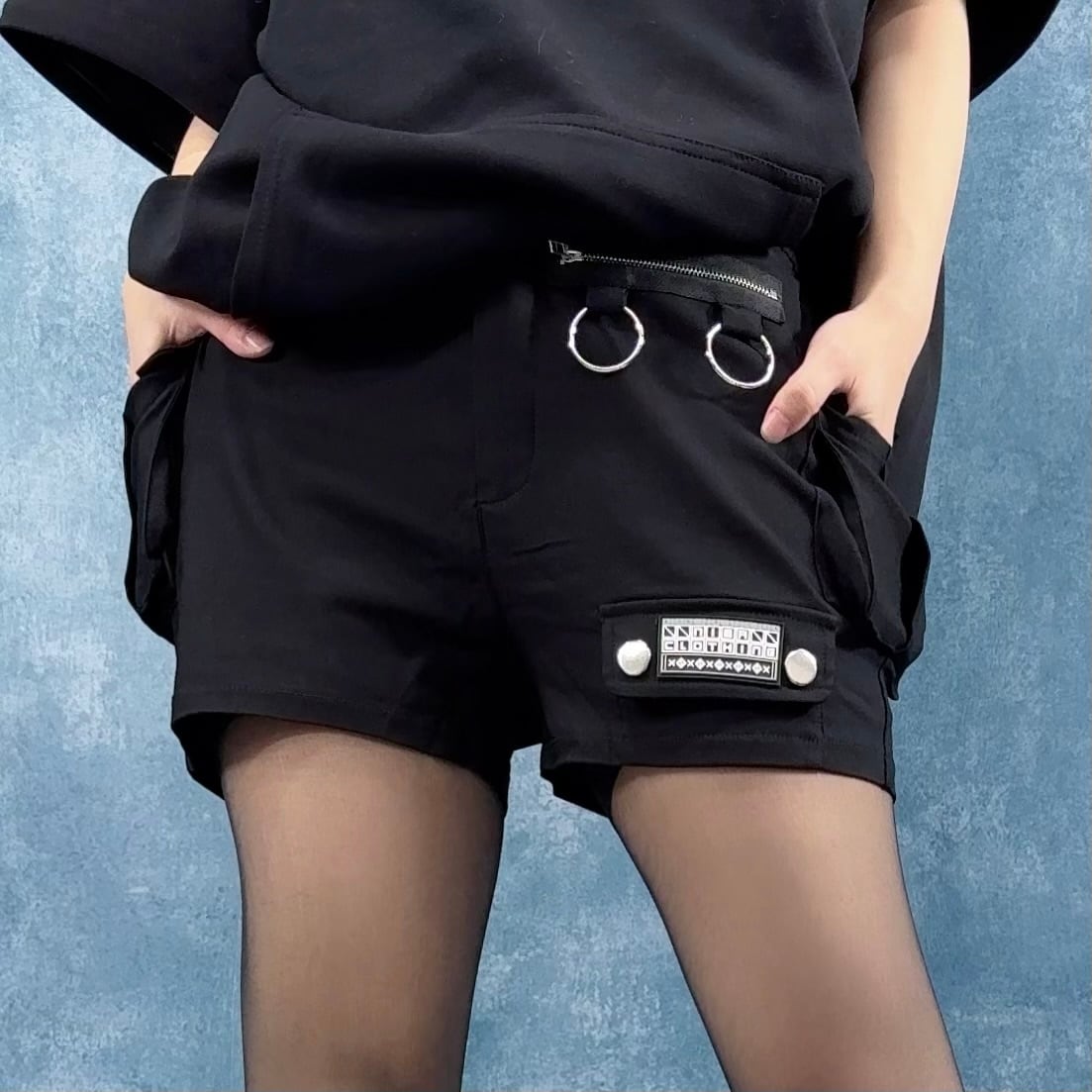 FAKE ZIP DOUBLE RING CARGO SHORT PANTS