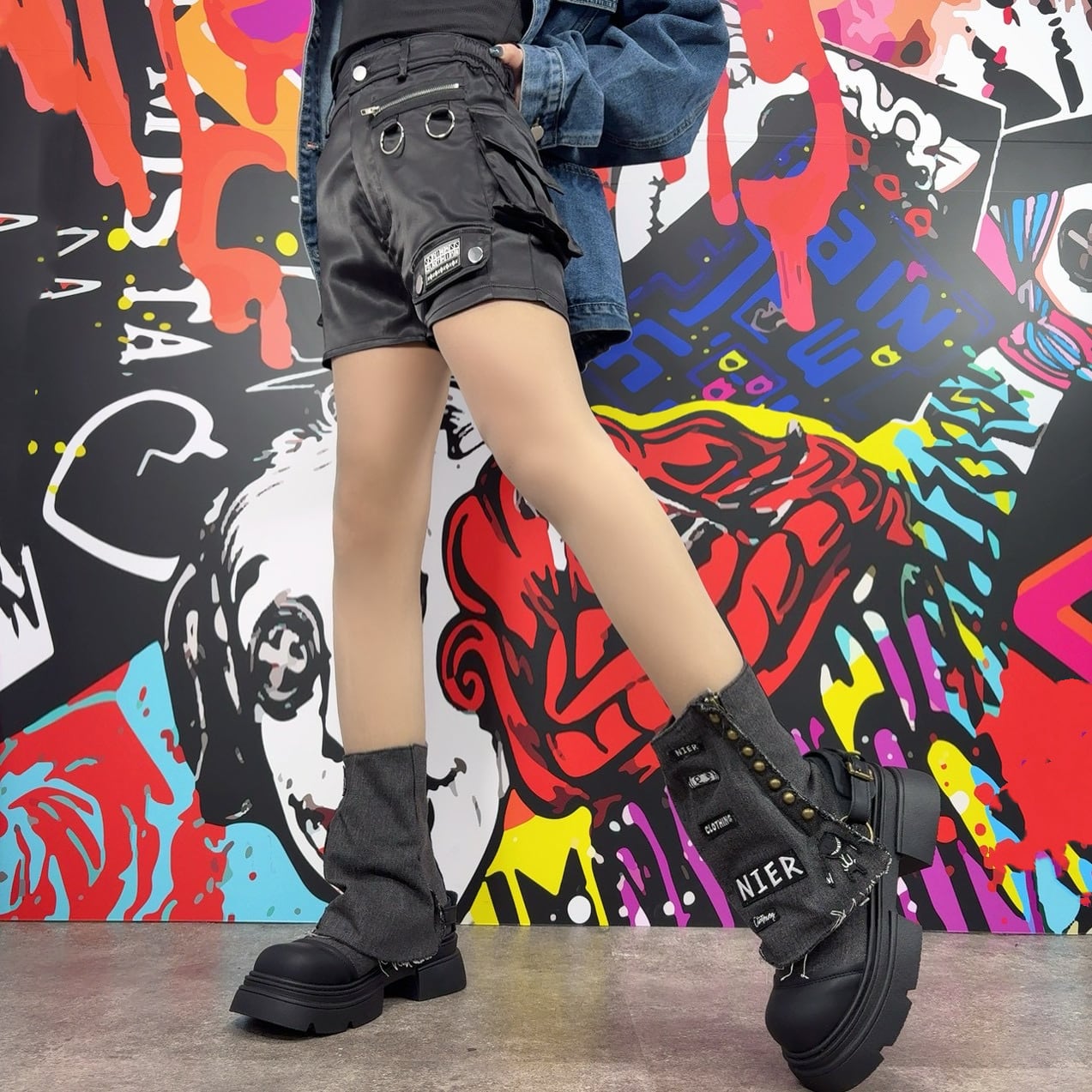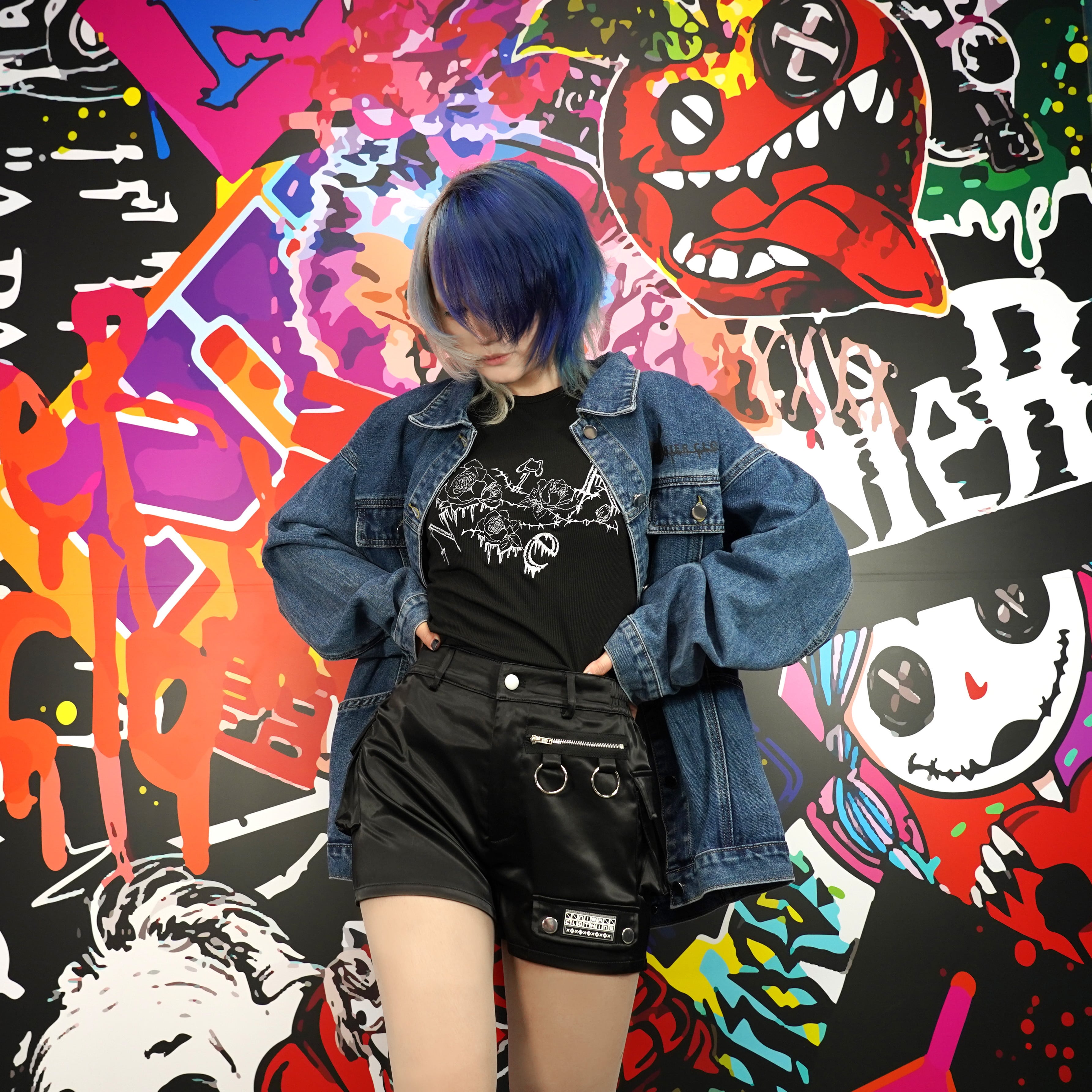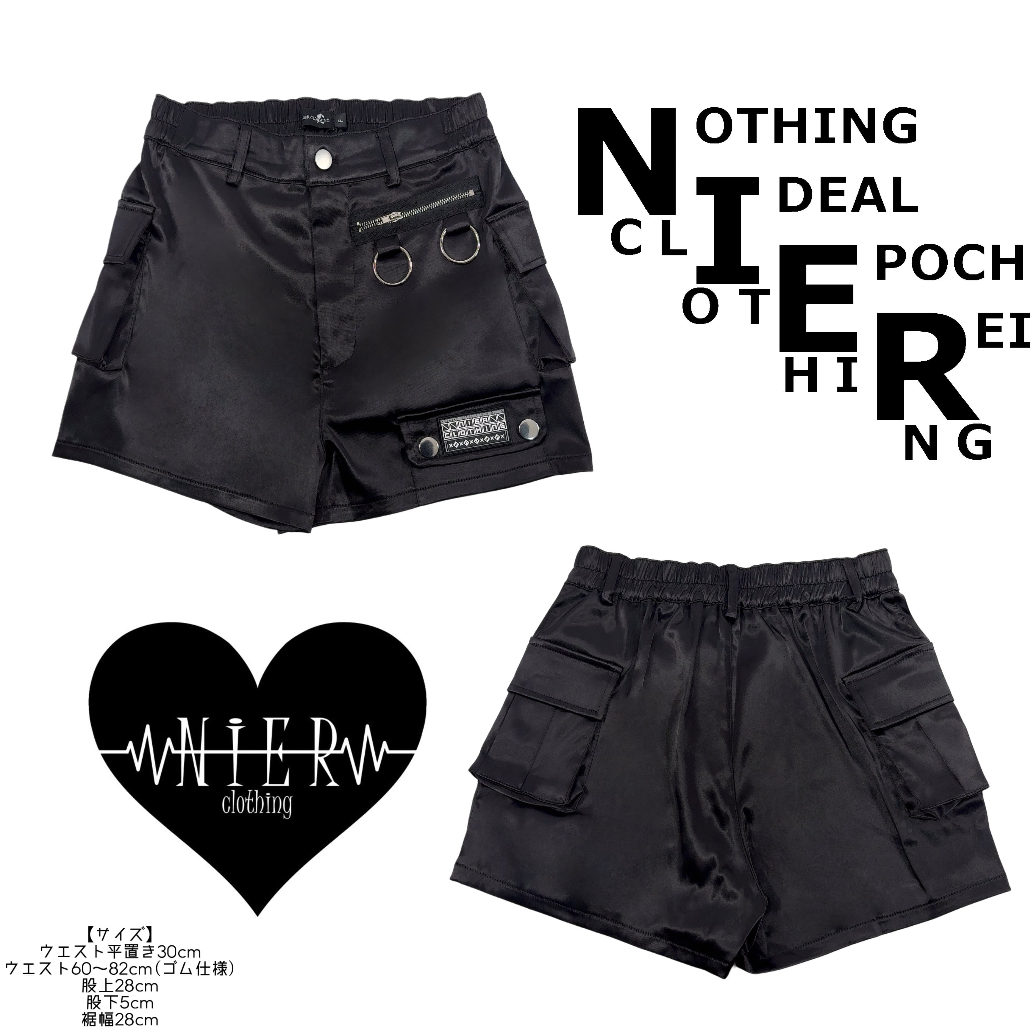 艶のあるブラック生地にメタルパーツが映え、どんなトップスとも相性抜群です。