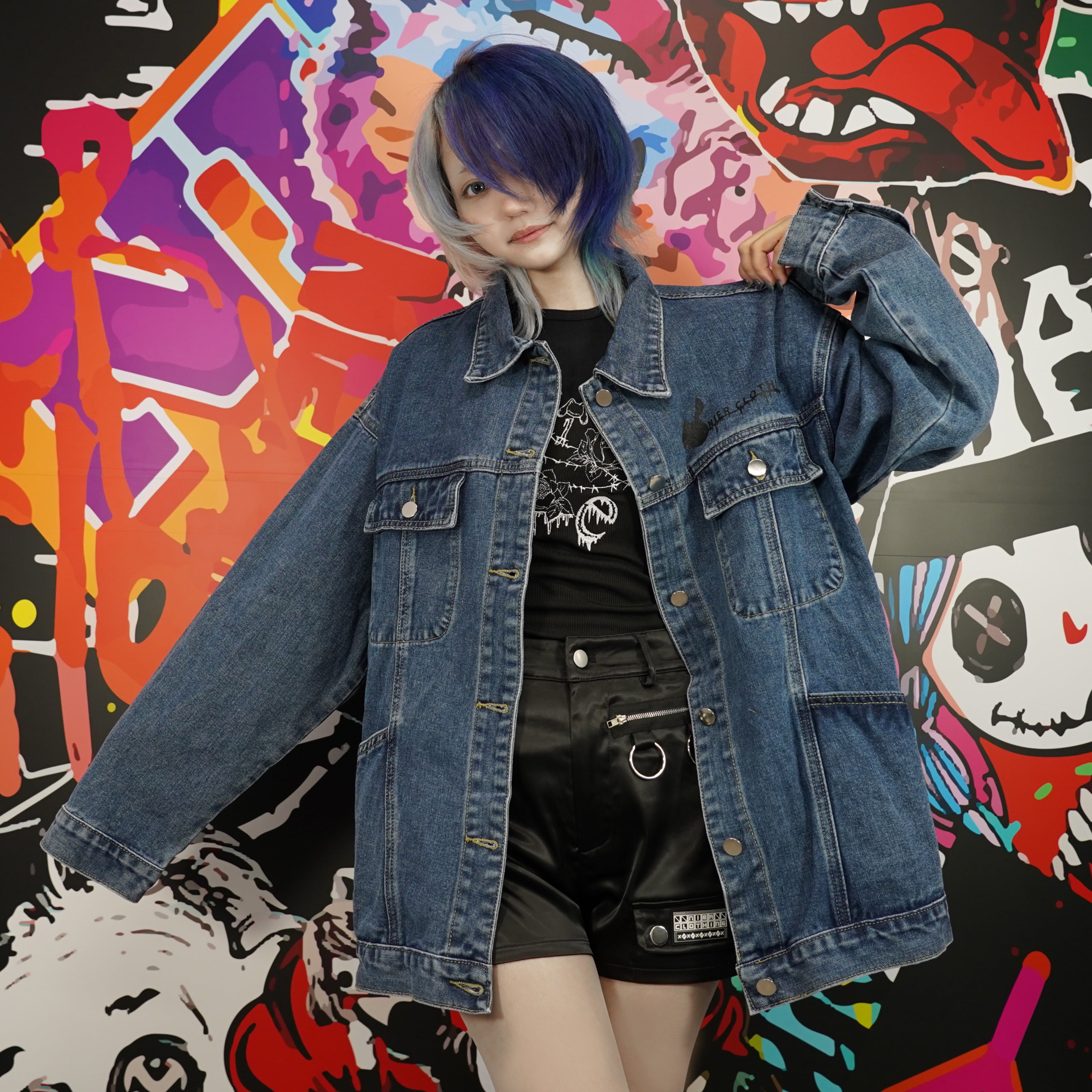 存在感のあるジッパーと2連リングがコーデのアクセントに。