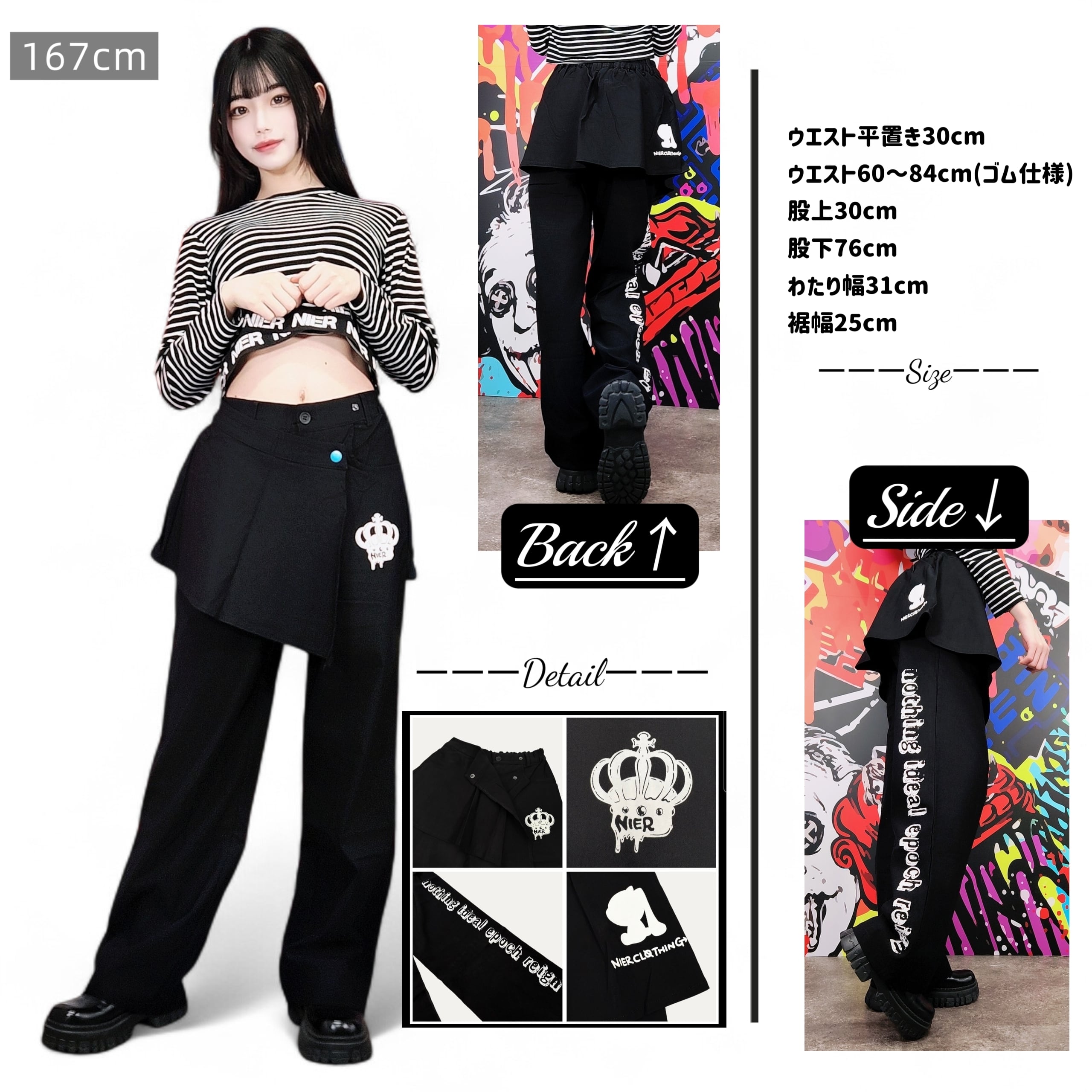 《先着66点限定60%OFF》UNISEX 巻きスカート風レイヤードパンツ【CROWN】
