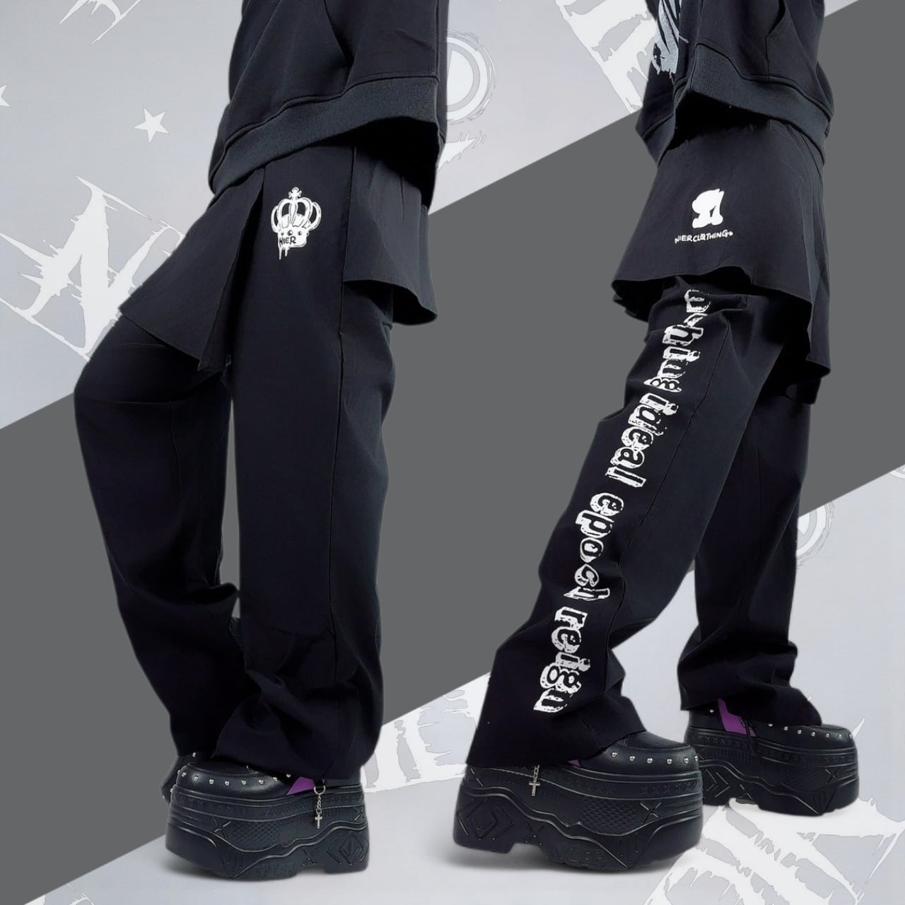 UNISEX 巻きスカート風レイヤードパンツ【CROWN】