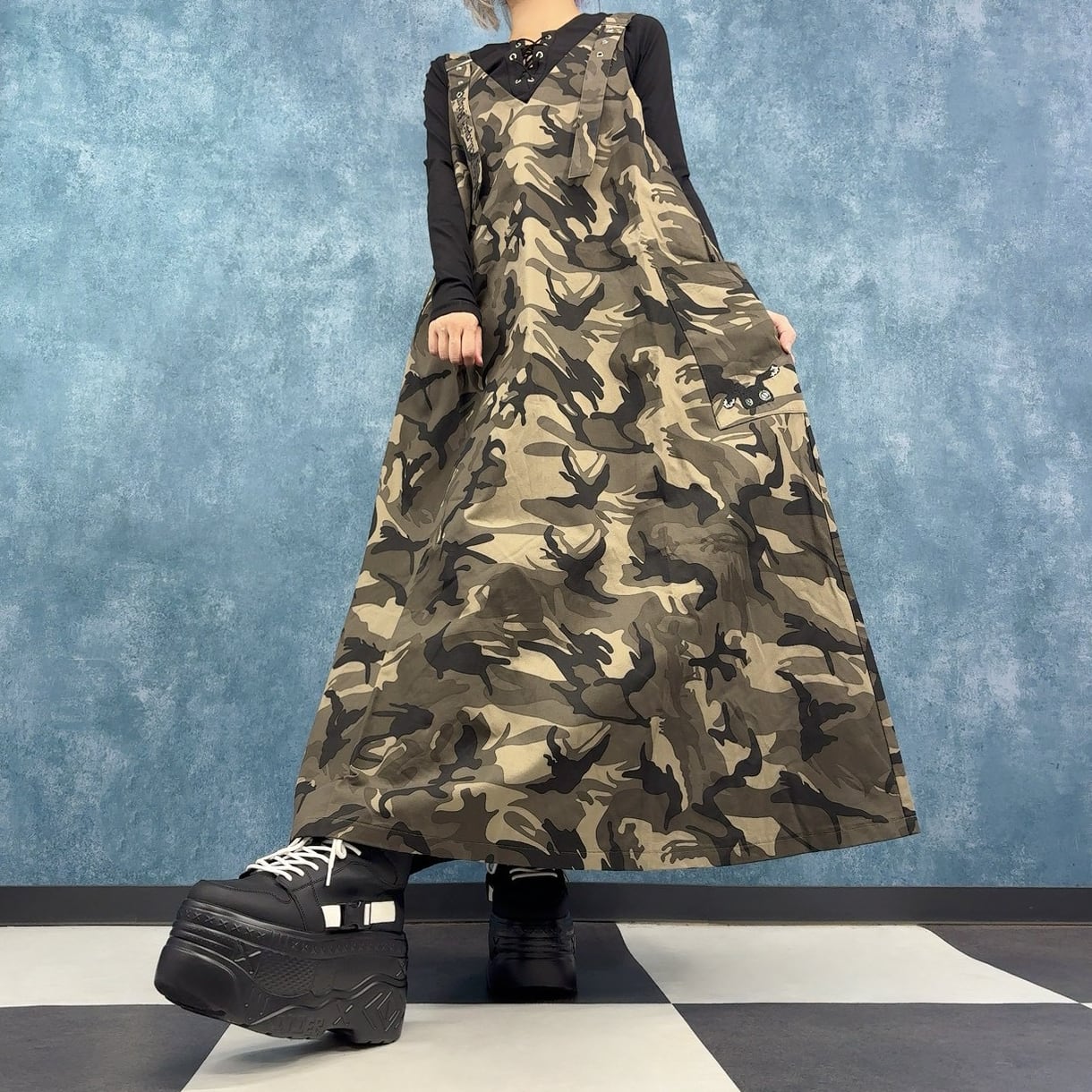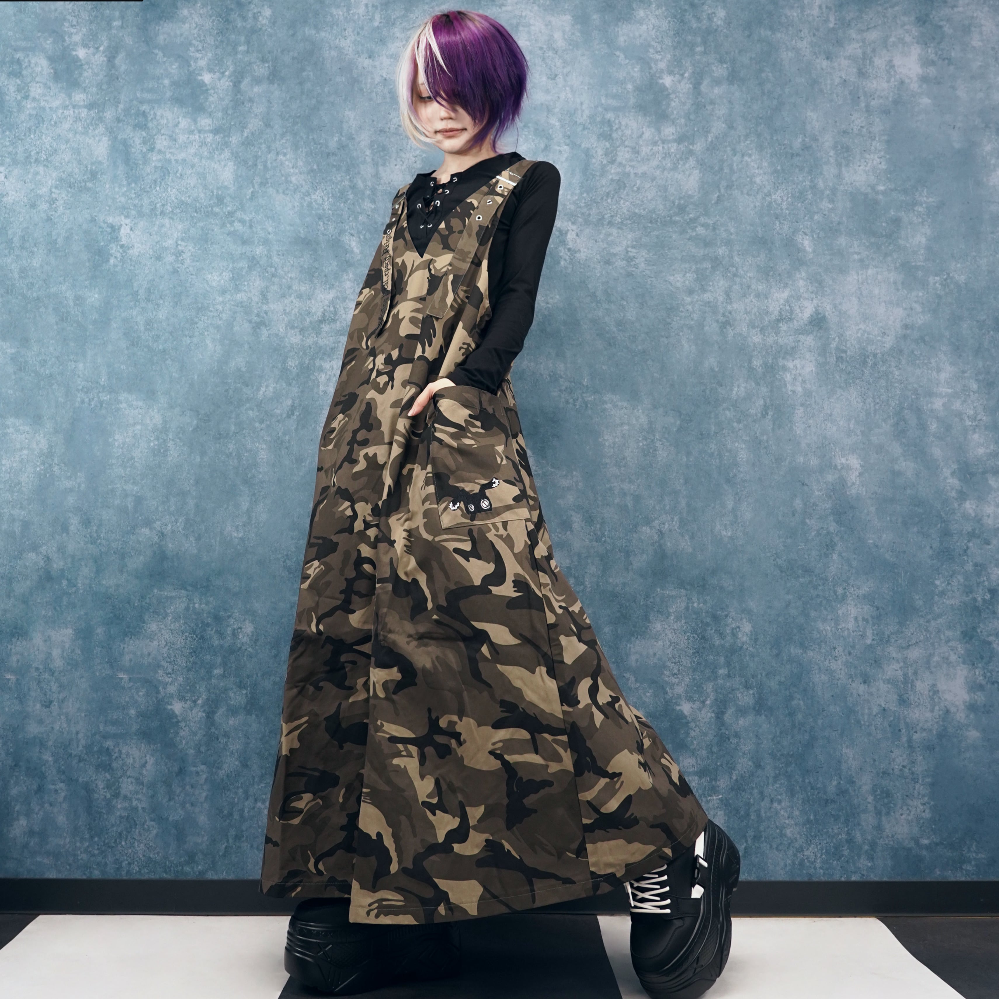 クールな迷彩柄でコーデの主役になるジャンパースカートが新登場。