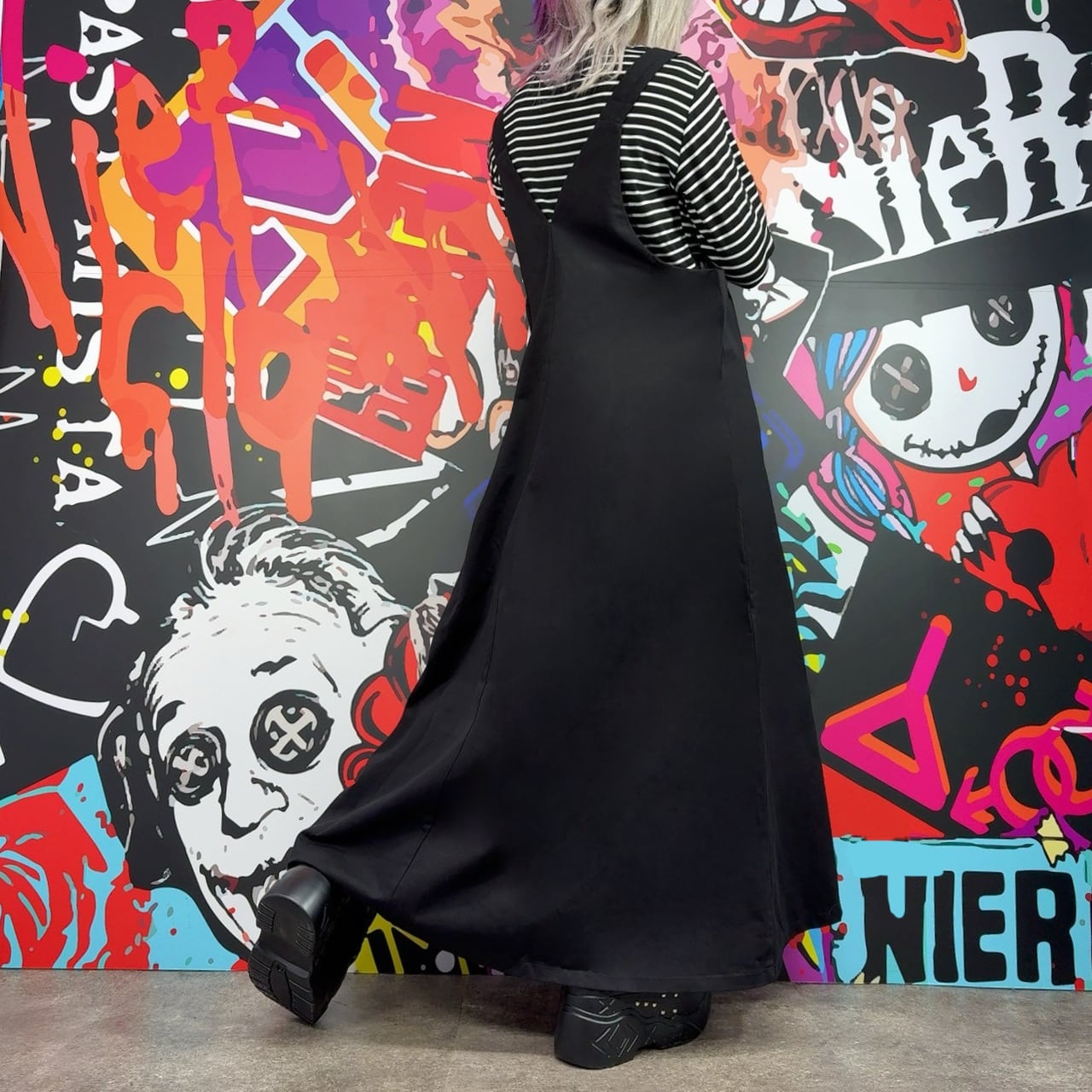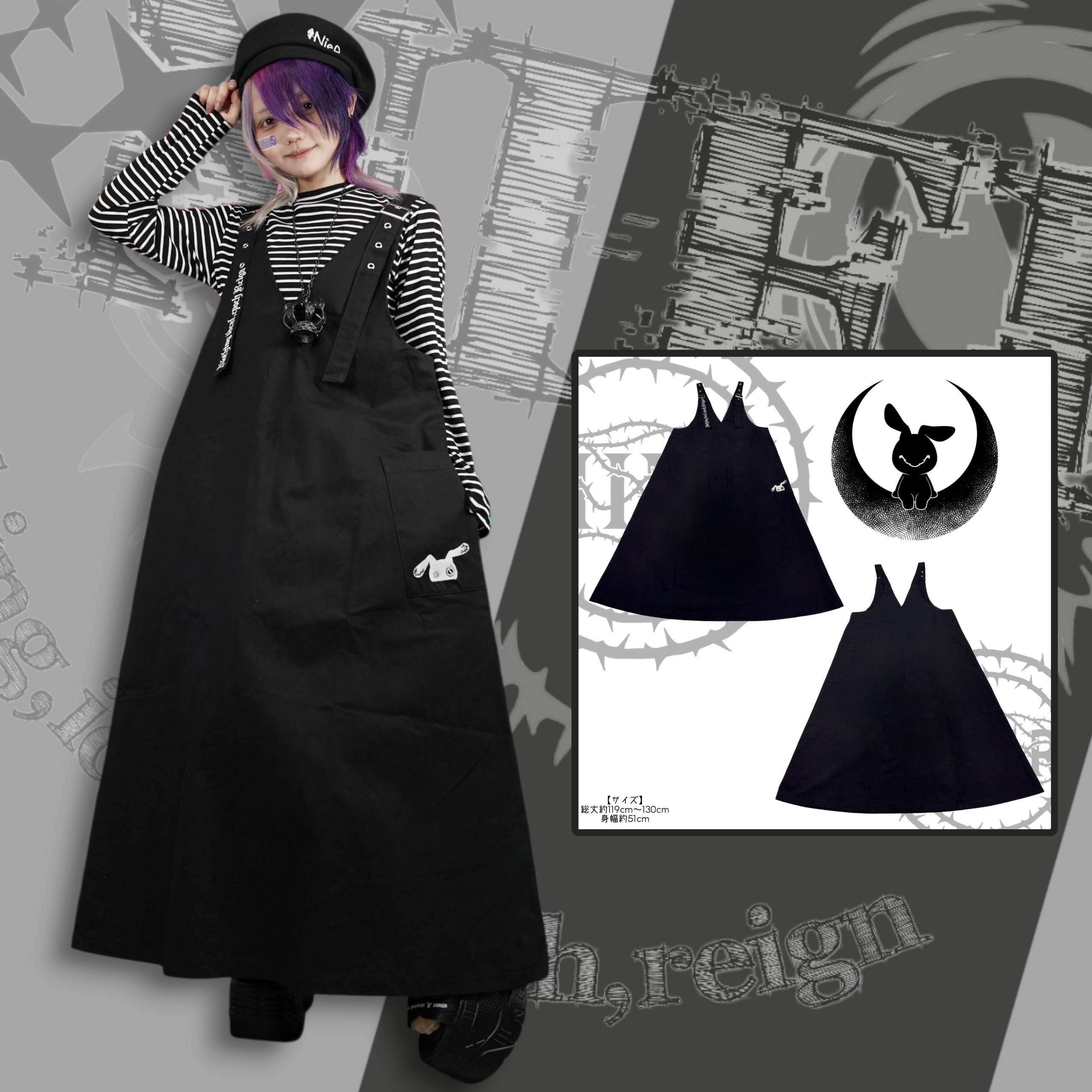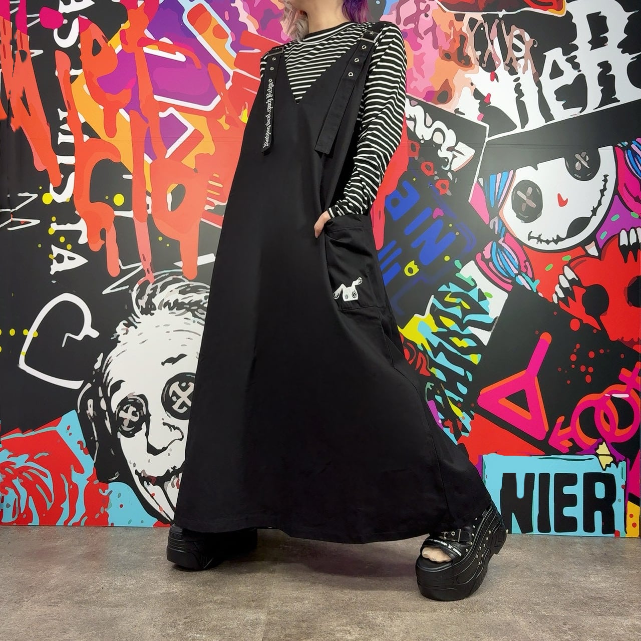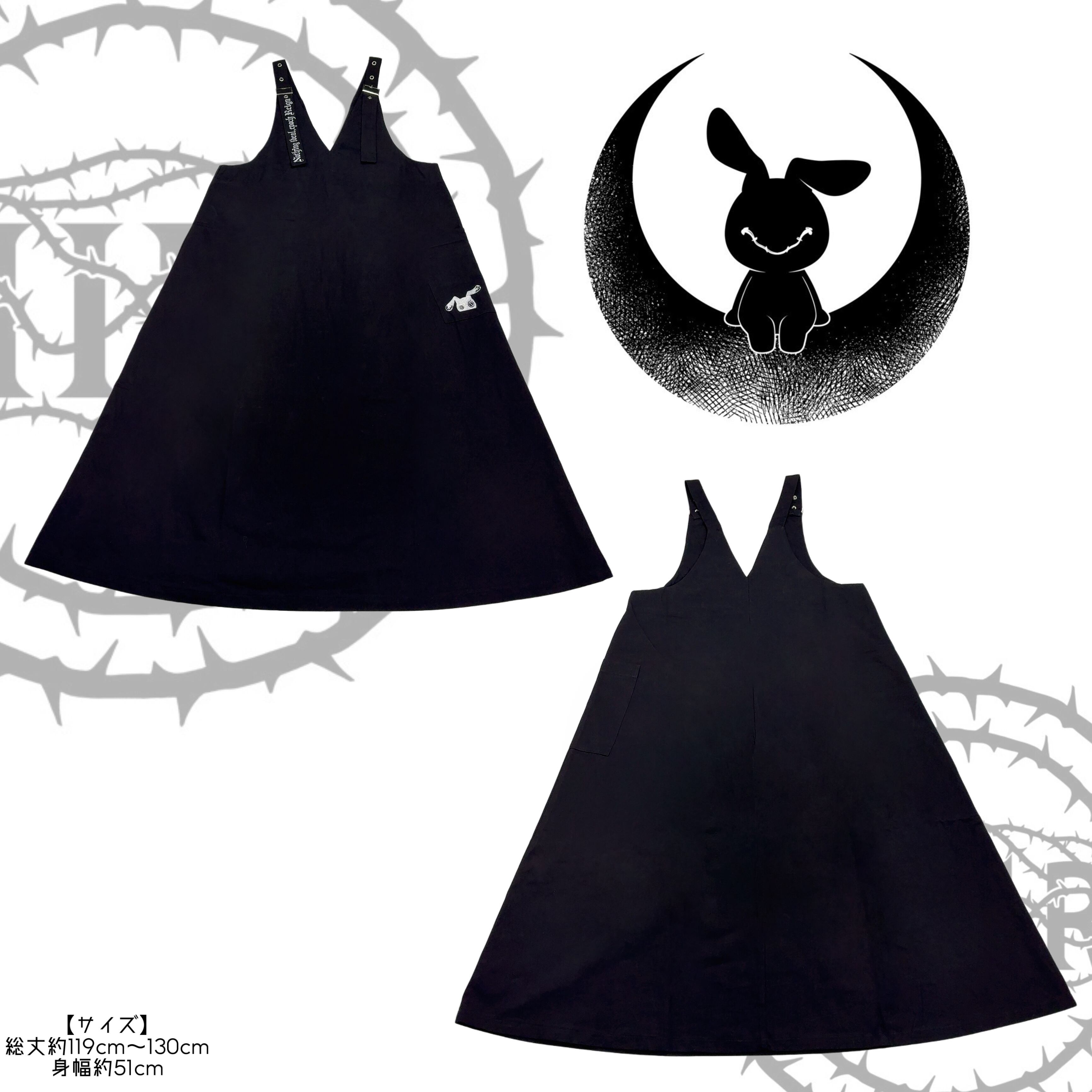 刺繍入りBLACK A-LINE JUMPER DRESS