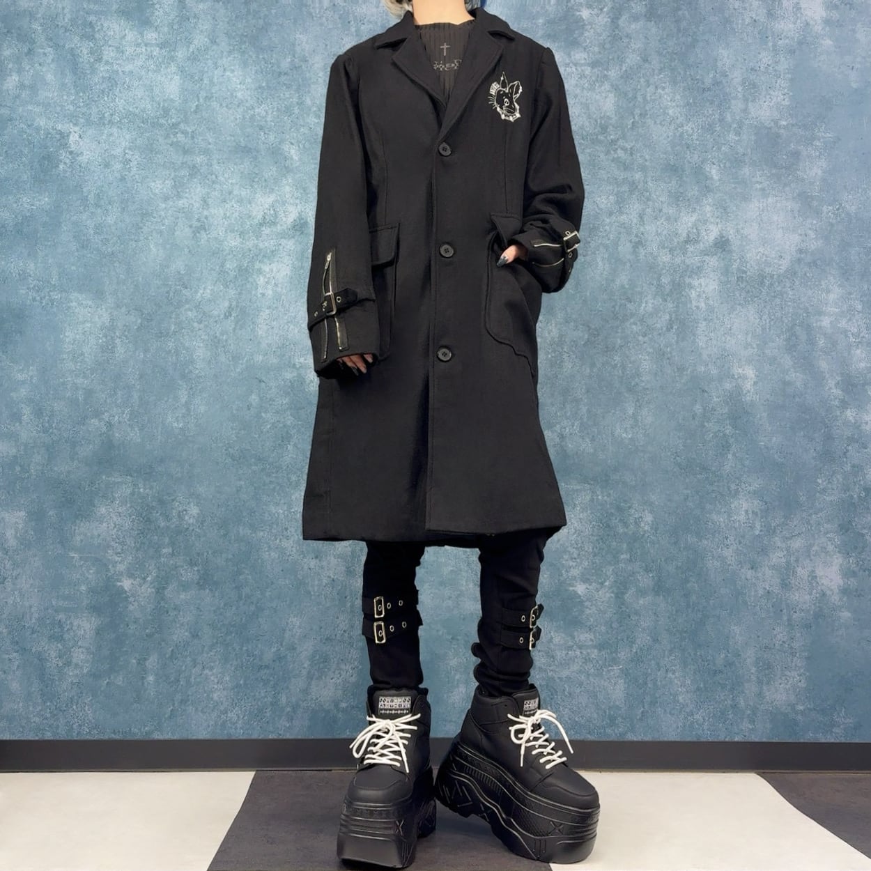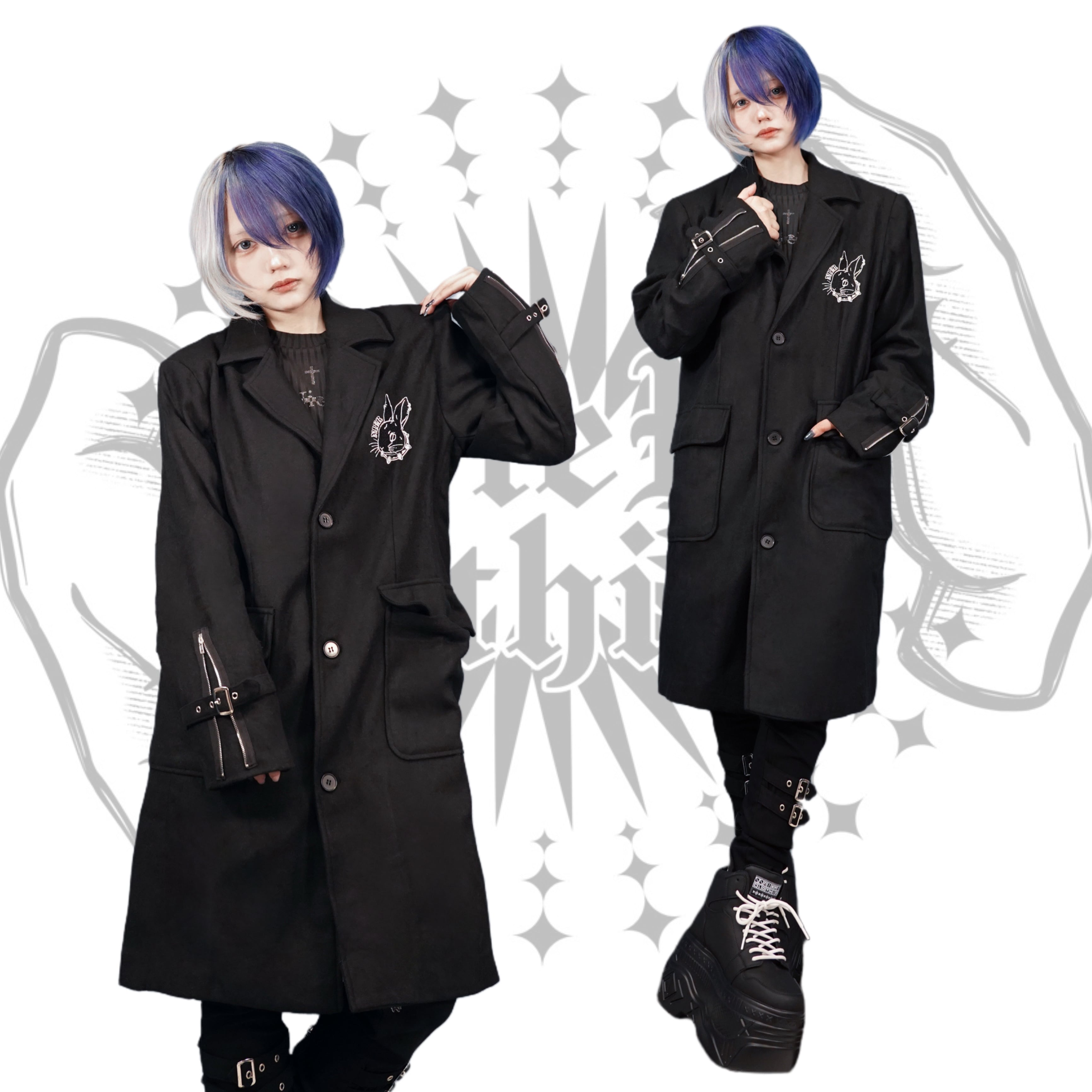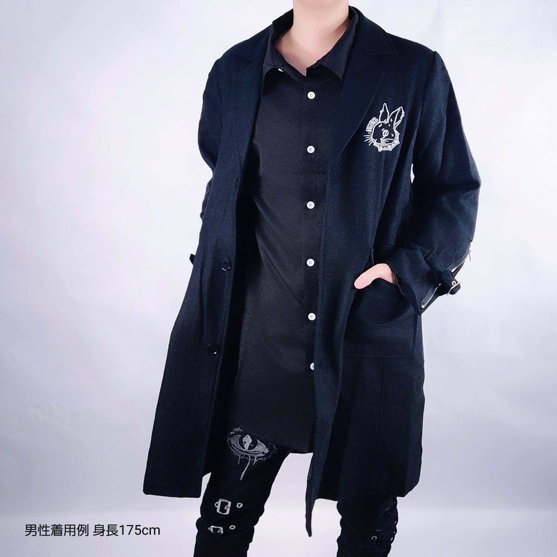 《先着50点争奪55%OFF》リングベルト装飾付きロングテーラードコート【RABBIT刺繍】