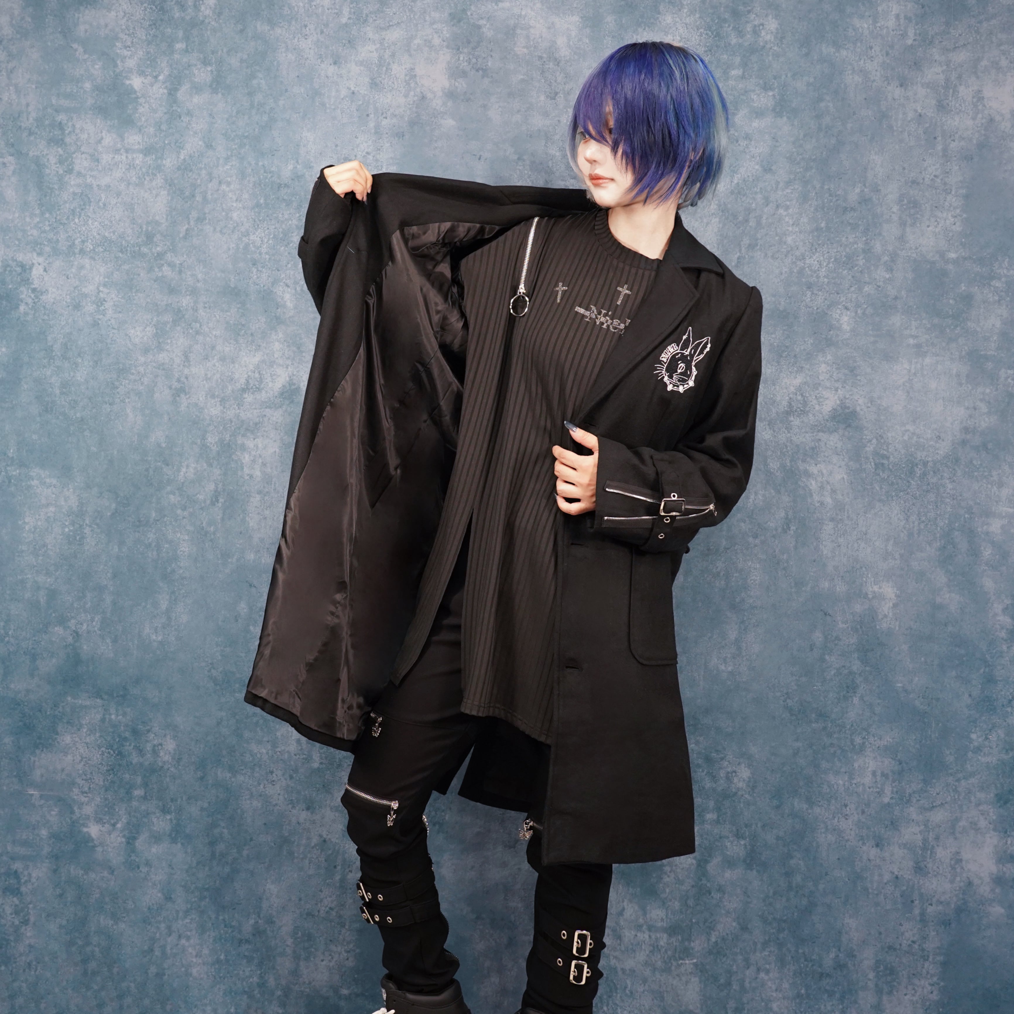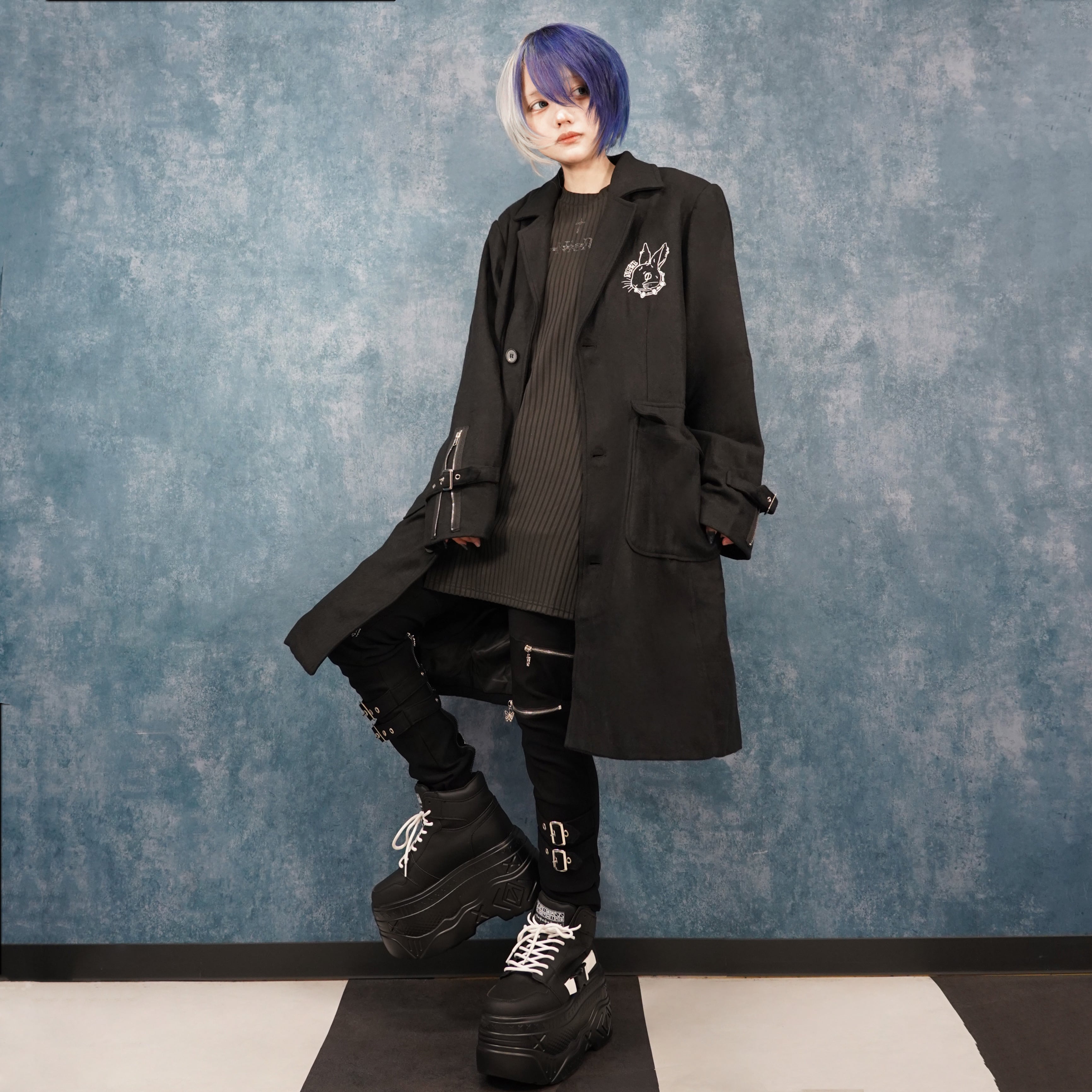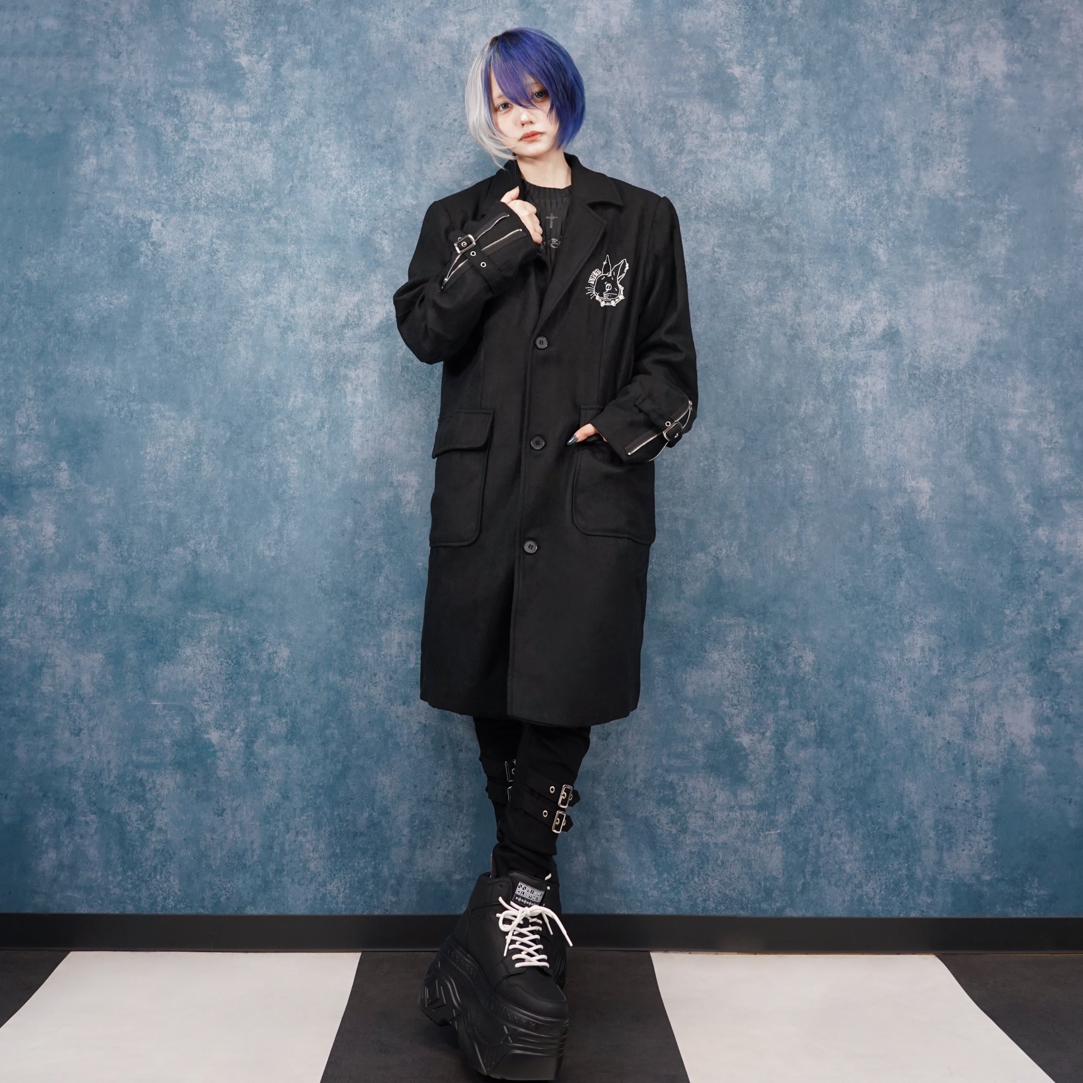 《先着50点争奪55%OFF》リングベルト装飾付きロングテーラードコート【RABBIT刺繍】