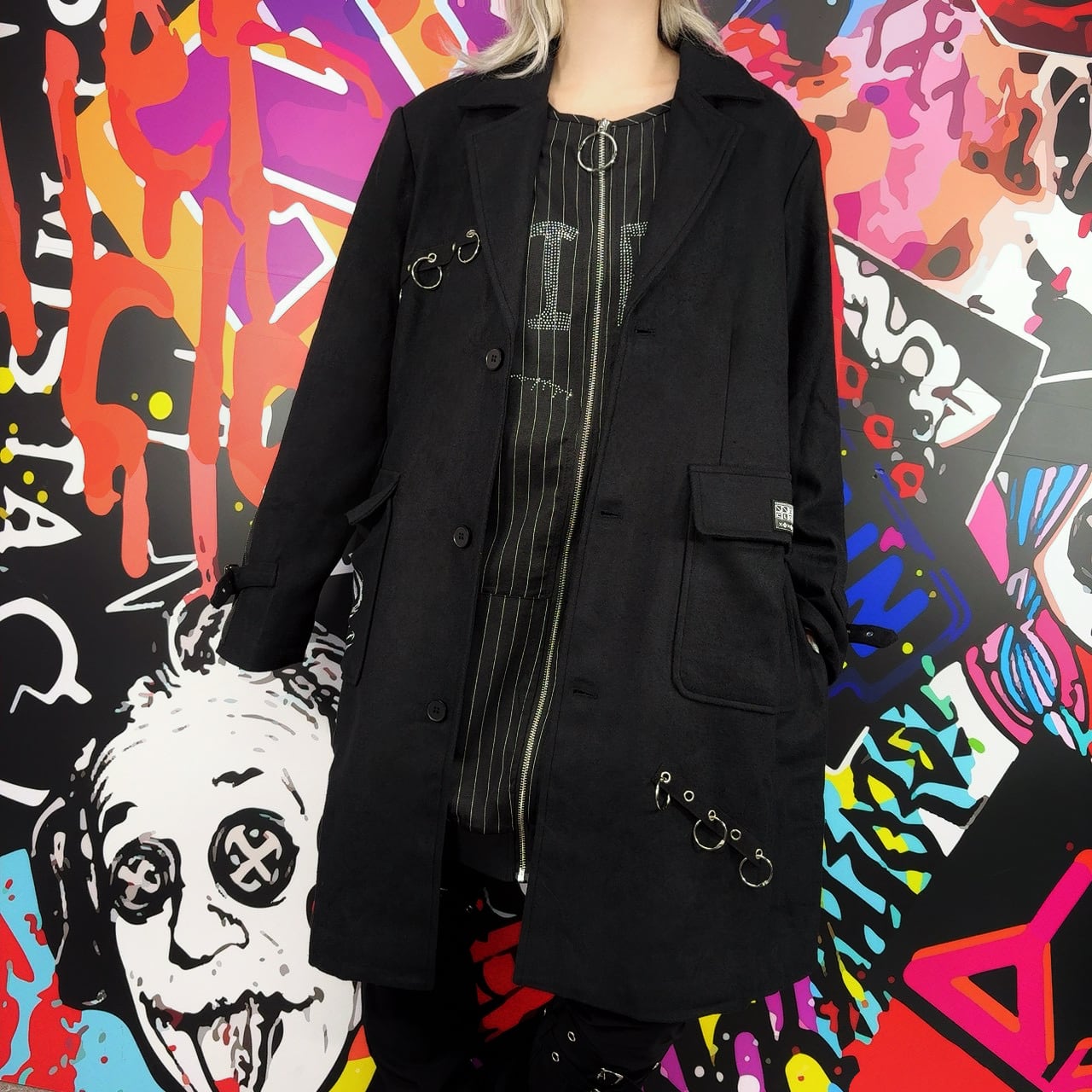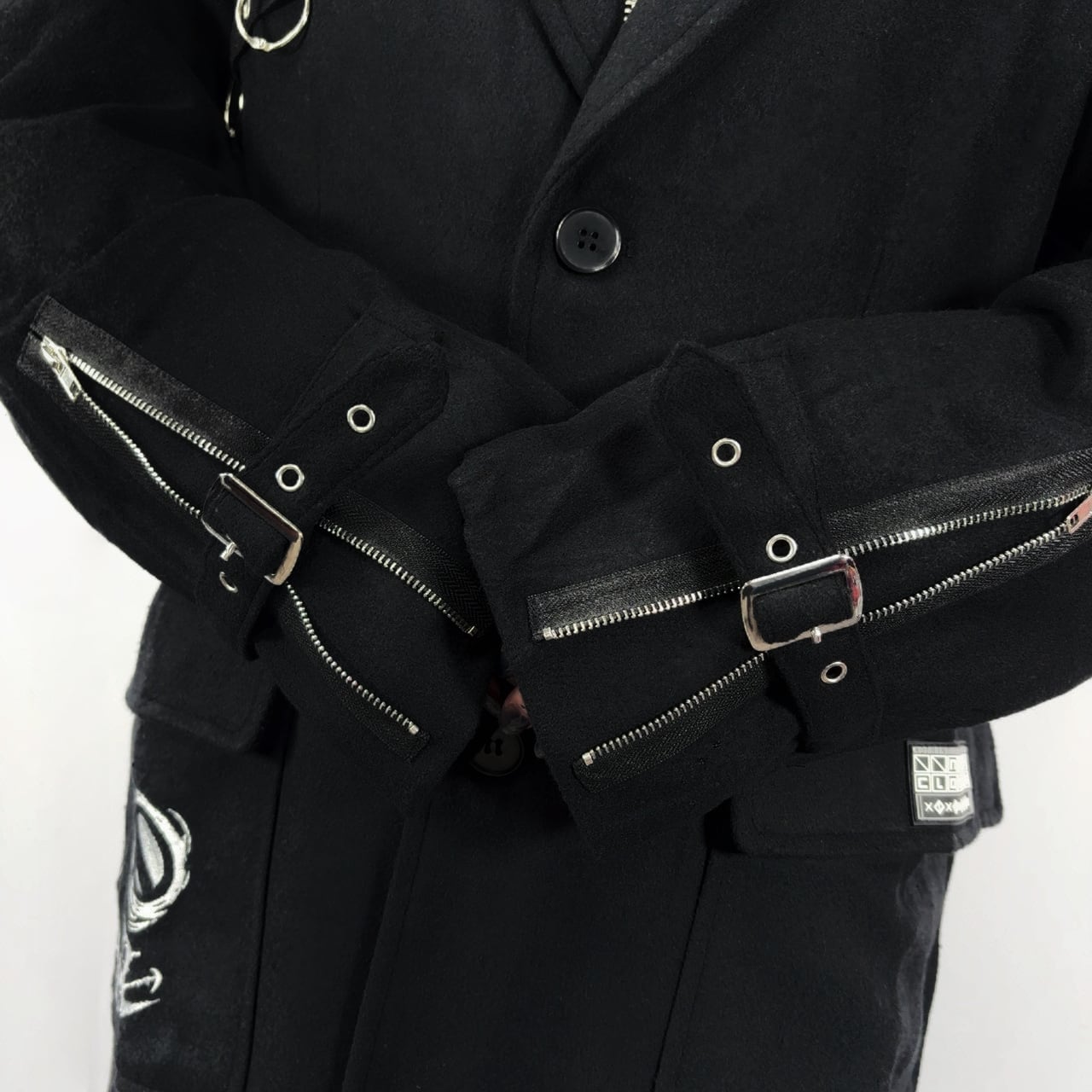 フロントから袖口、裾にかけて散りばめられたメタルリング・ベルト・ZIPパーツが存在感抜群☆
