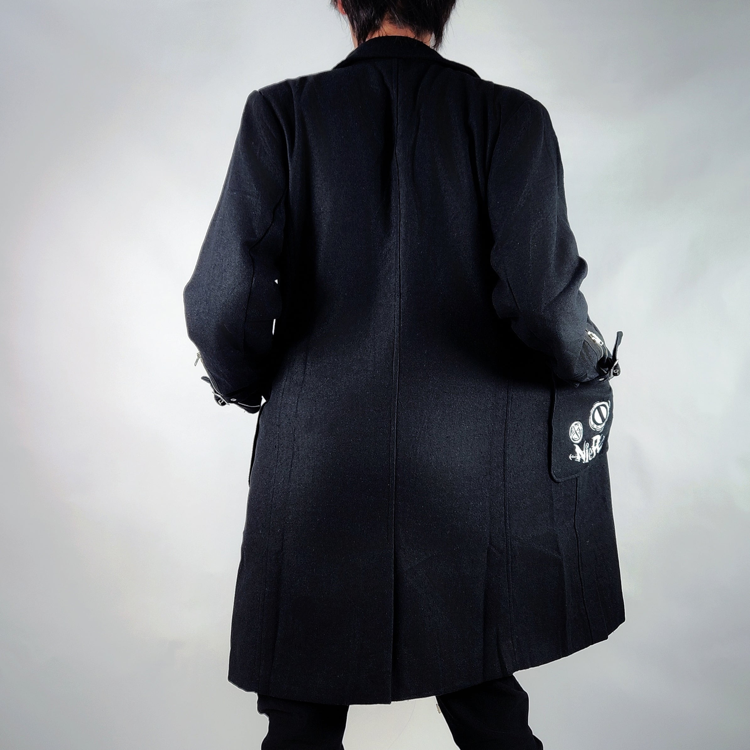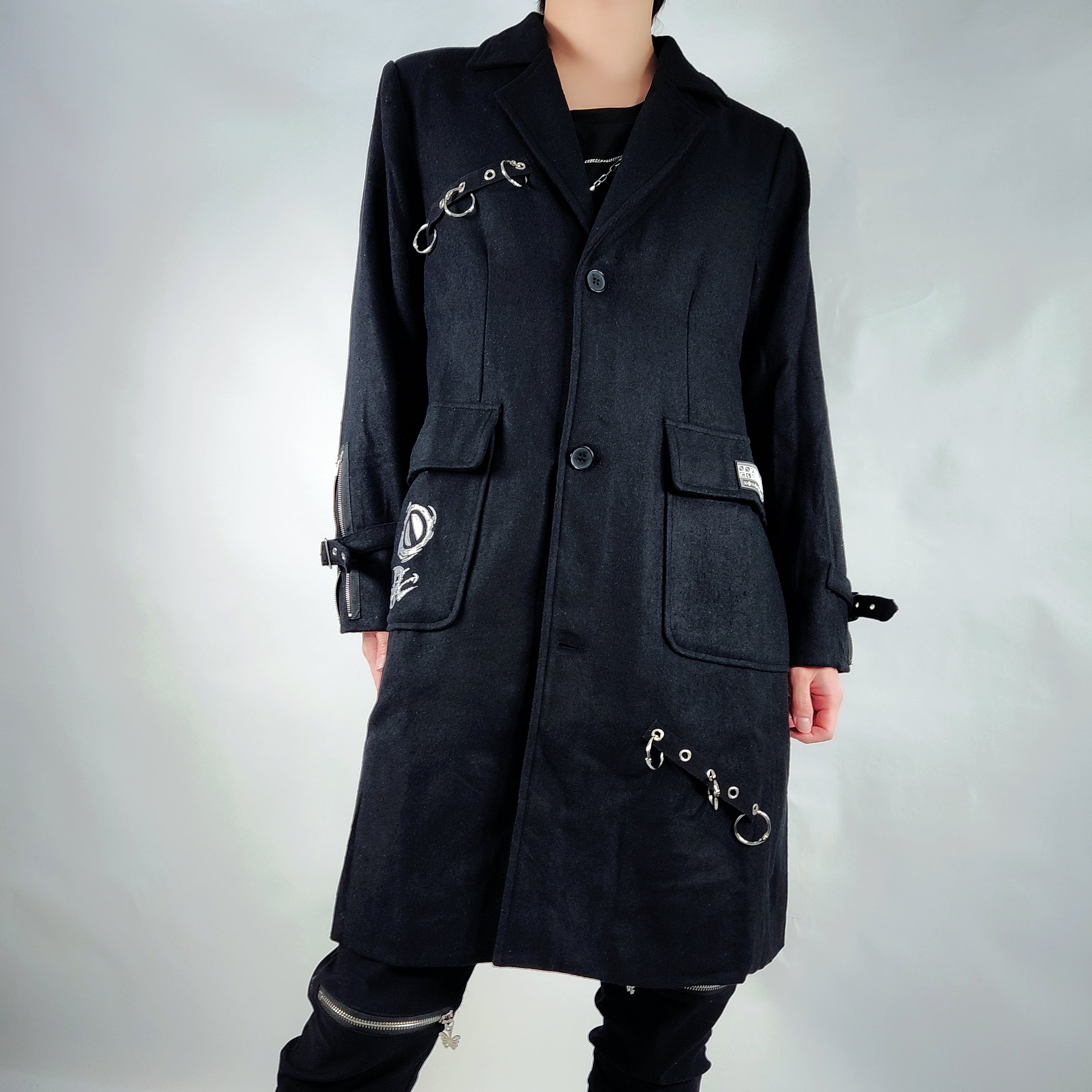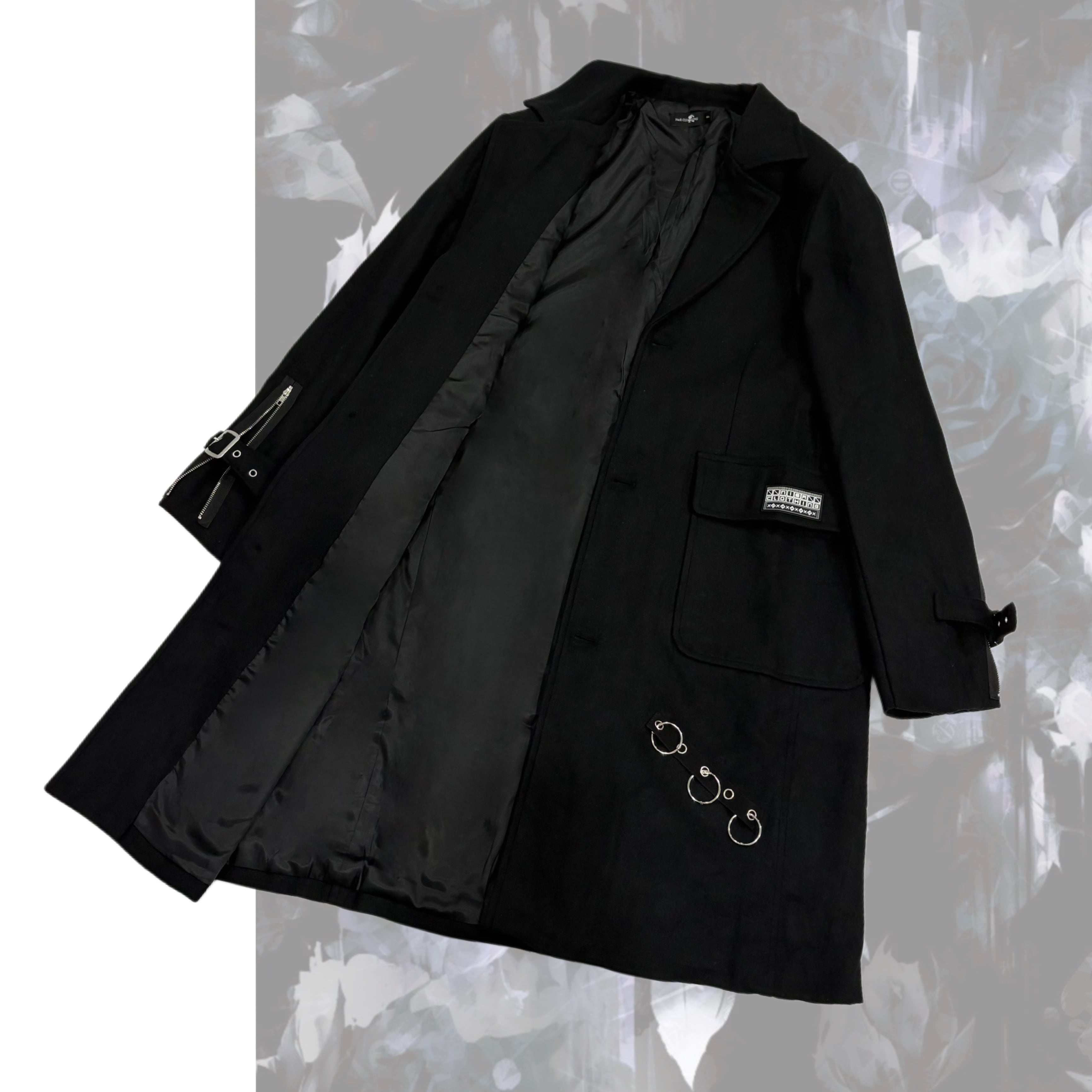 《✨月初めSTART SALE✨》リングベルト装飾付きロングテーラードBLACKコート