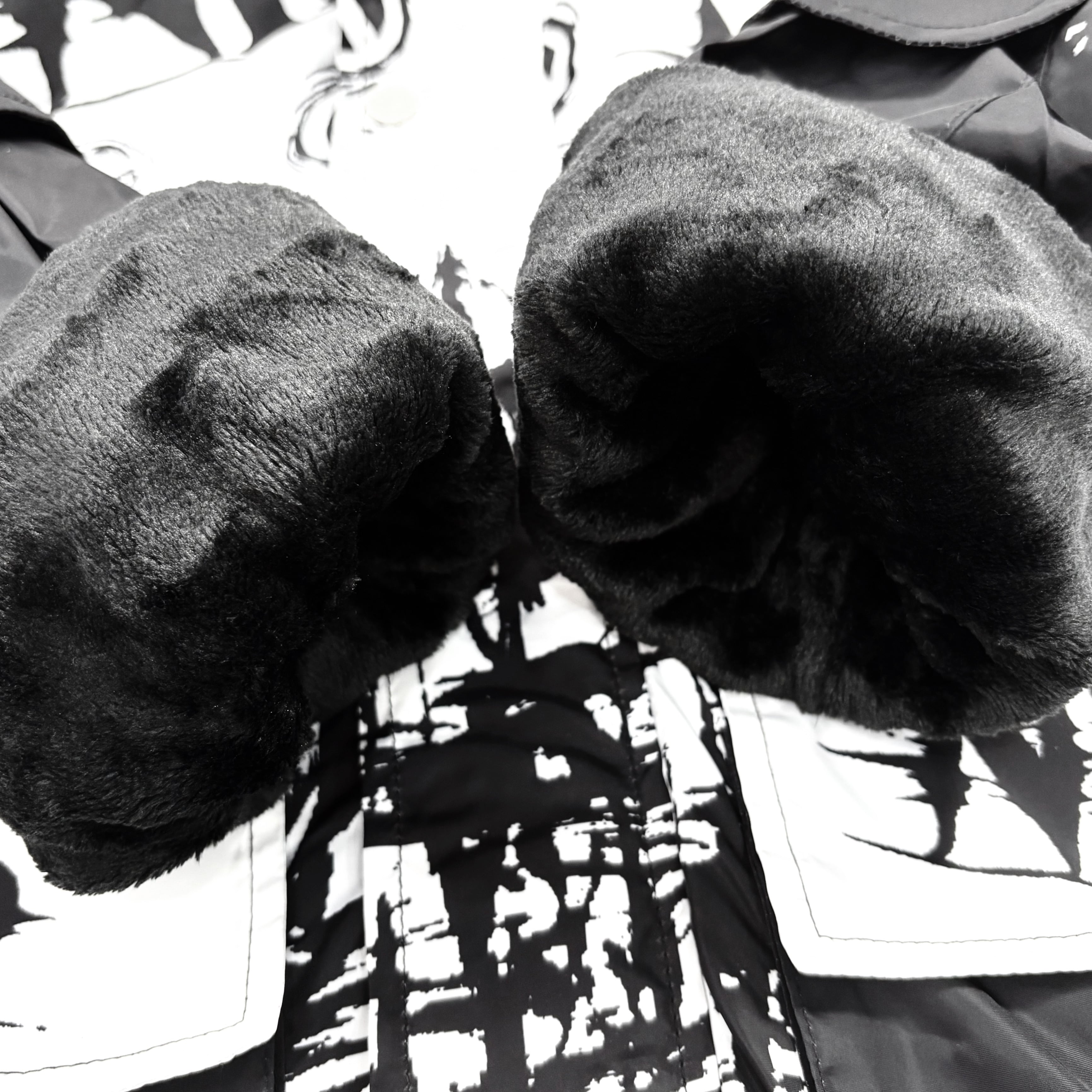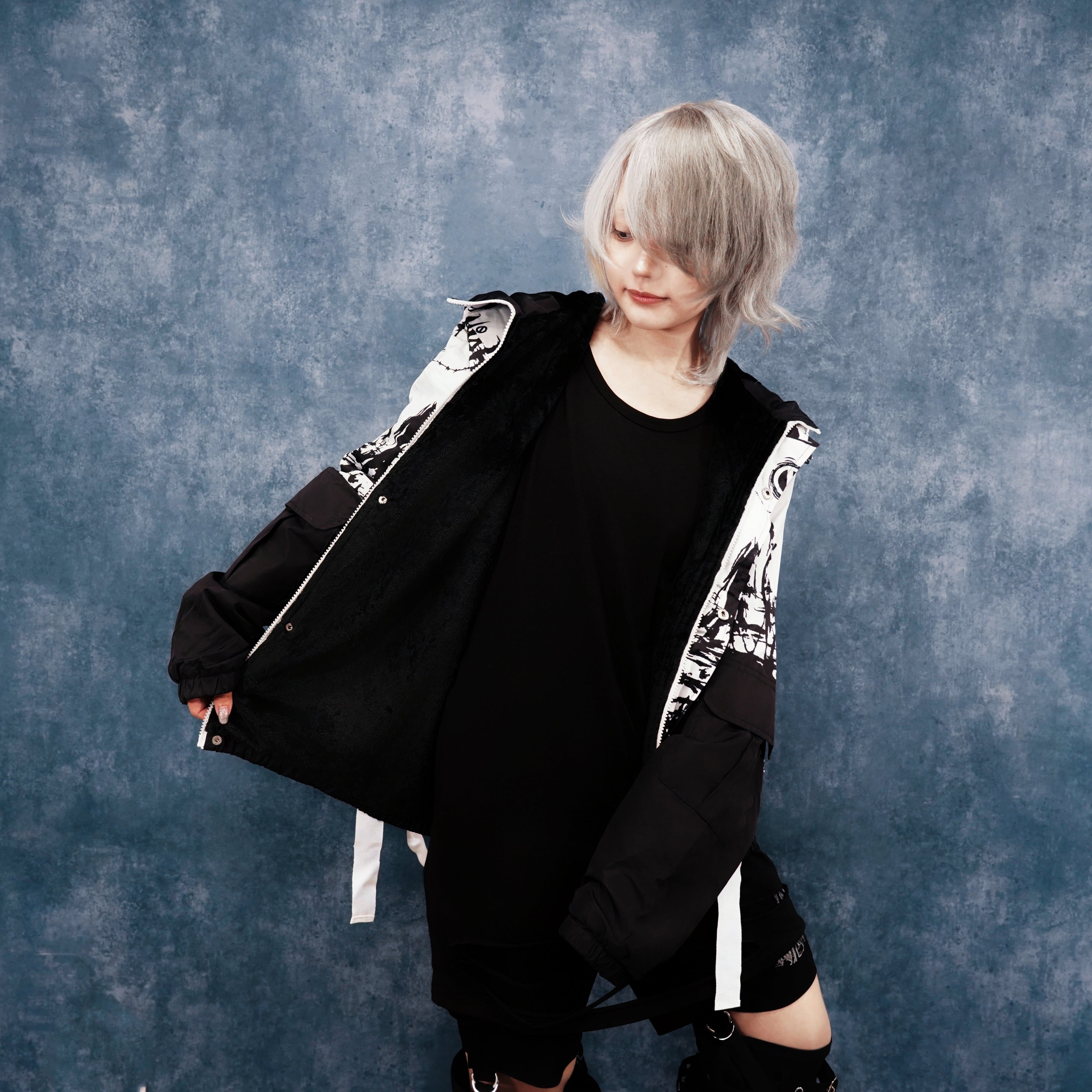 モノトーンのアートグラフィックが目を惹く、NIERオリジナルデザインの防寒アウターです。