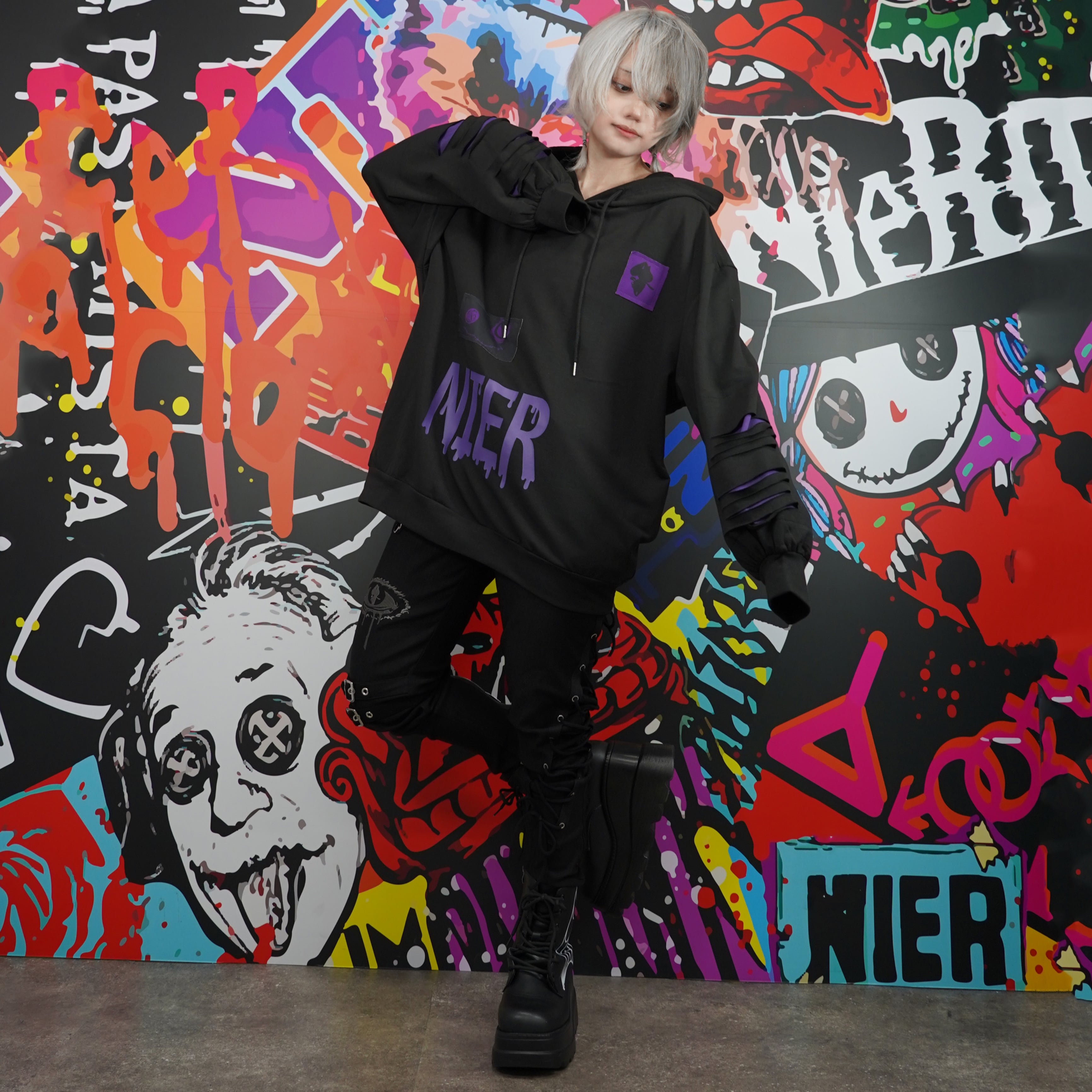 切り裂かれたようなスリットスリーブデザインが印象的なストリートモードパーカーが登場。