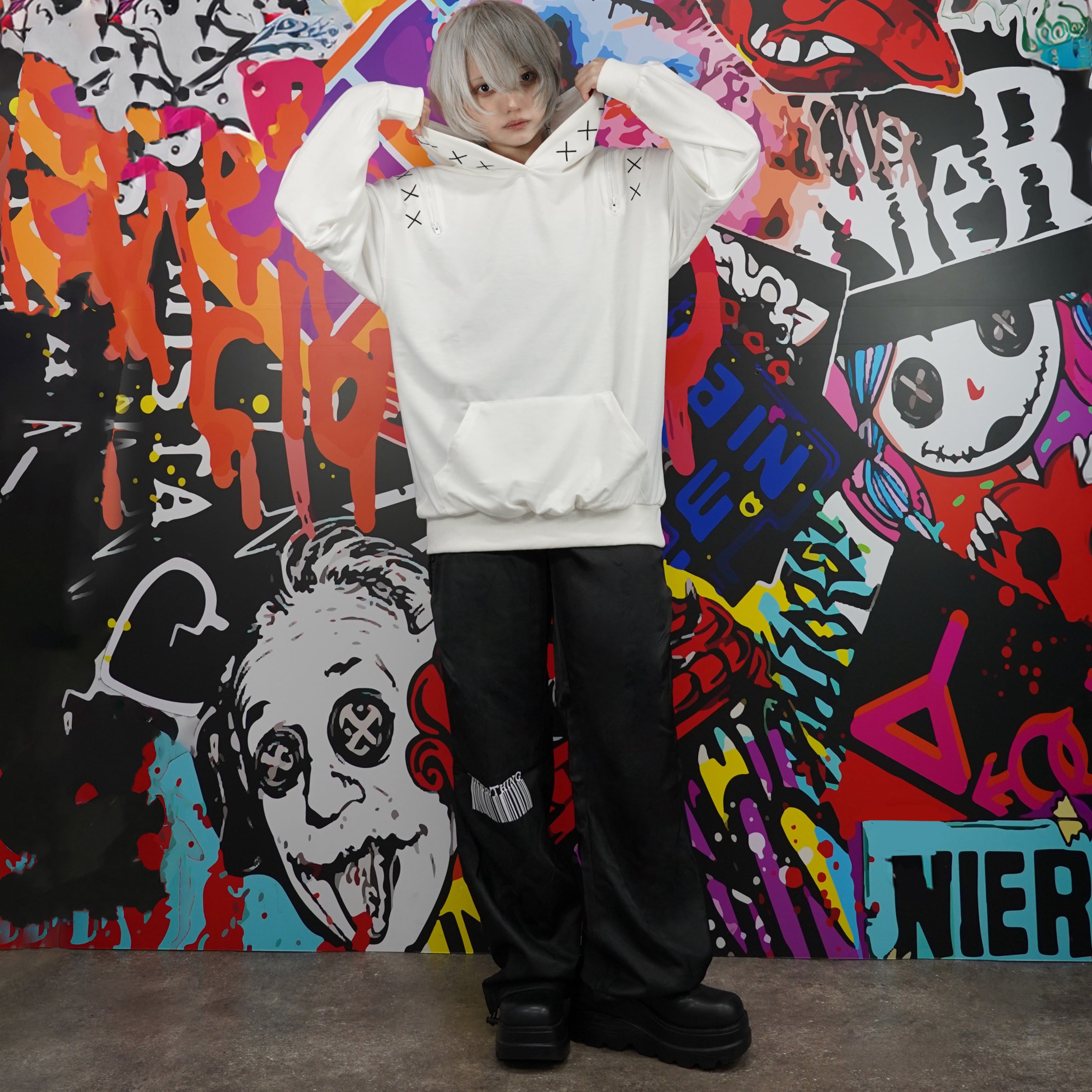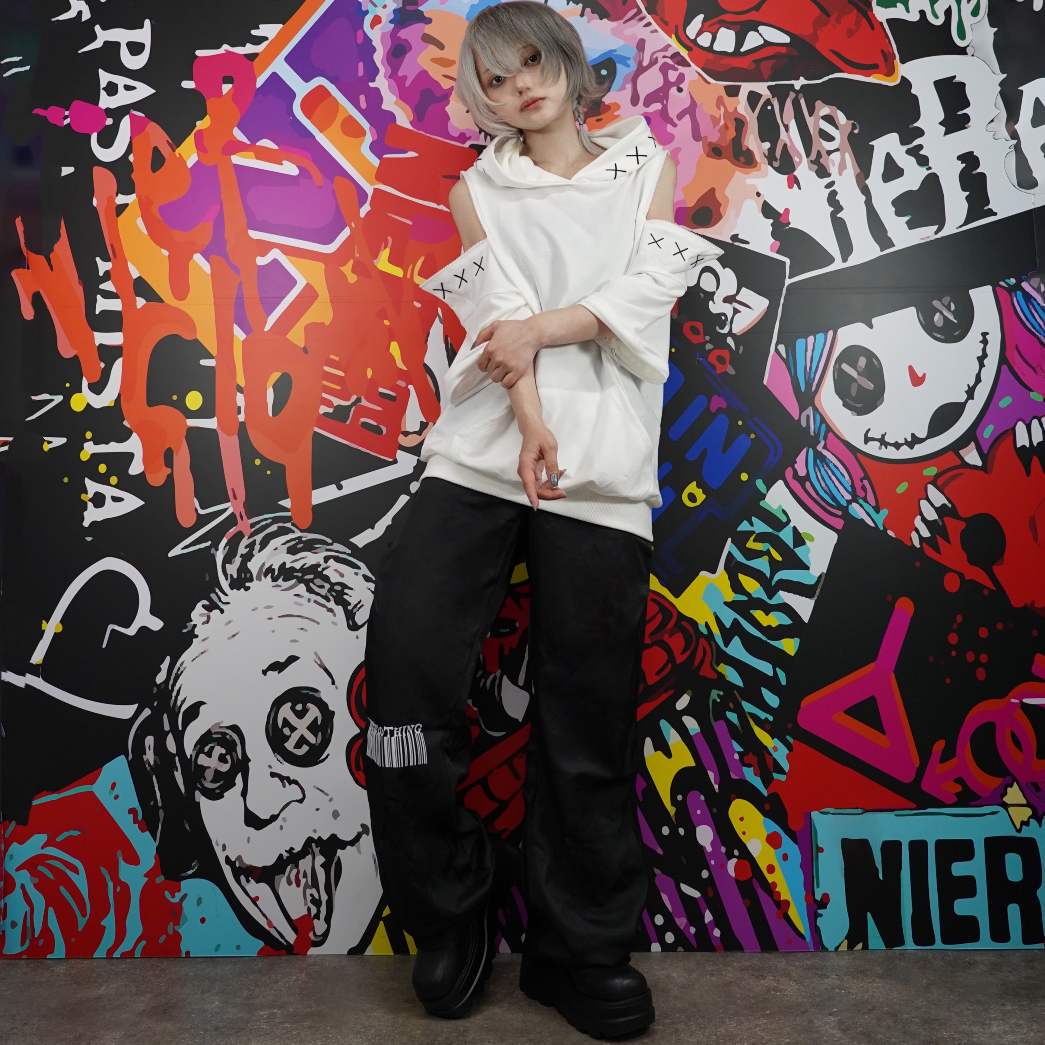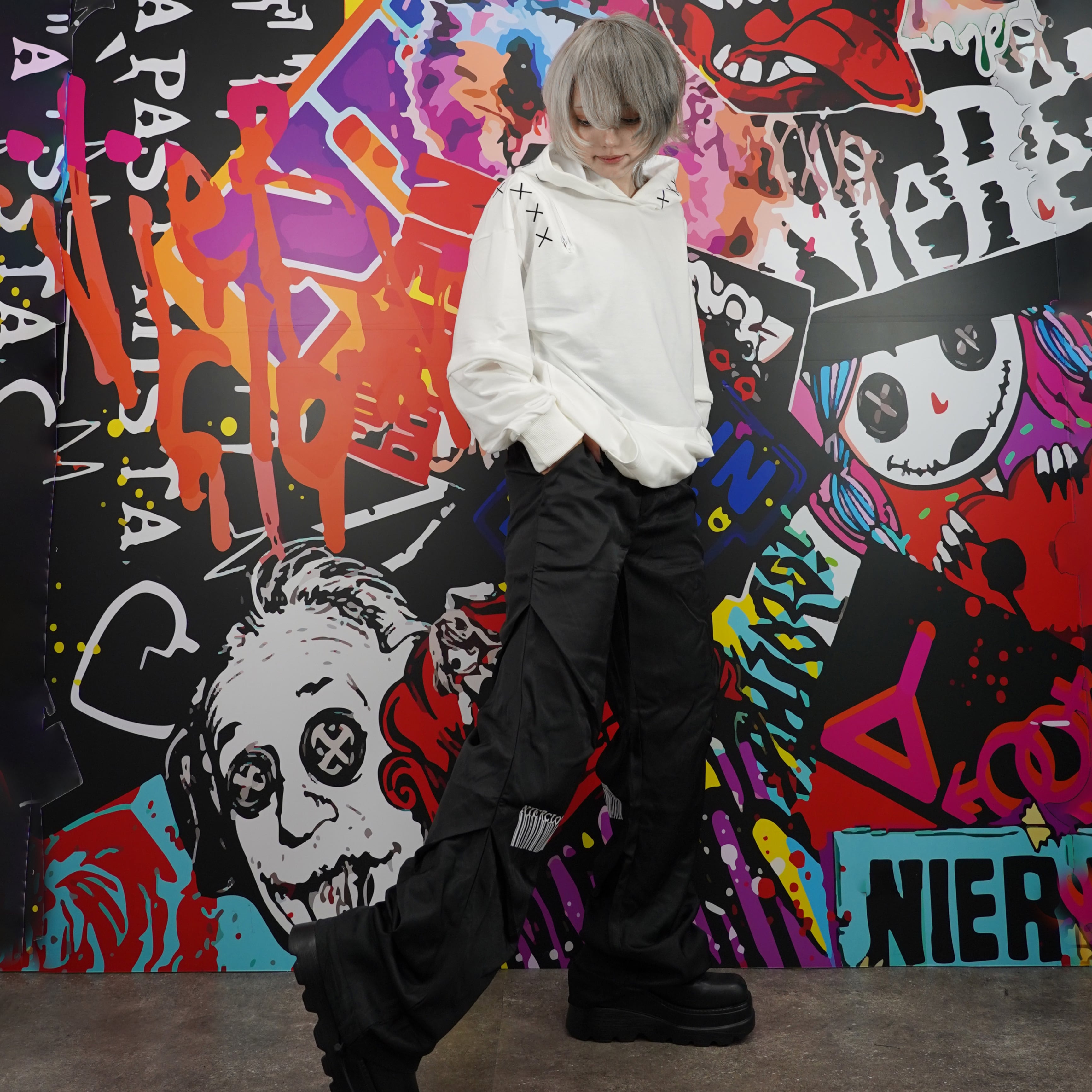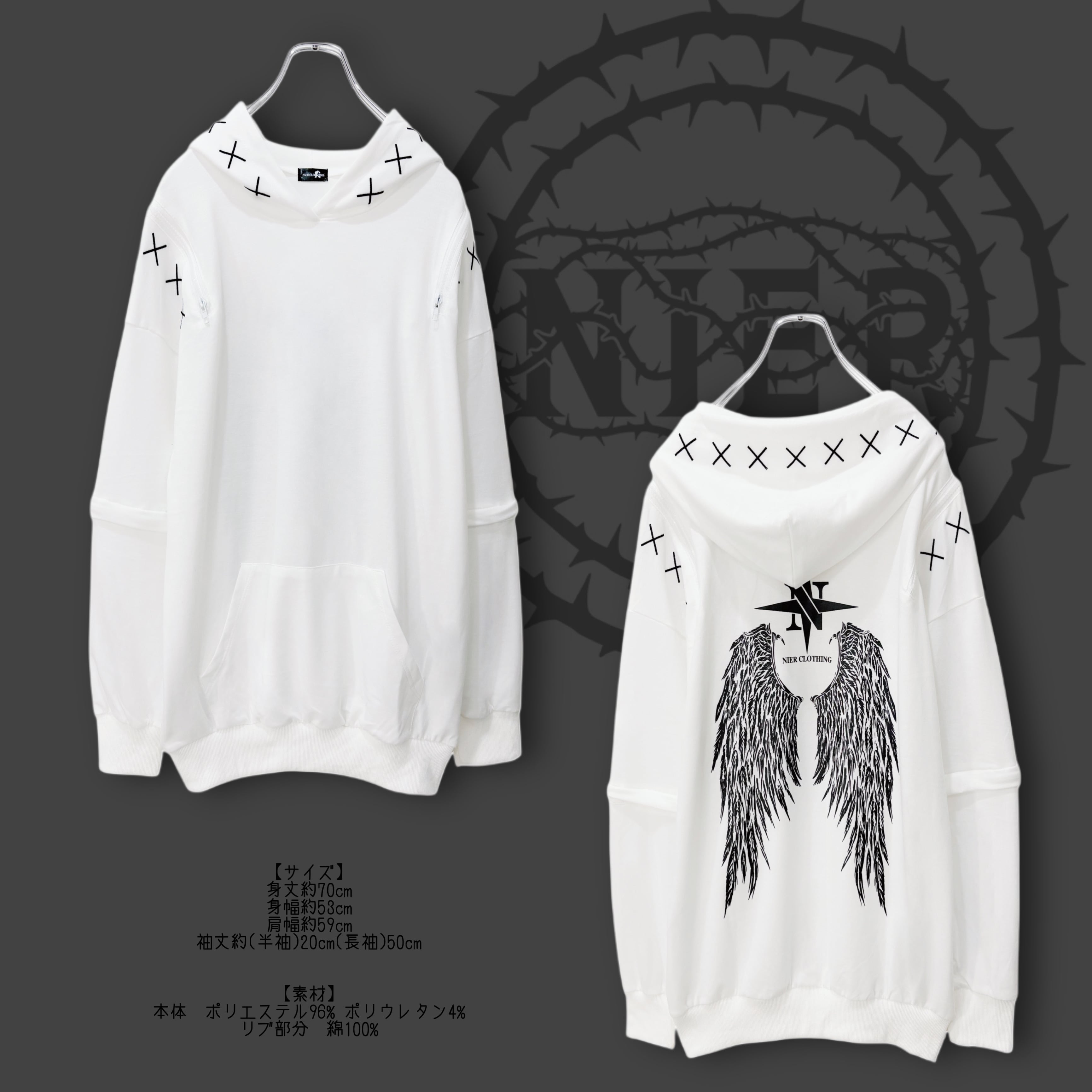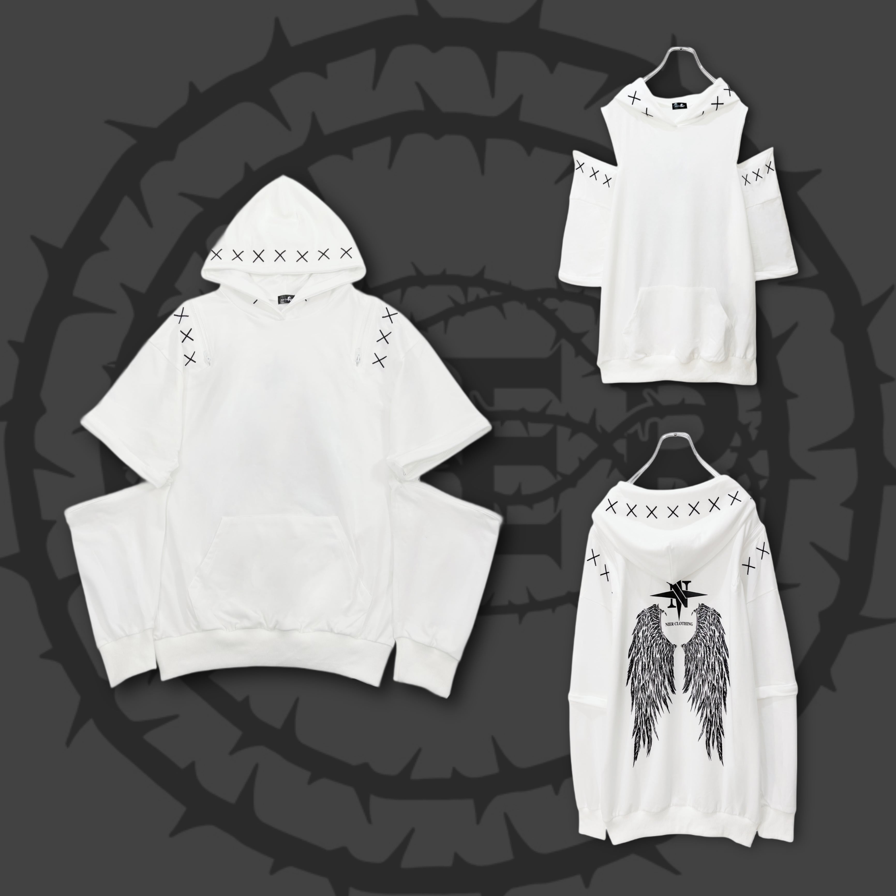 WING PRINT 3WAY DETACHABLE SLEEVE PULLOVER【WHITE】