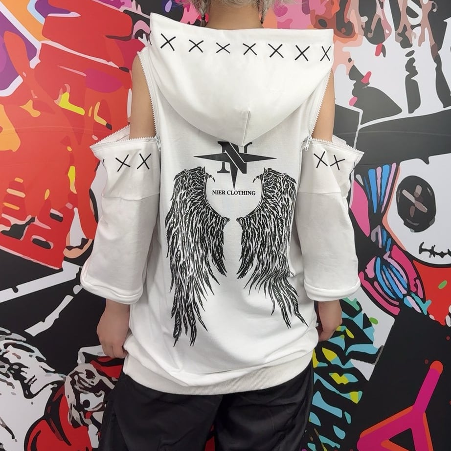 背面には大きく広がる翼のプリントとNIER CLOTHINGロゴをデザイン。
