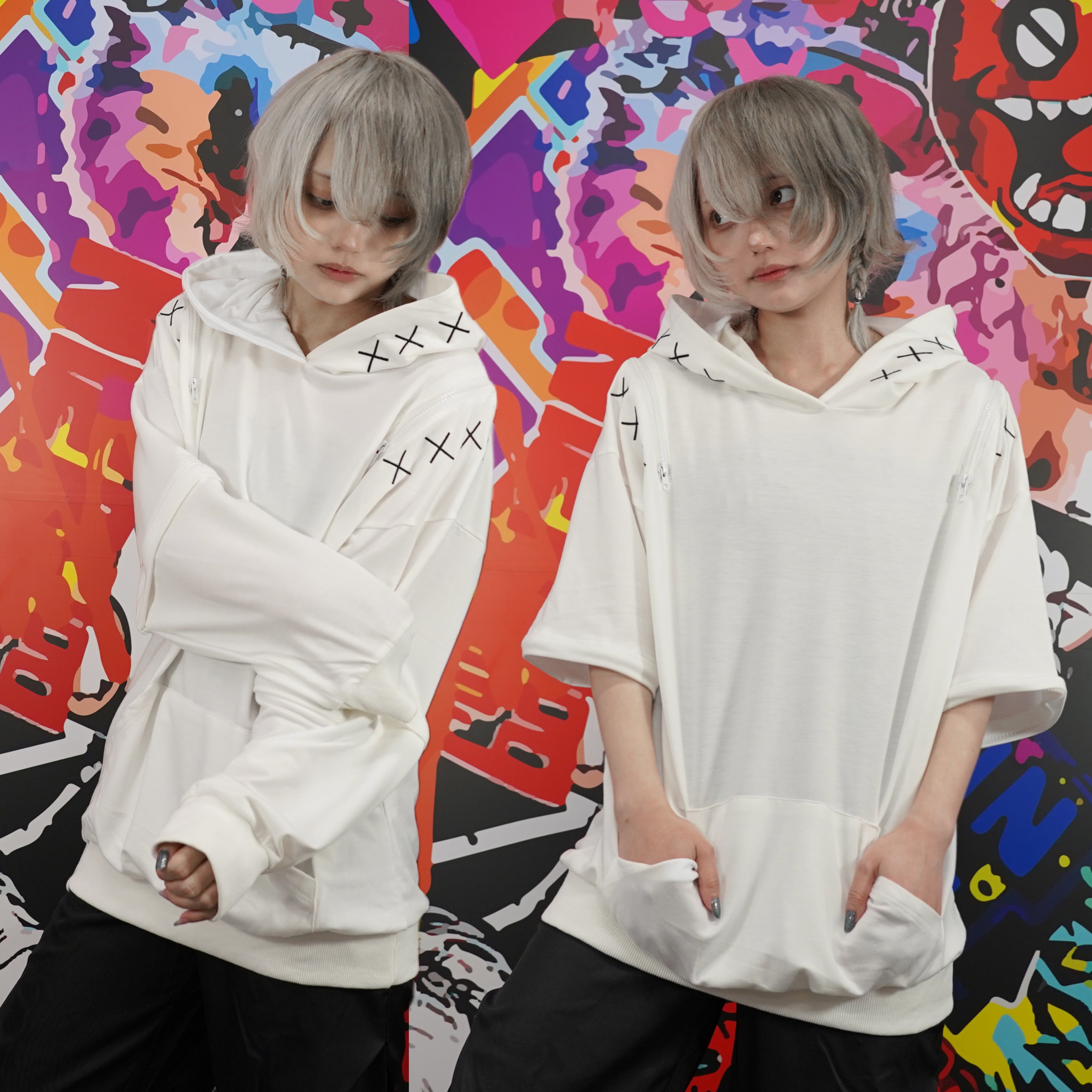 フード付き半袖/切り離し風/長袖パーカー風と、気分や季節で自在にアレンジ可能✨