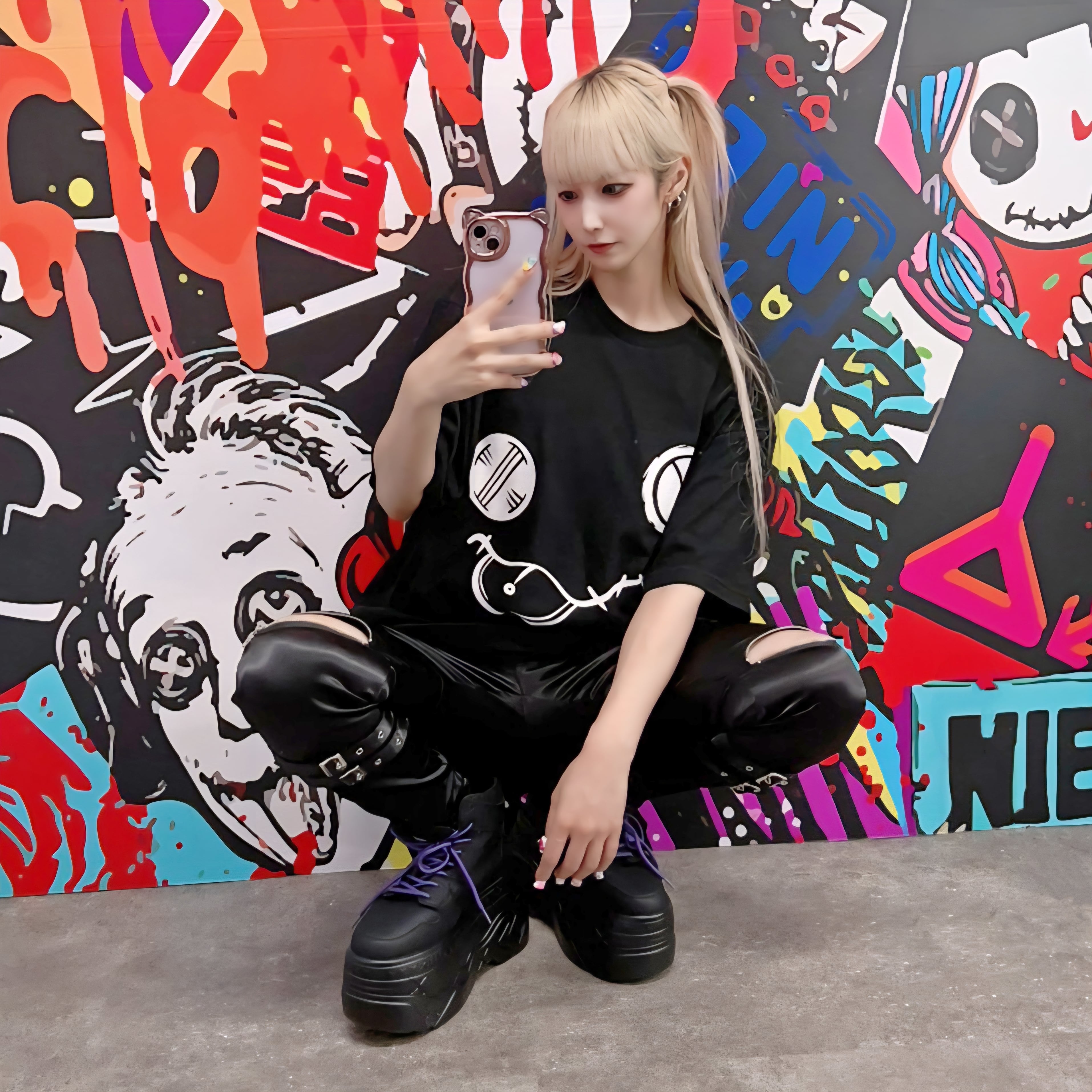 不敵に歪んだスマイルデザインが、唯一無二の世界観を放つ1枚です。