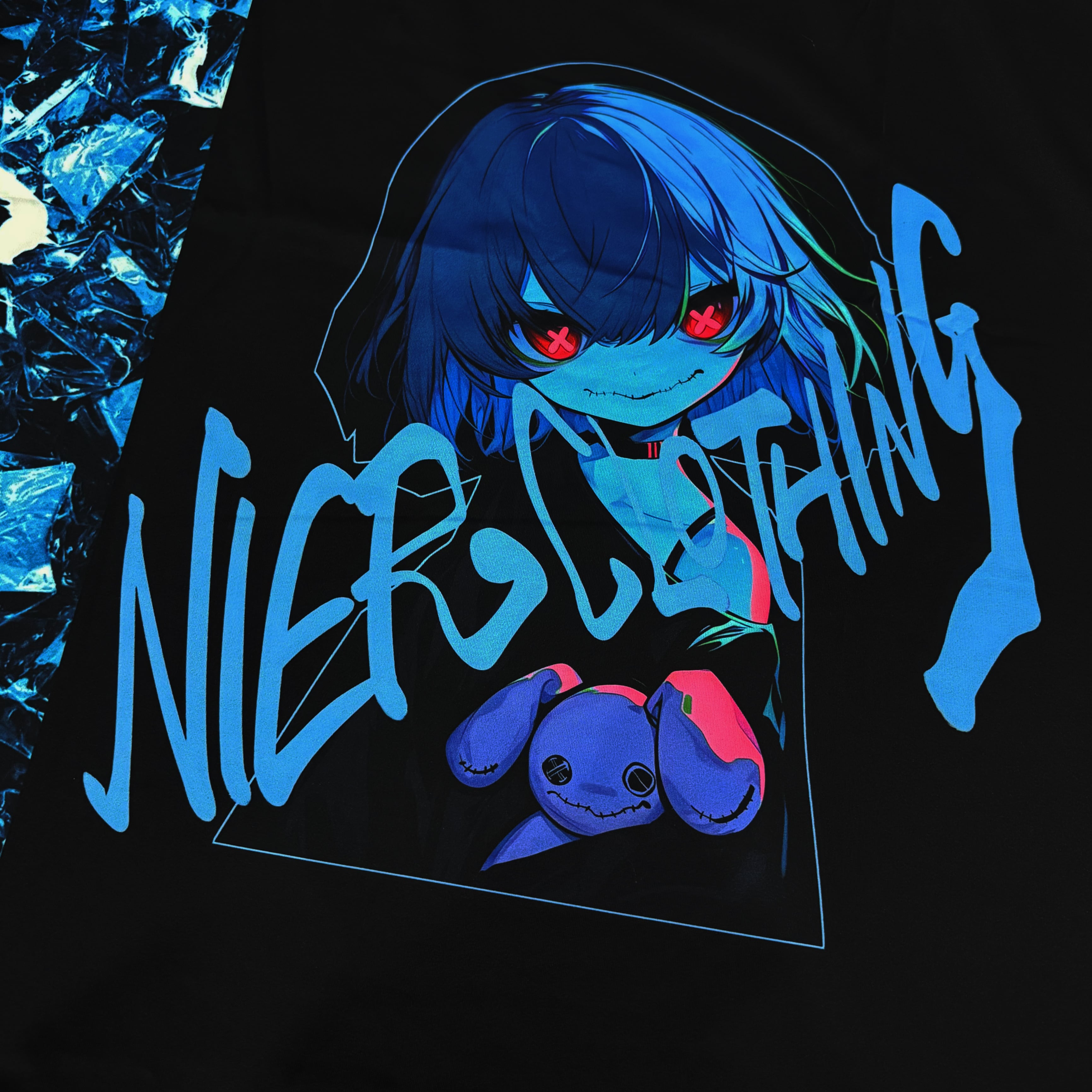 背面にはNIERの象徴であるスマイルフェイスがプリントされ、360度どこから見ても視線を惹きつける仕上がりです。