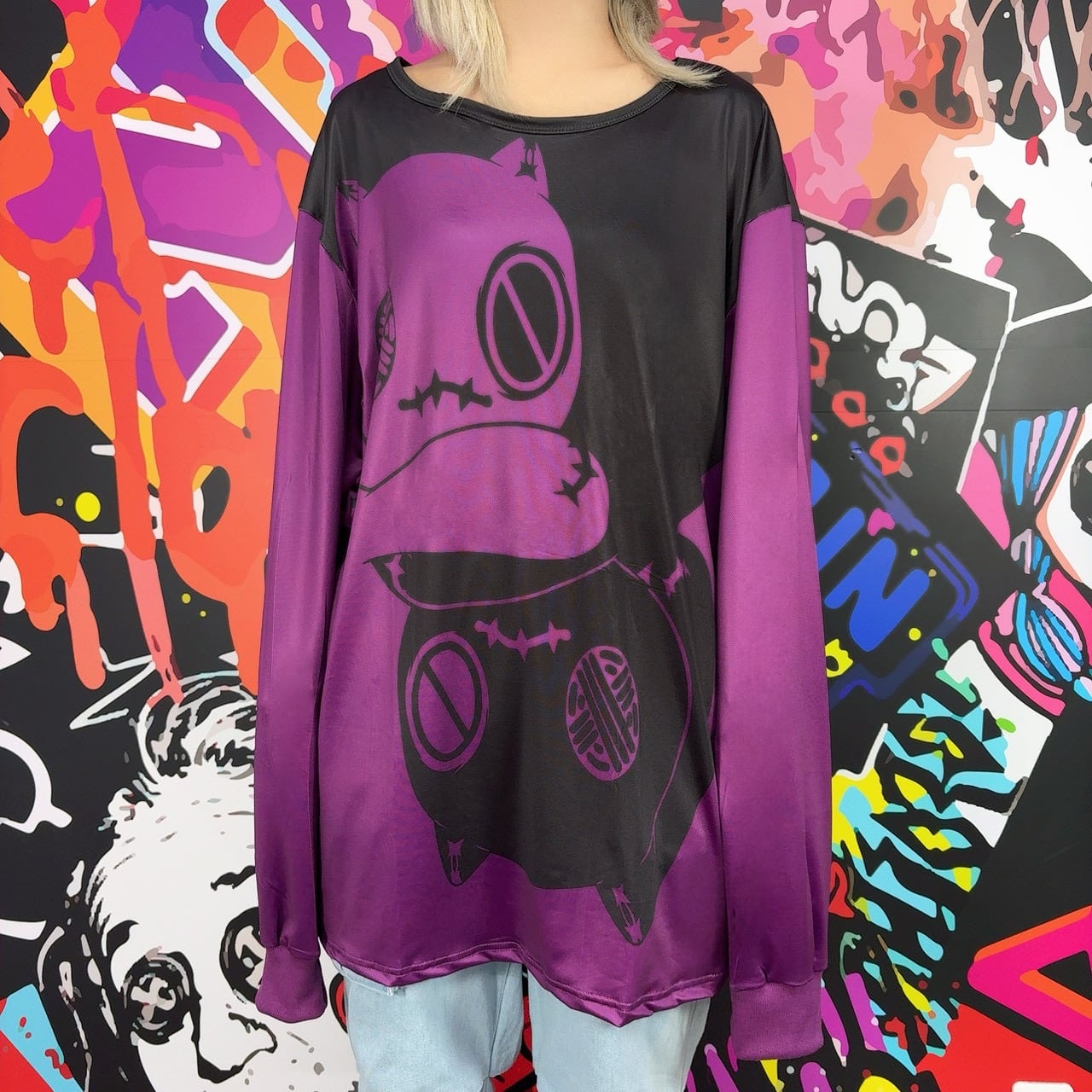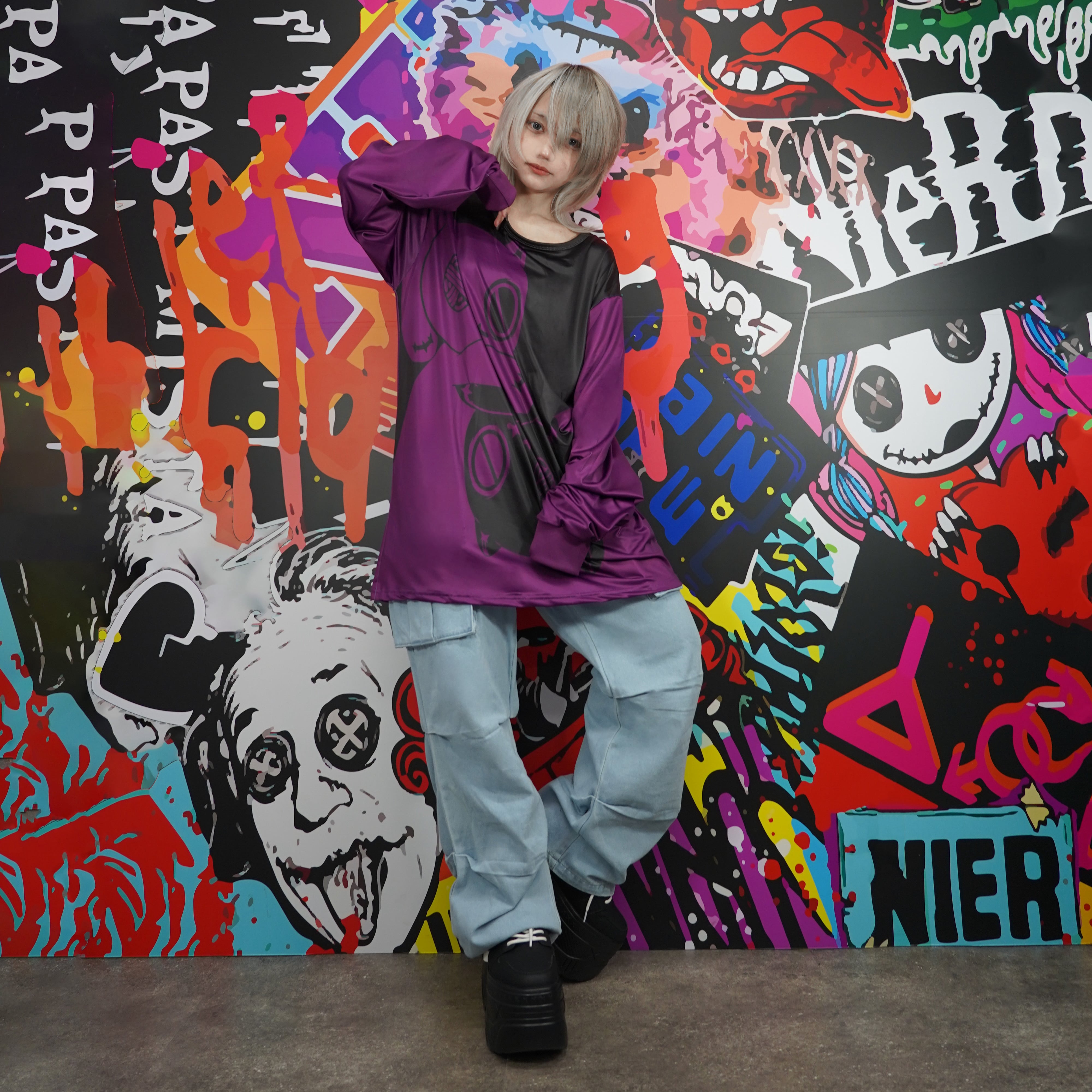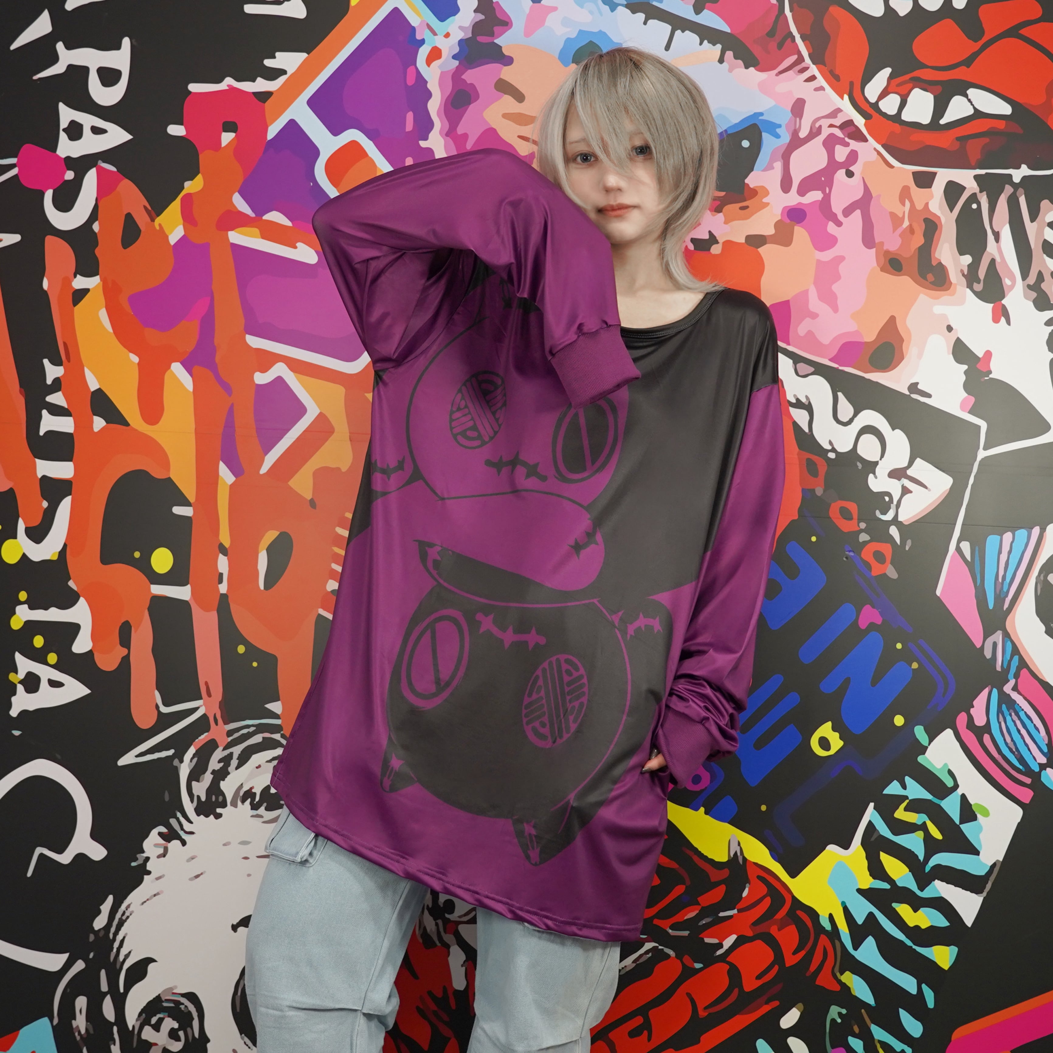 両面デザインLONG SLEEVE CUTSEW【PURPLE×BLACK】