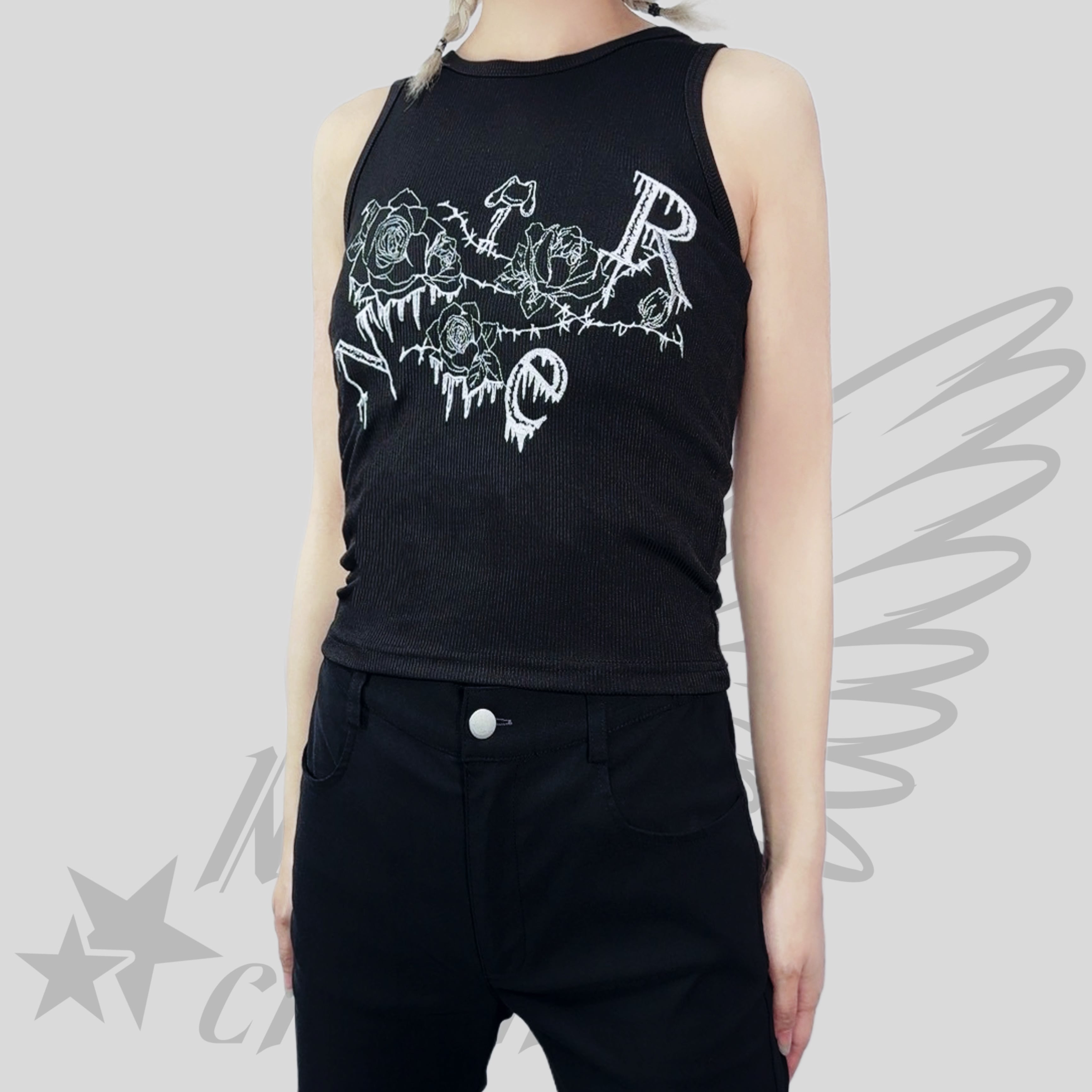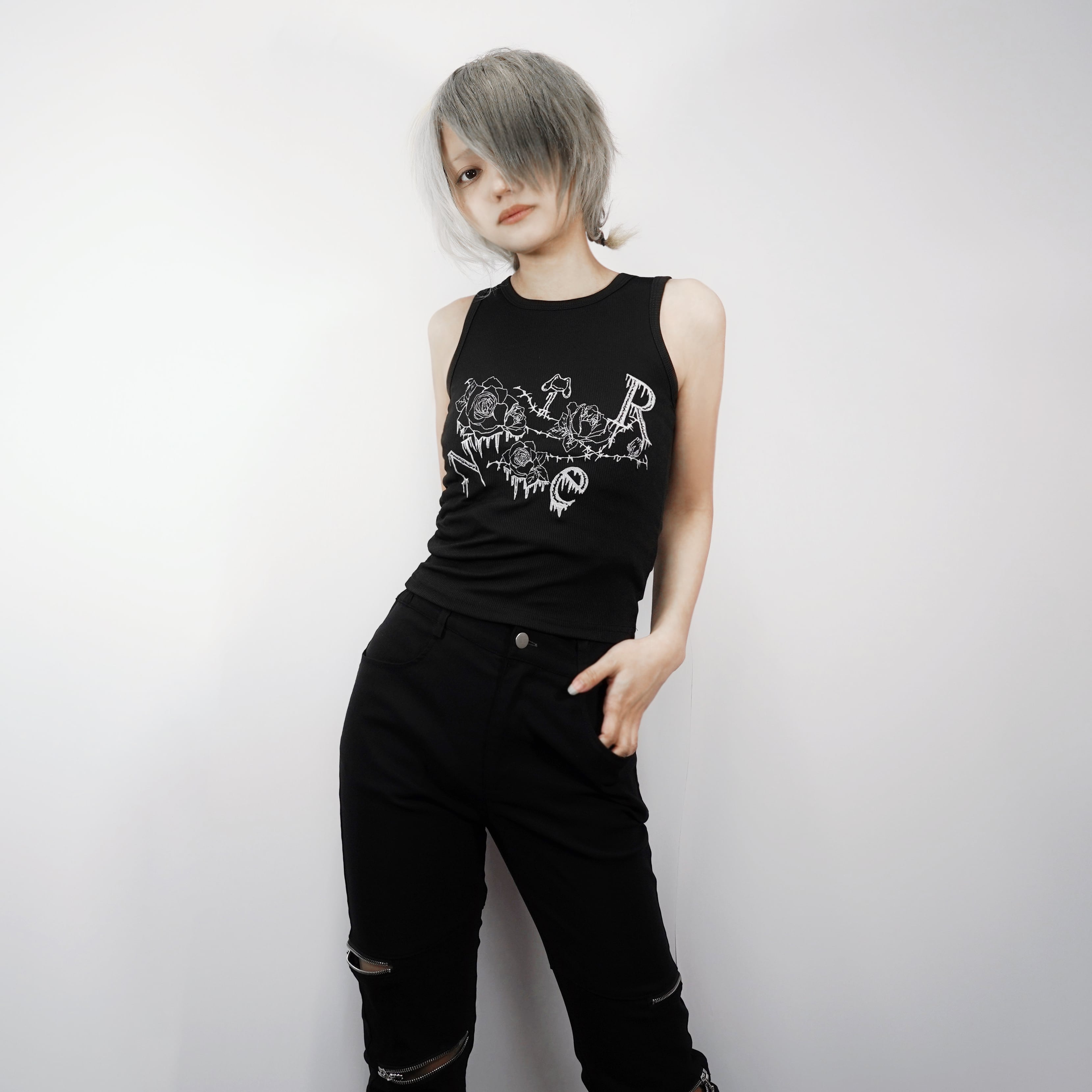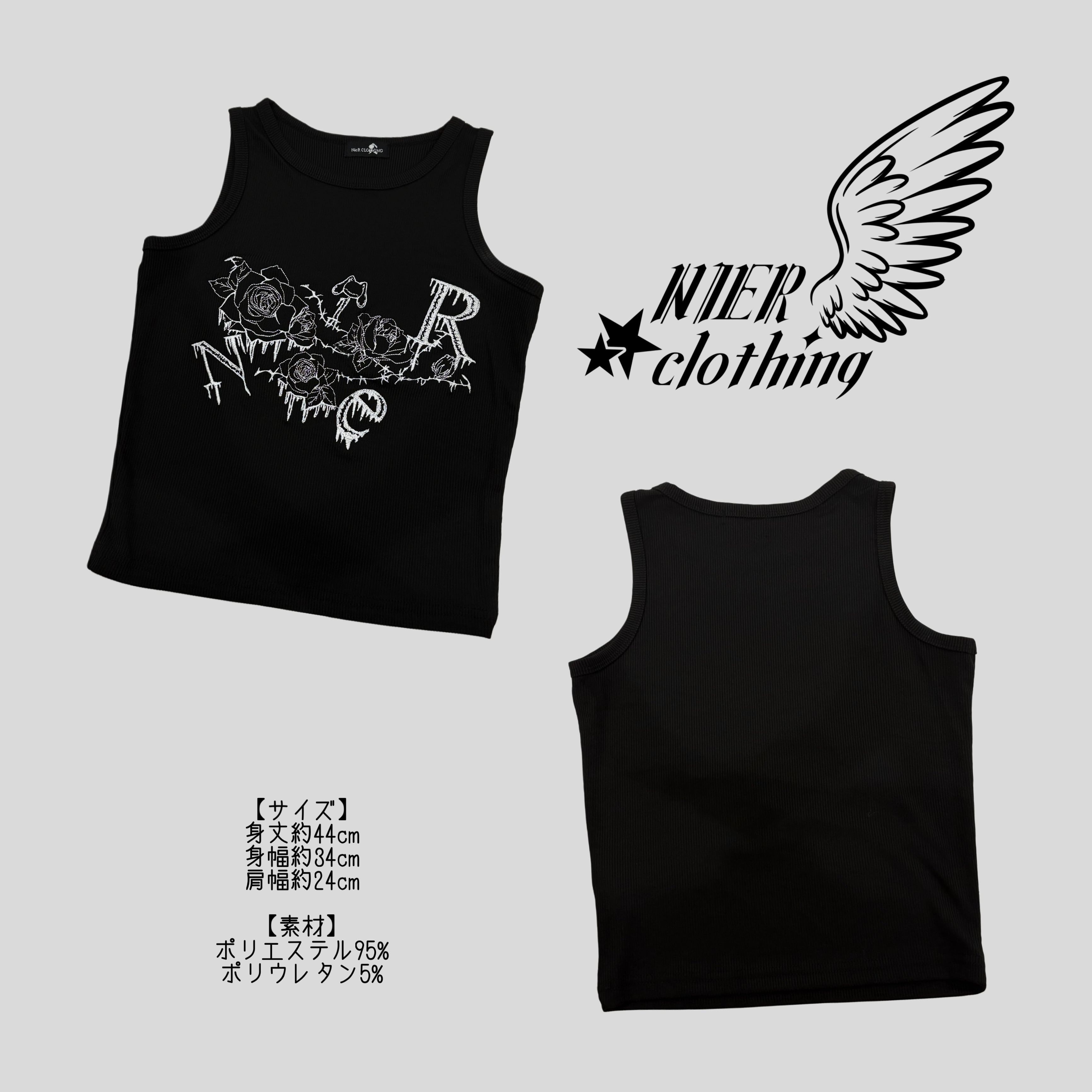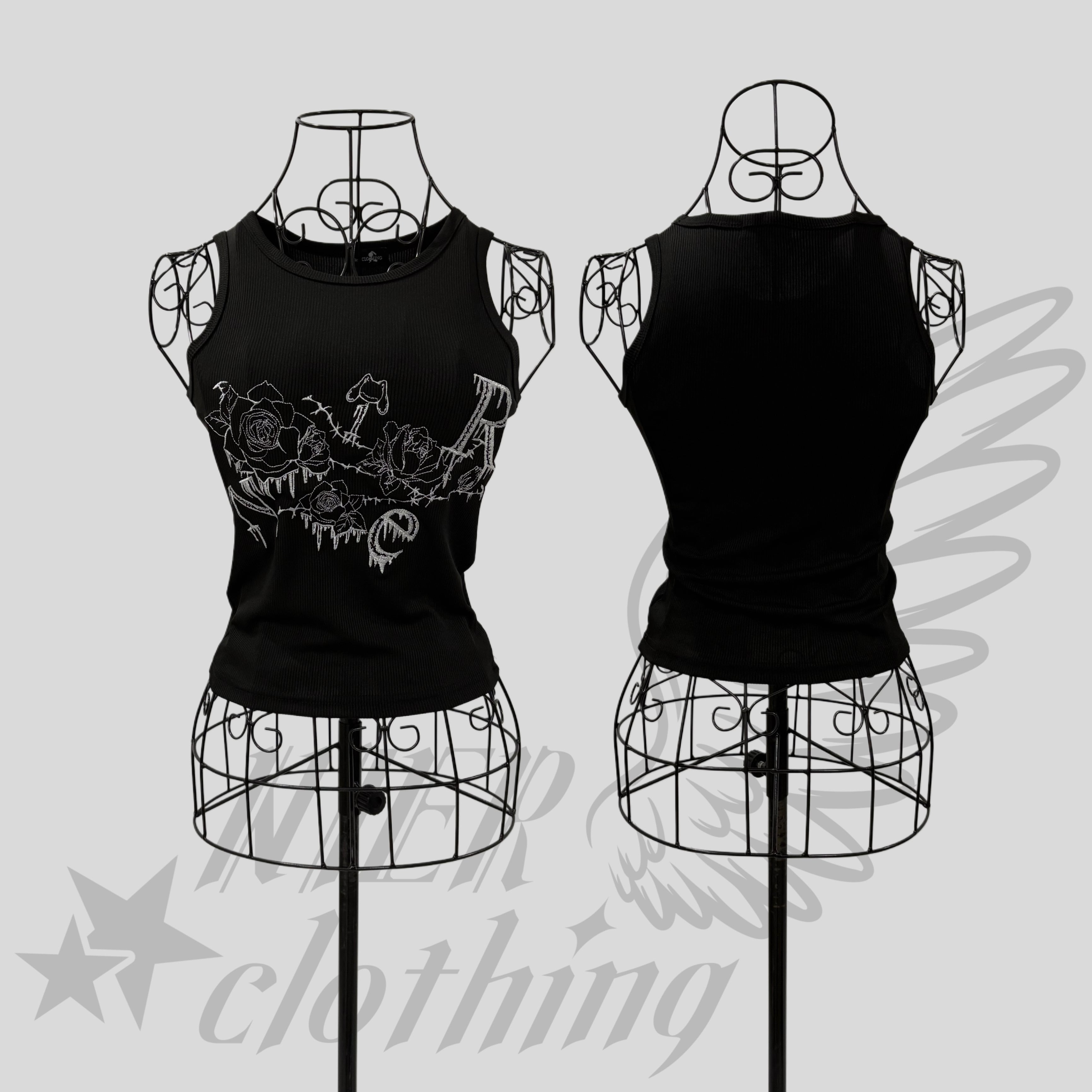 《BASE総合ショップ1位記念祭》全刺繍GOTHIC ROSEリブタンクトップ