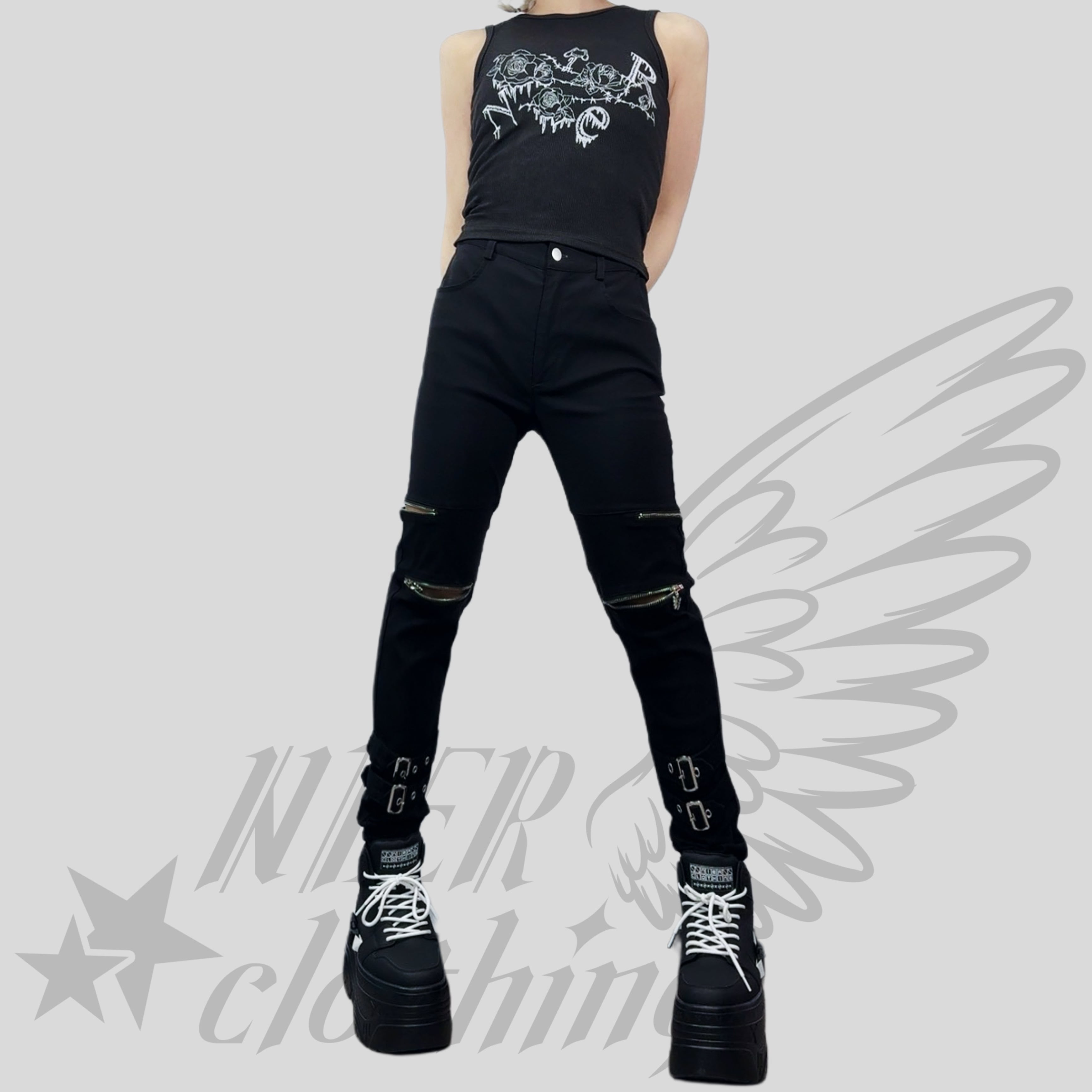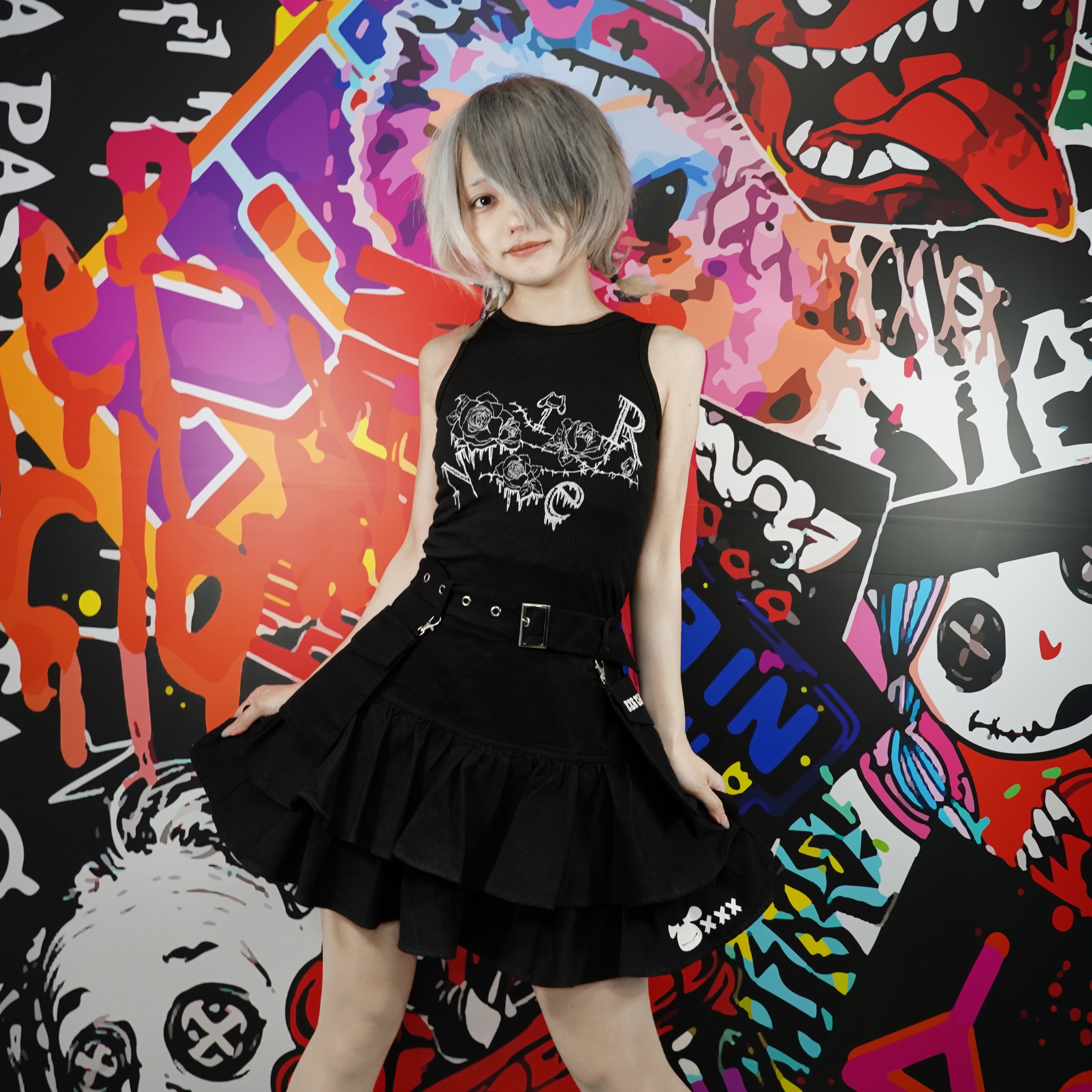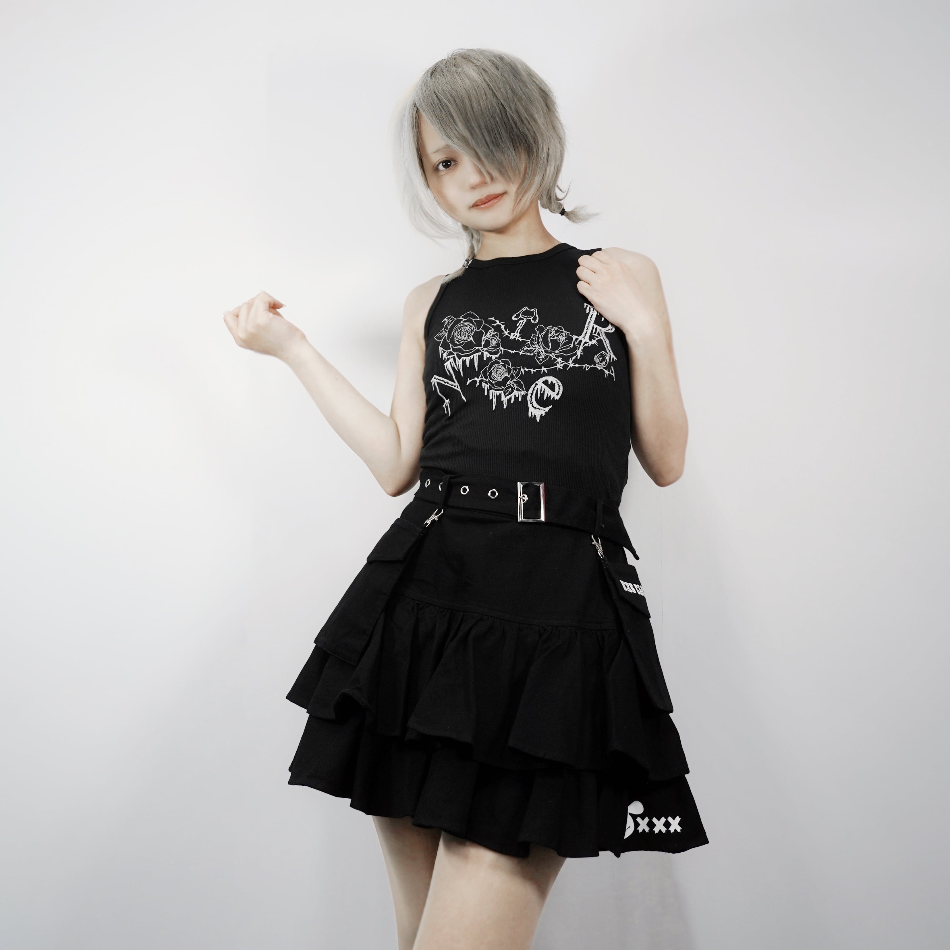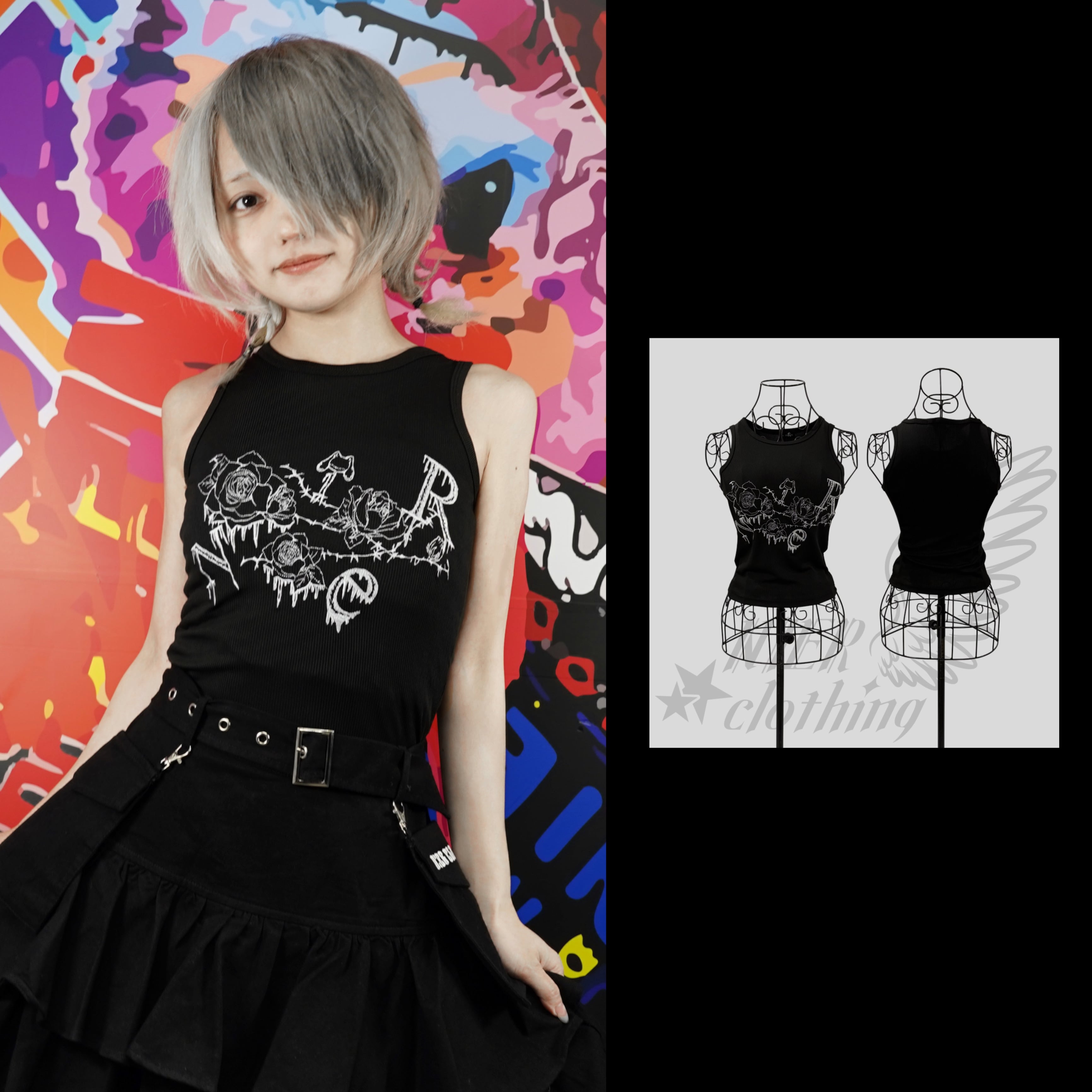 《BASE総合ショップ1位記念祭》全刺繍GOTHIC ROSEリブタンクトップ