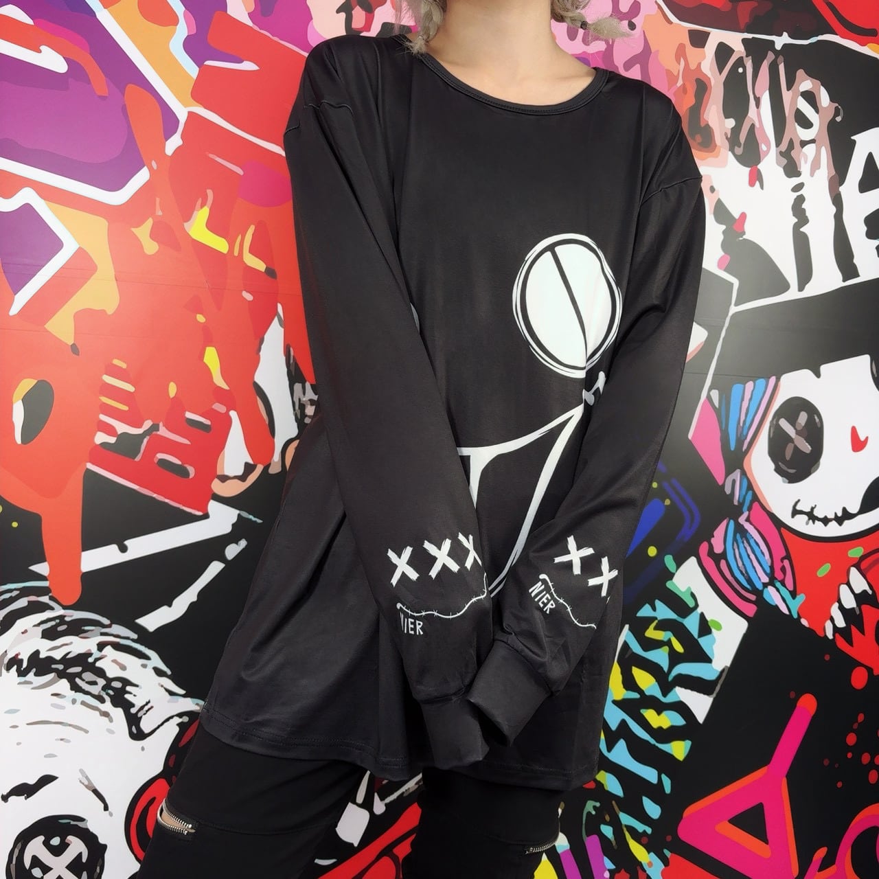 《先着77点限定ばら撒き大特価》MOCKING FACE OVERSIZE LONG CUTSEW【BLACK】
