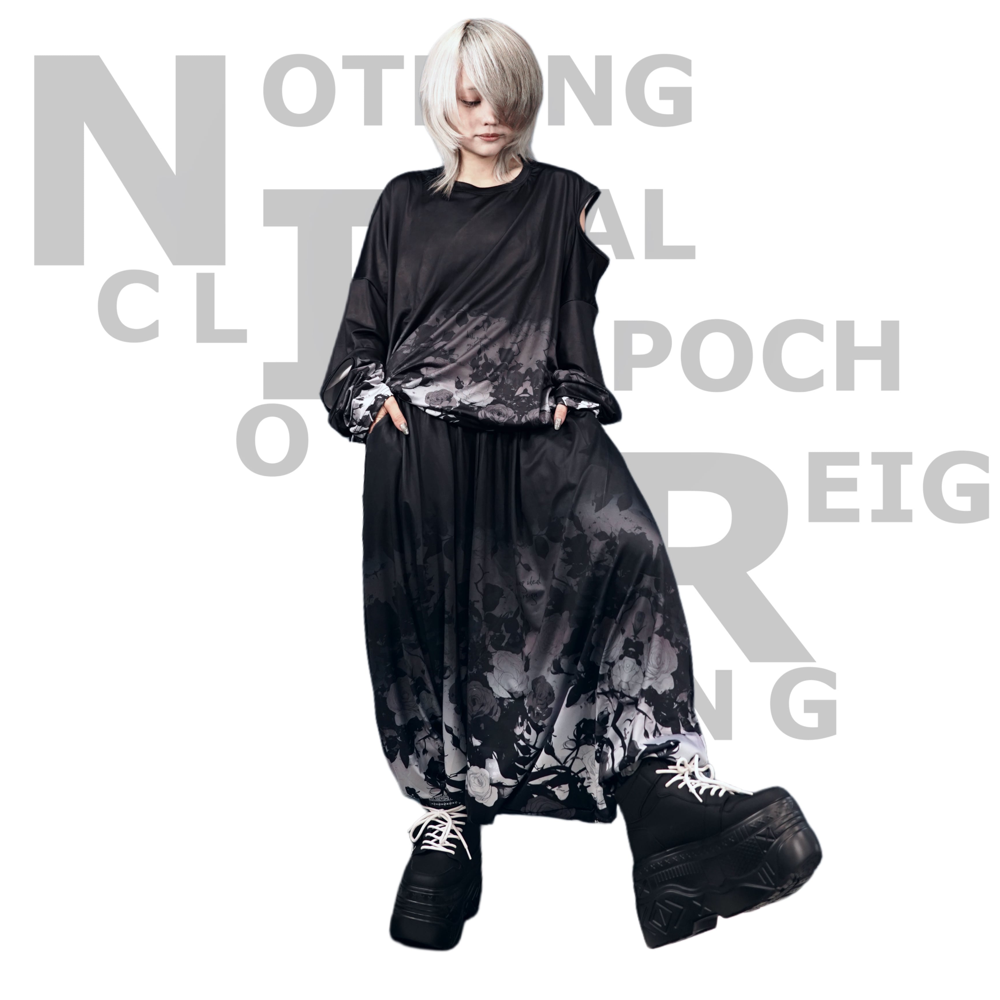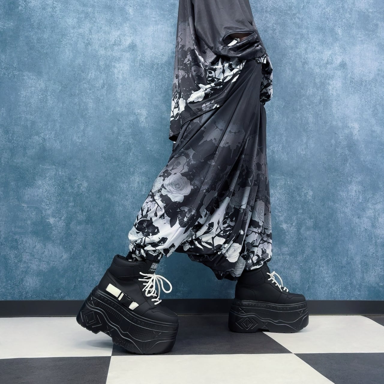 闇に咲く薔薇をモチーフにした、幻想的なグラデーションプリントが目を惹くサルエルパンツが登場☆