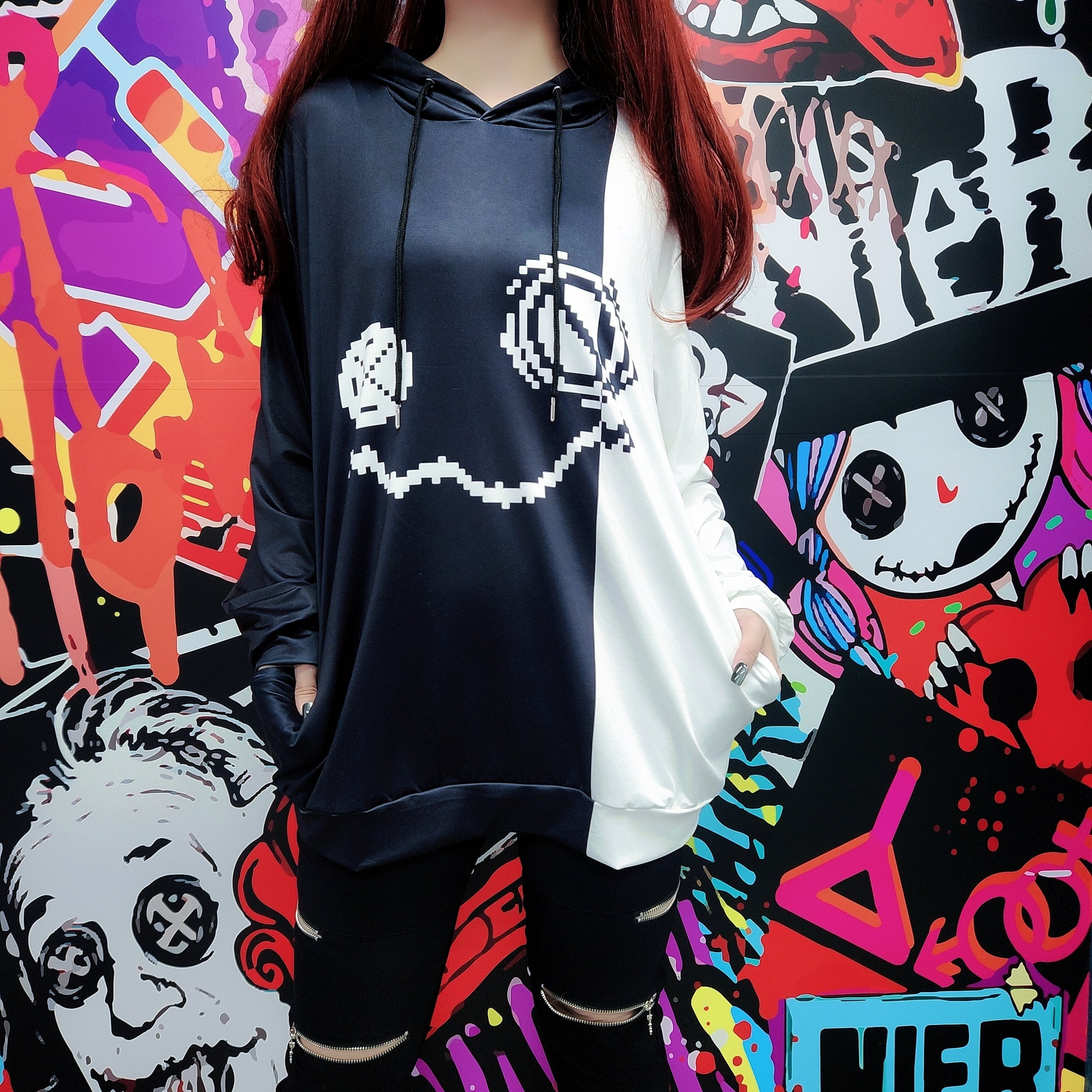 《先着39点限定サンキューセール》両面ピクセルデザインモノクロHOODIE