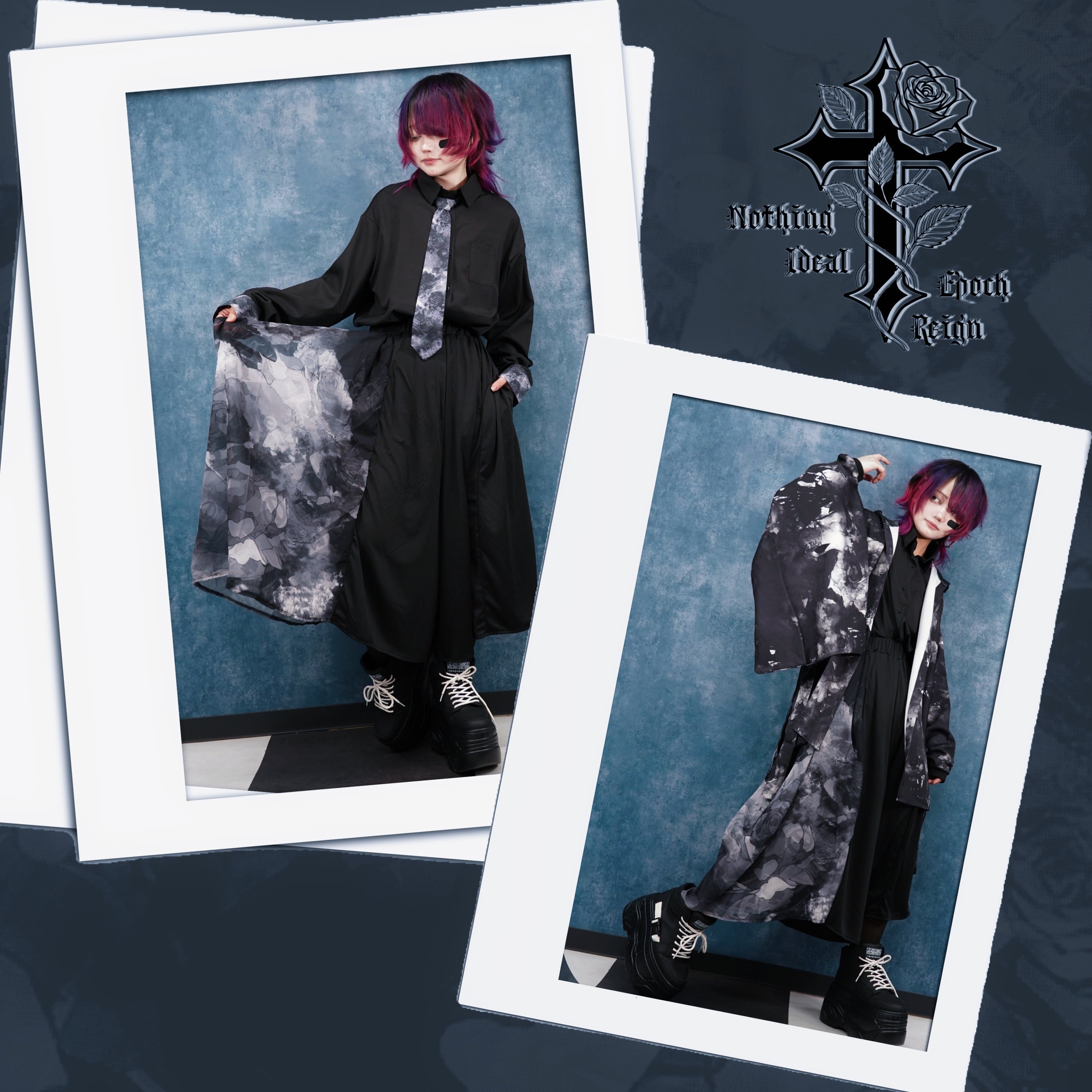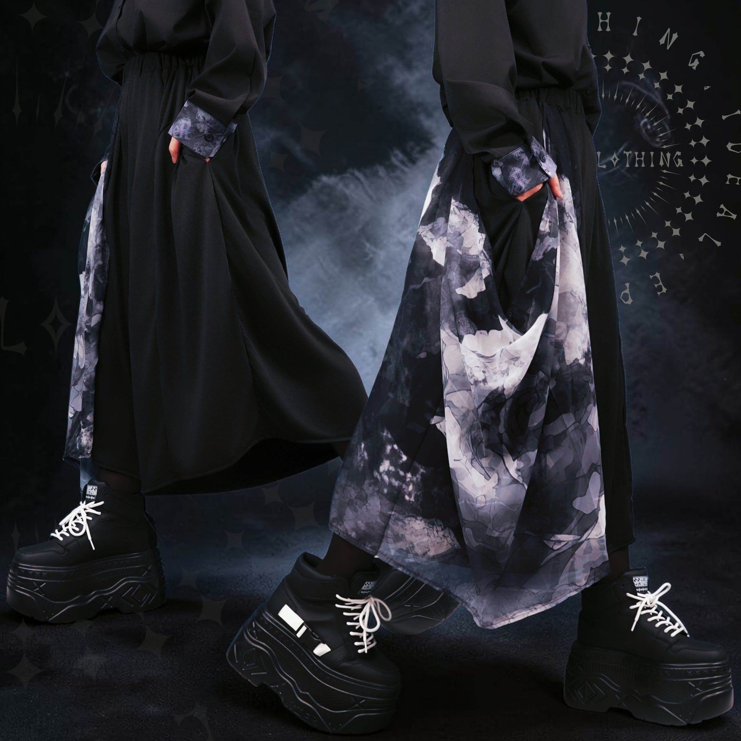 《月末限定超大特価》七分丈UNISEX WIDE PANTS【影薔薇フラップデザイン】