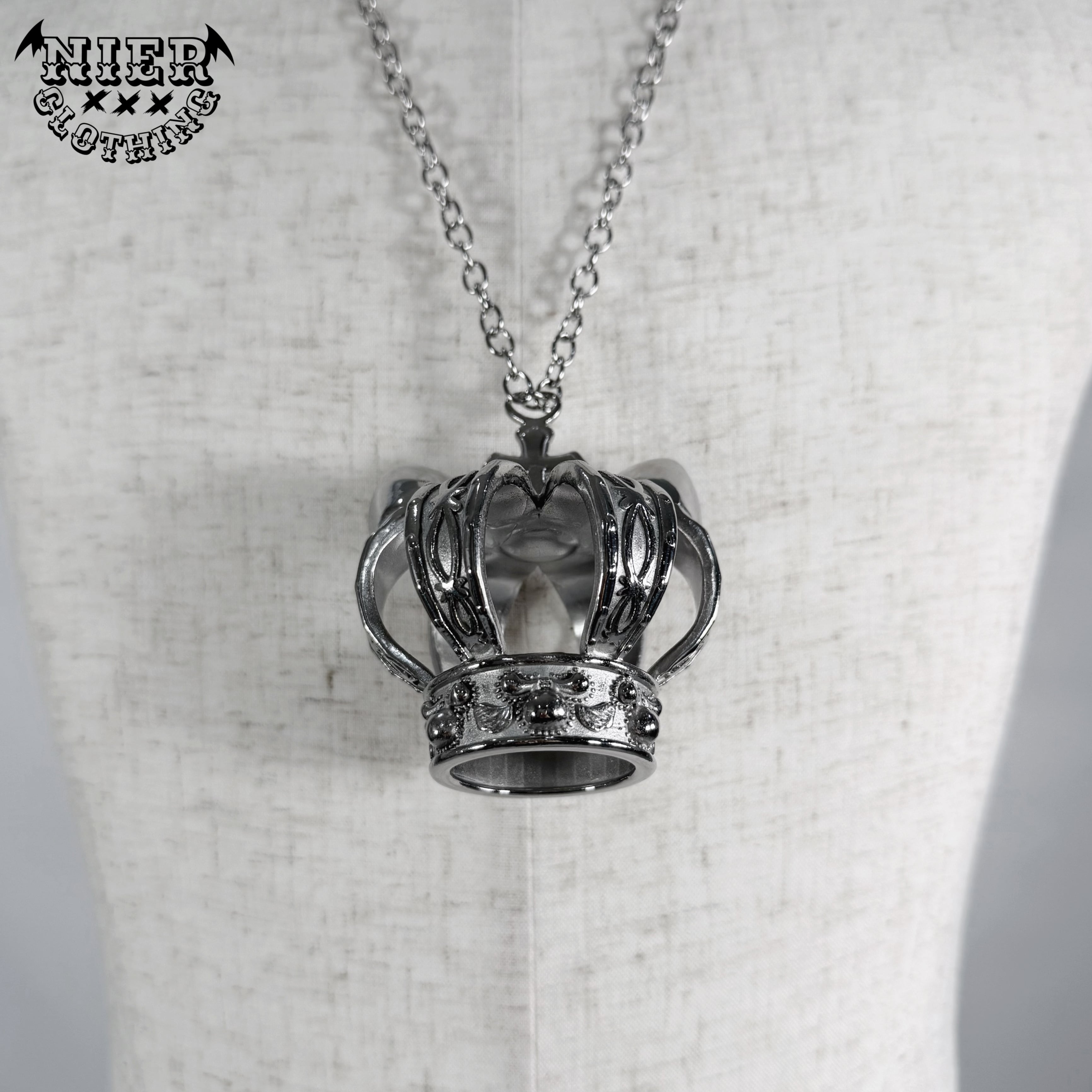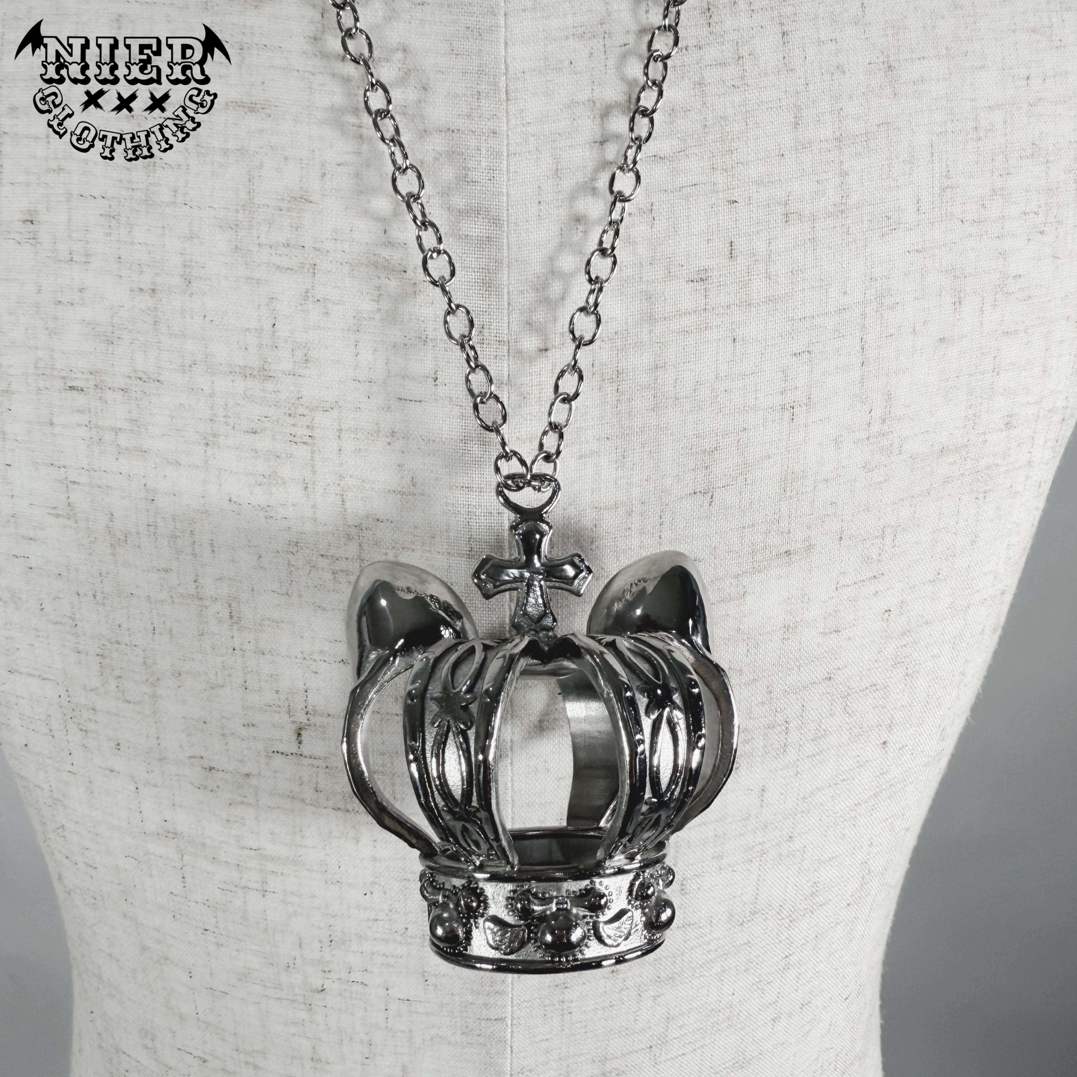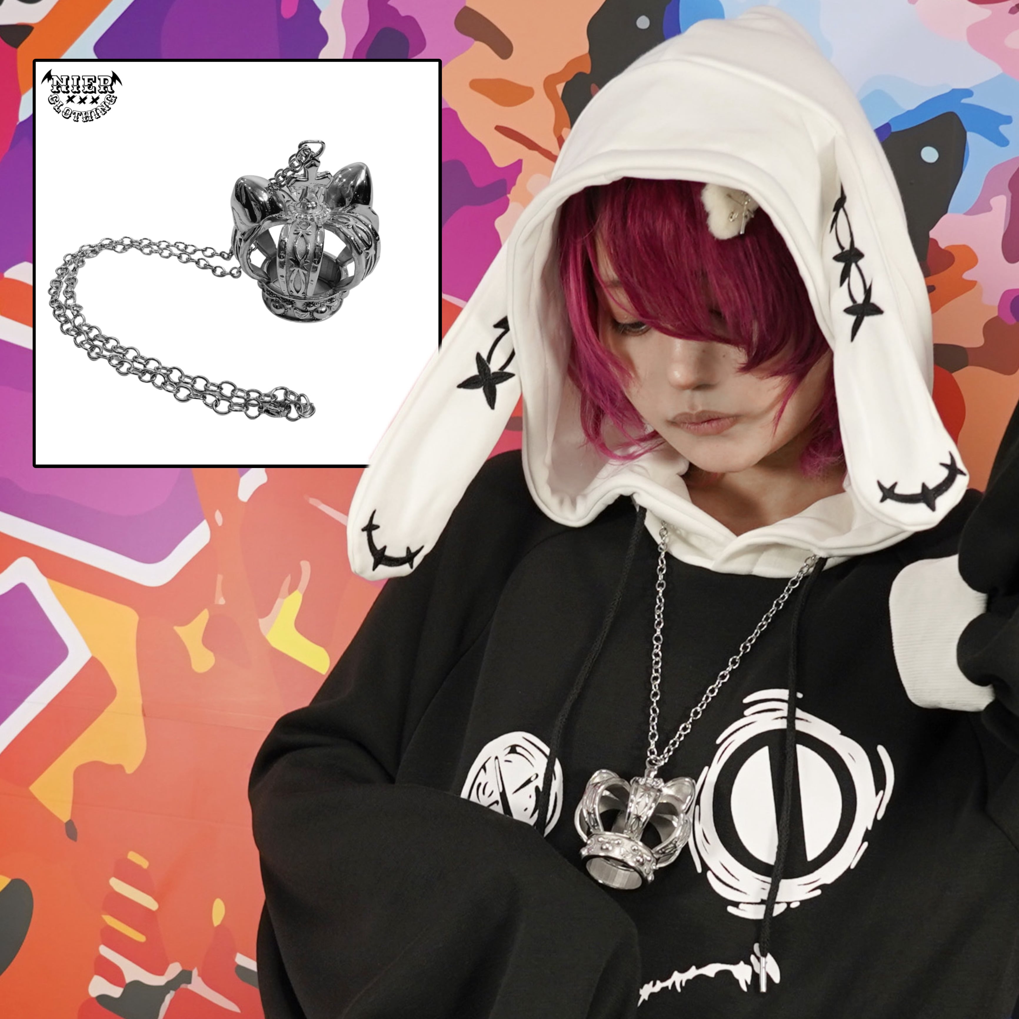《バレンタイン前新作70%OFFプレゼント》高品質重厚SILVER CAT EAR CROWN NECKLACE
